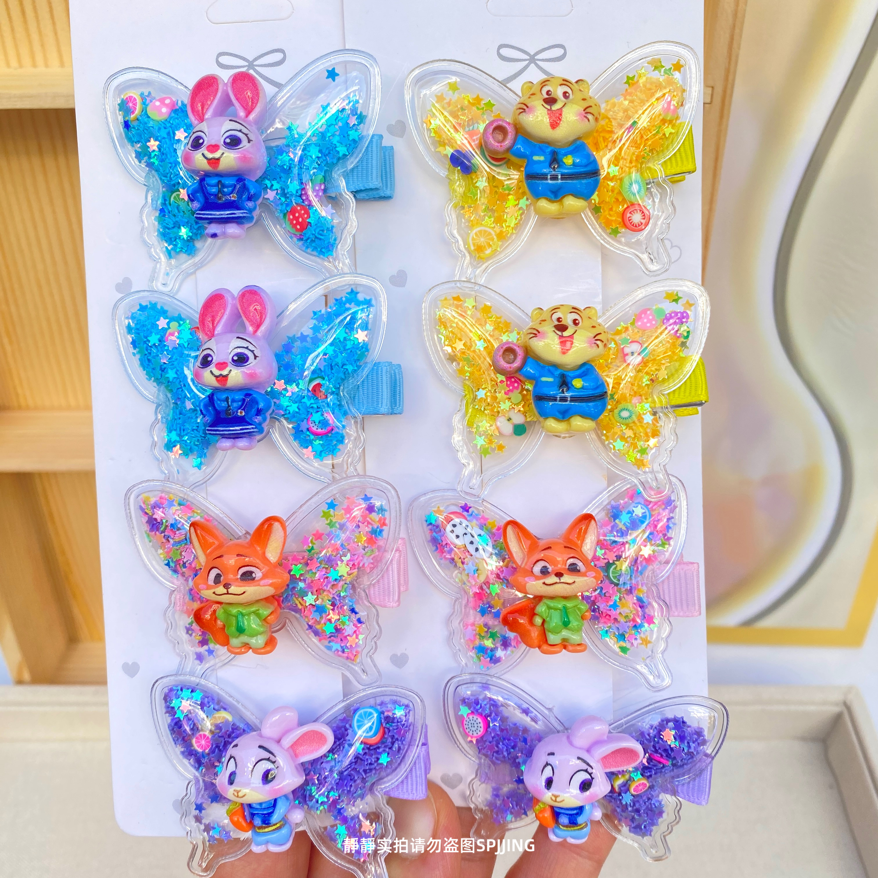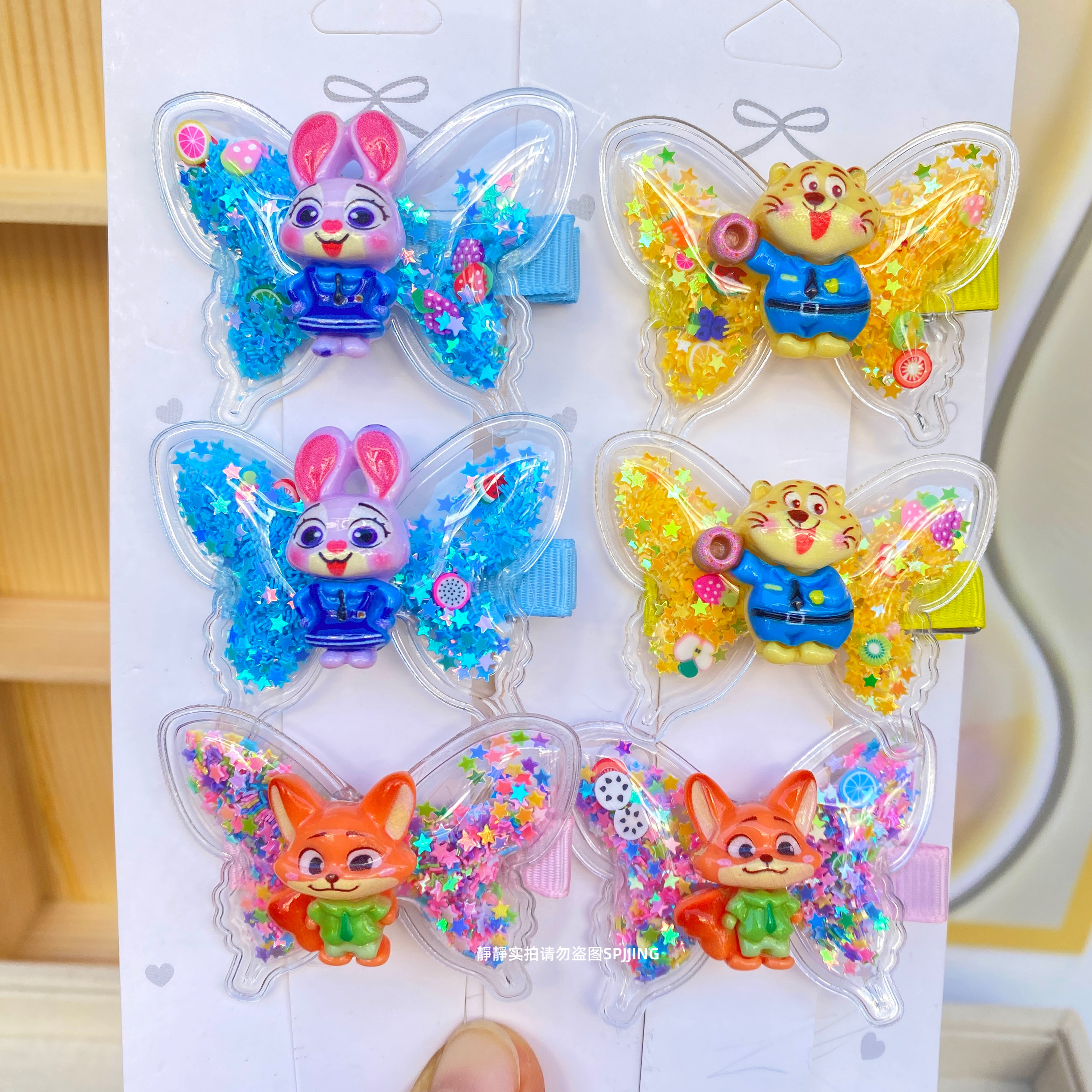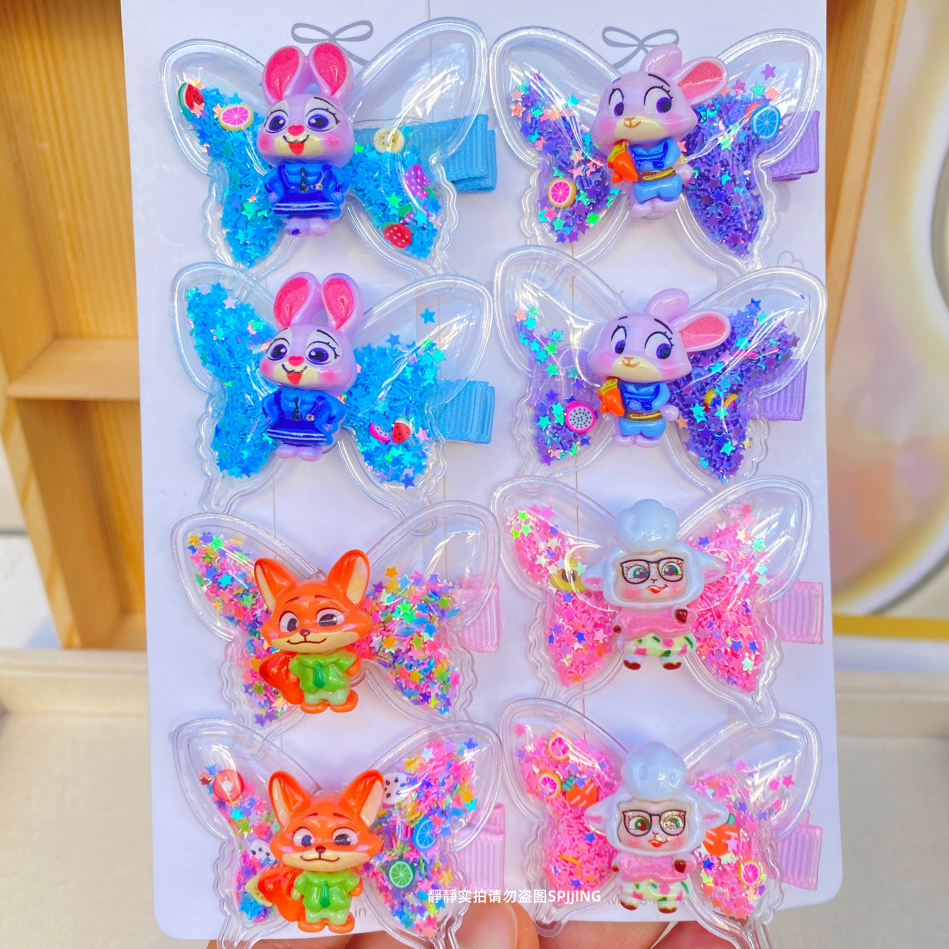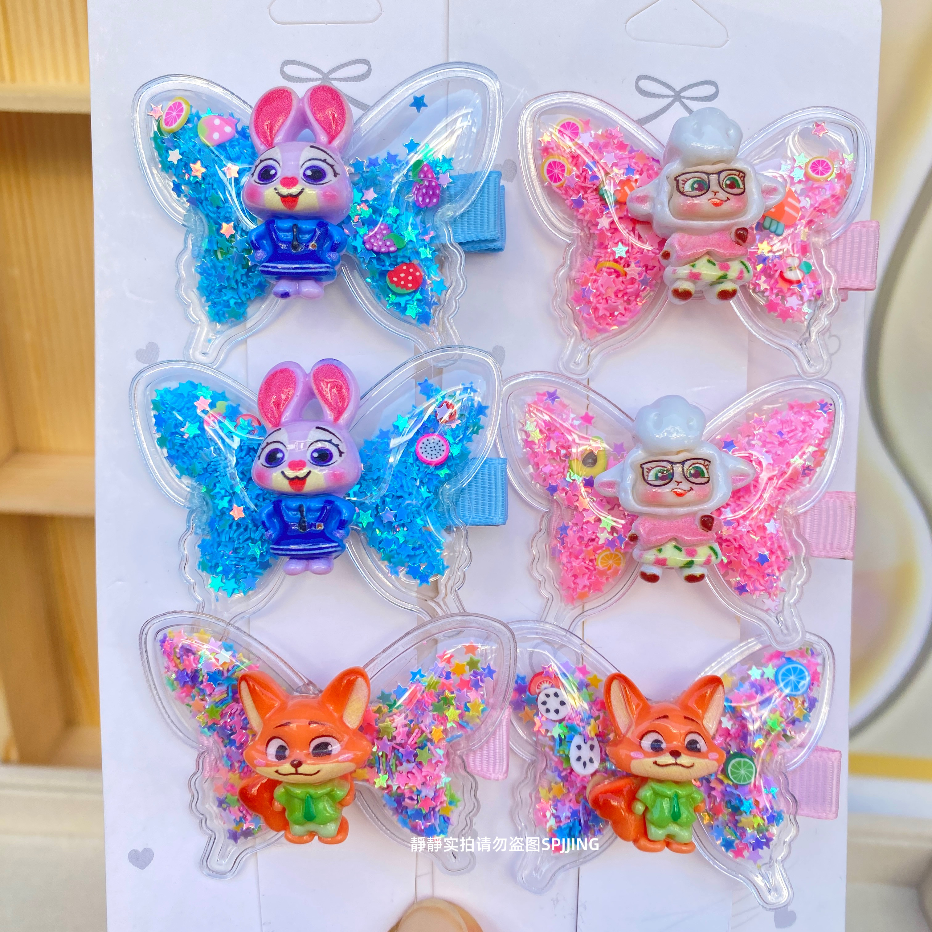 新款疯狂动物城蝴蝶发夹可爱儿童发卡小女孩流沙鸭嘴夹碎发夹发饰