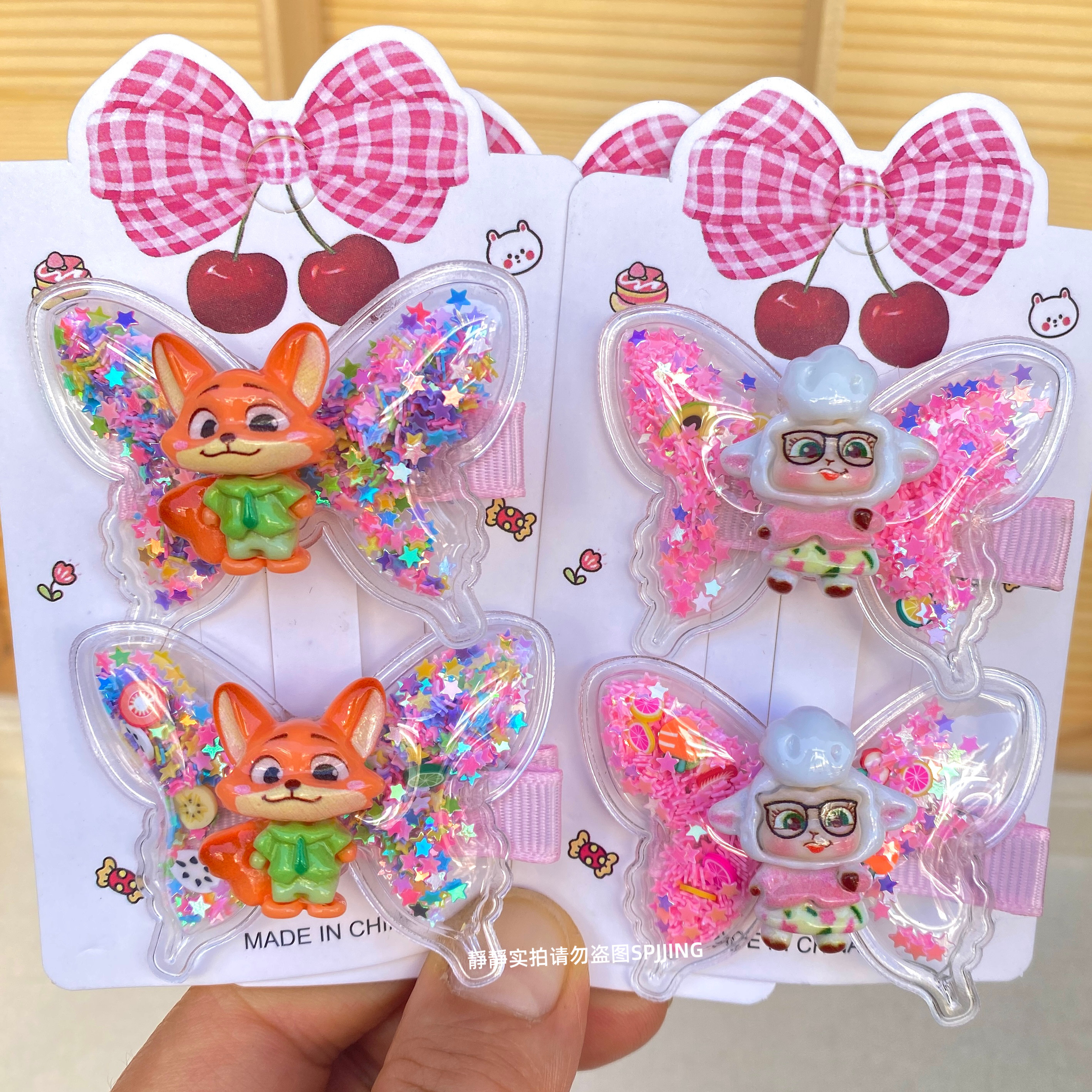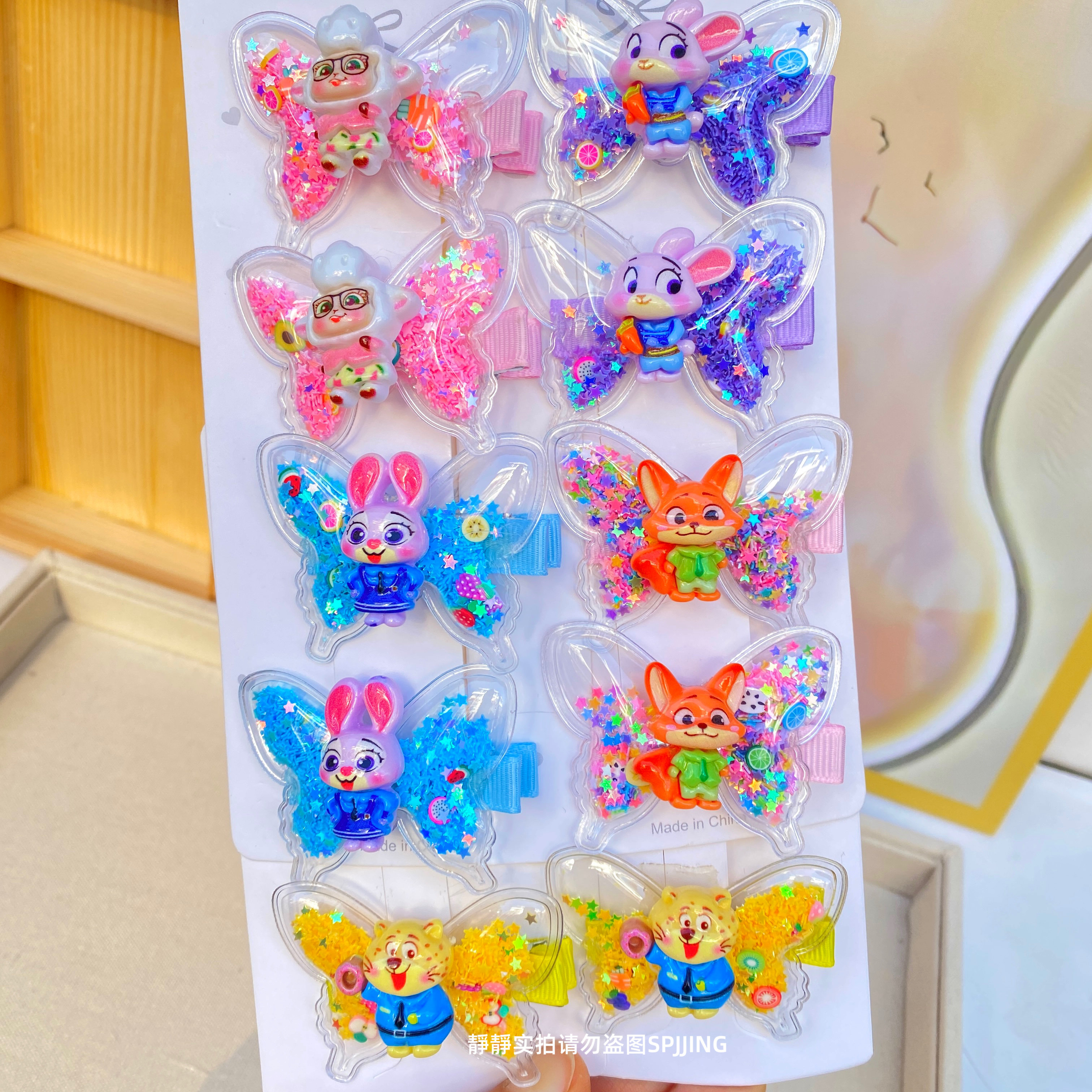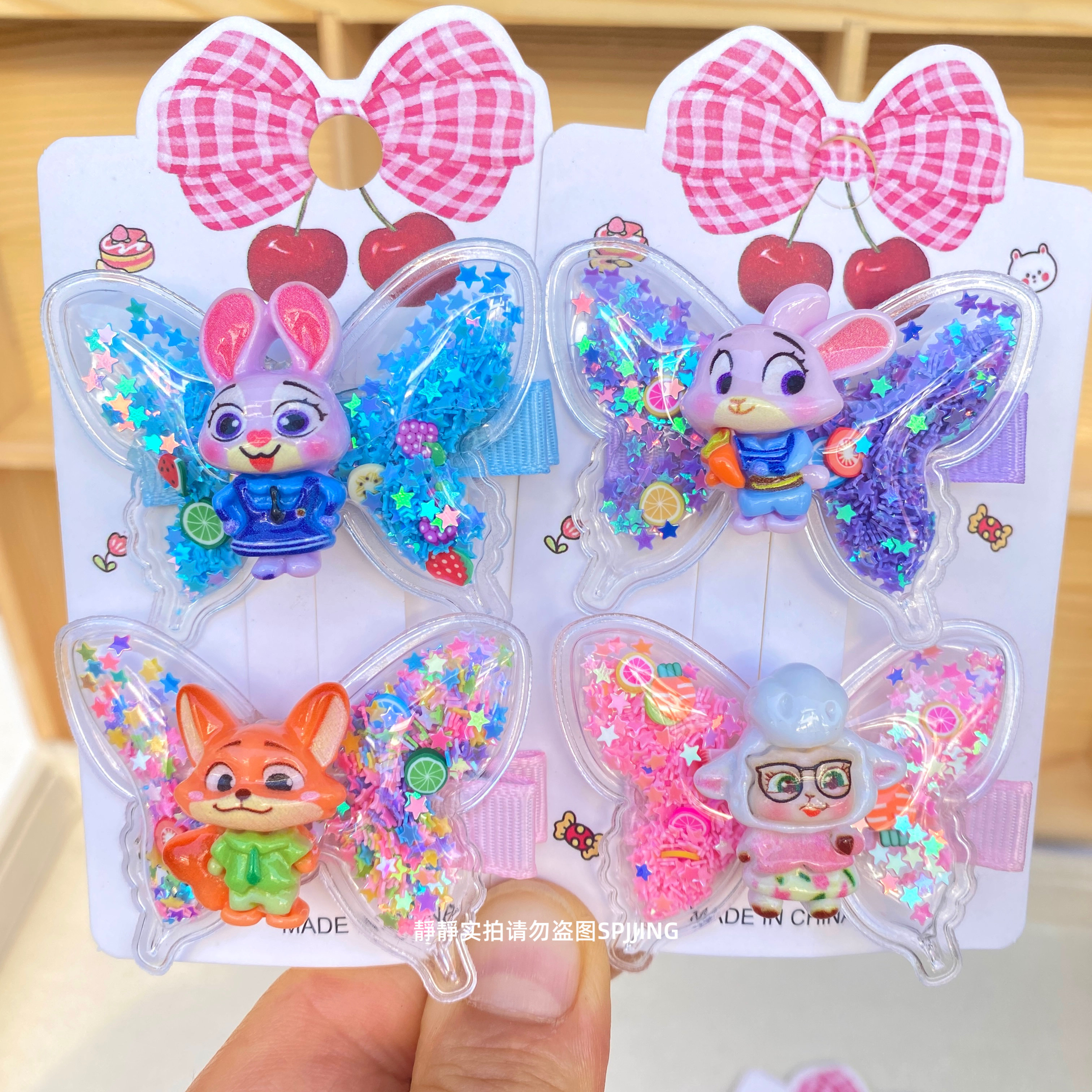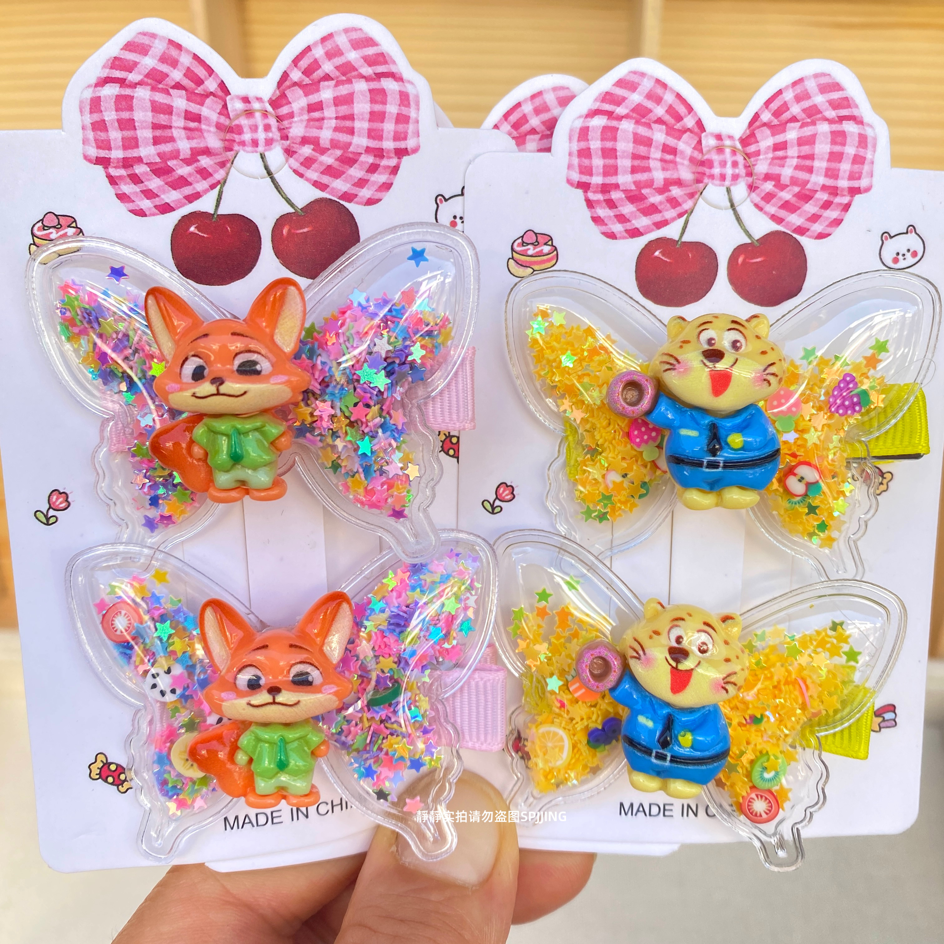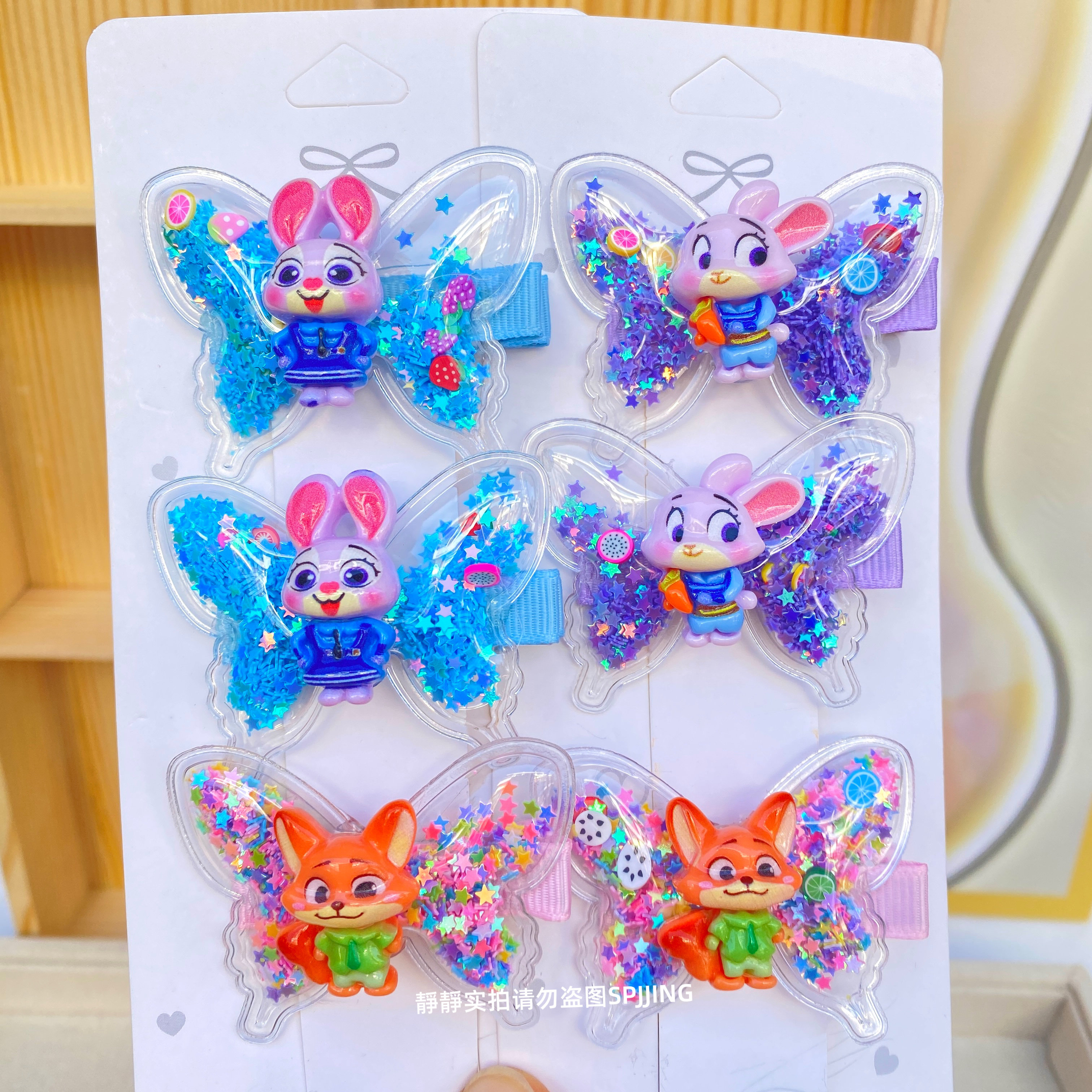 新款疯狂动物城蝴蝶发夹可爱儿童发卡小女孩流沙鸭嘴夹碎发夹发饰