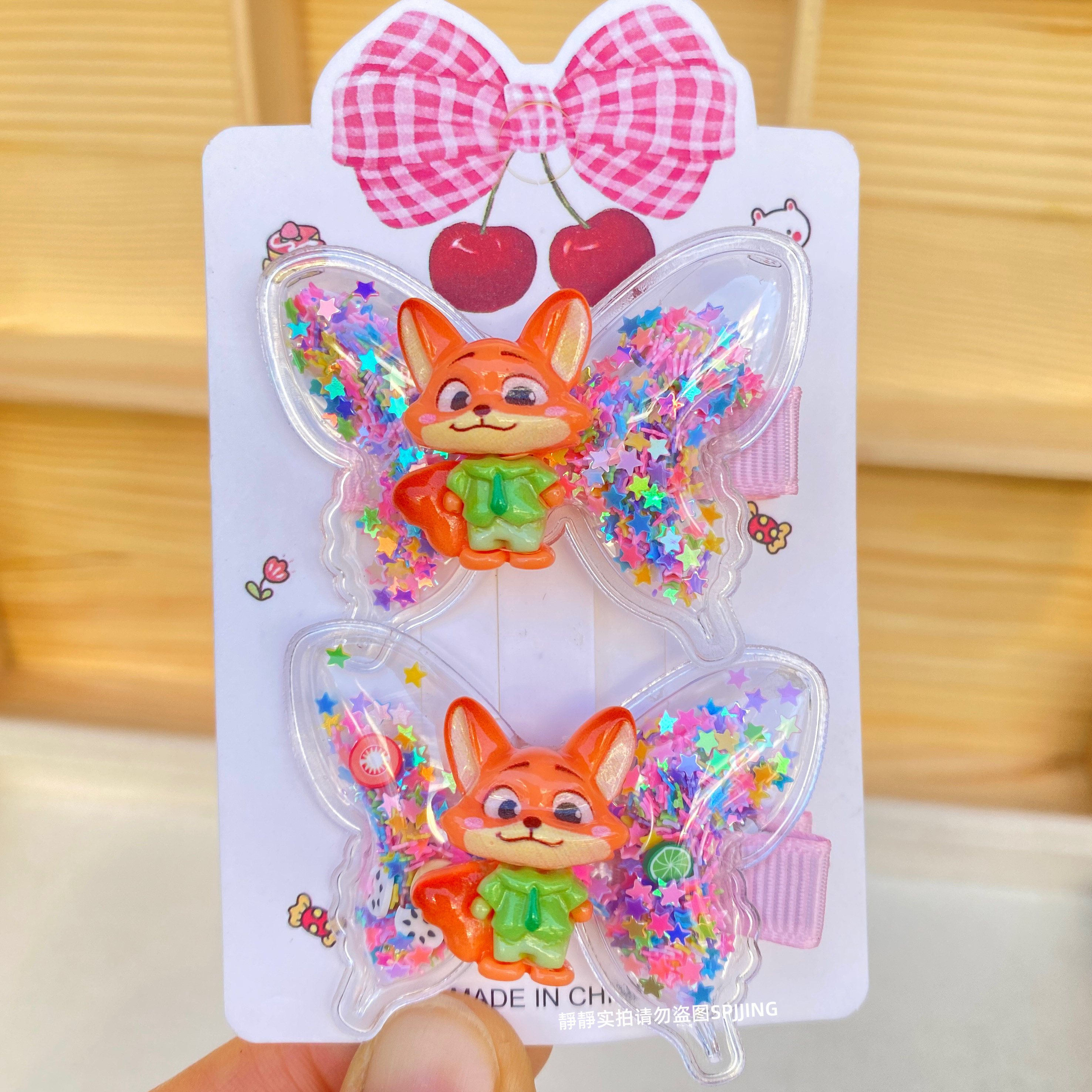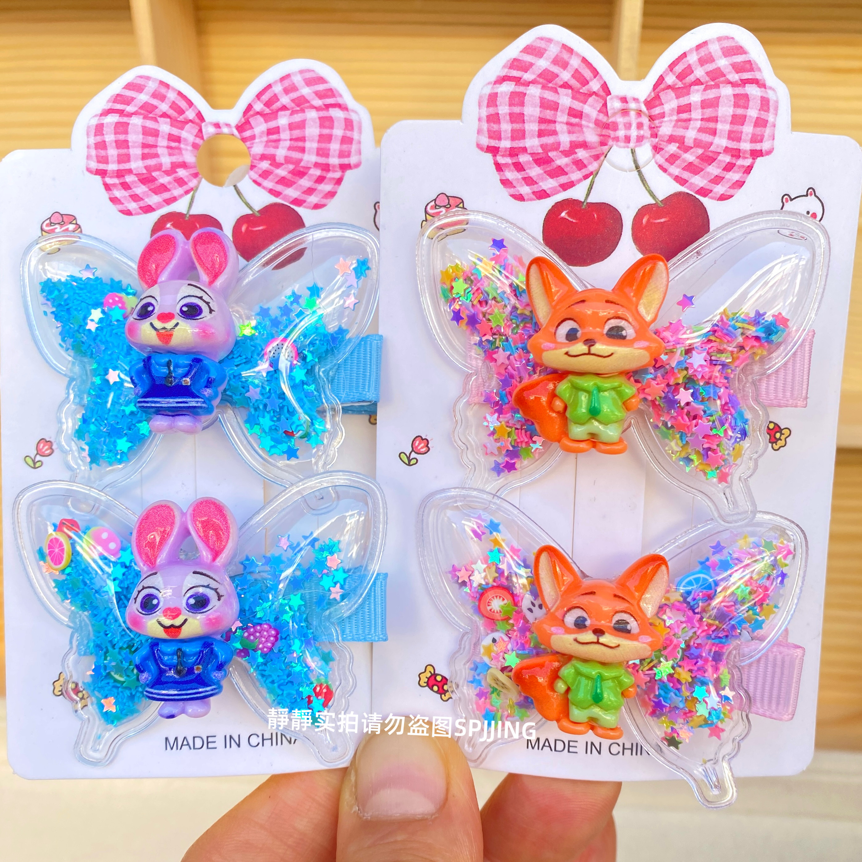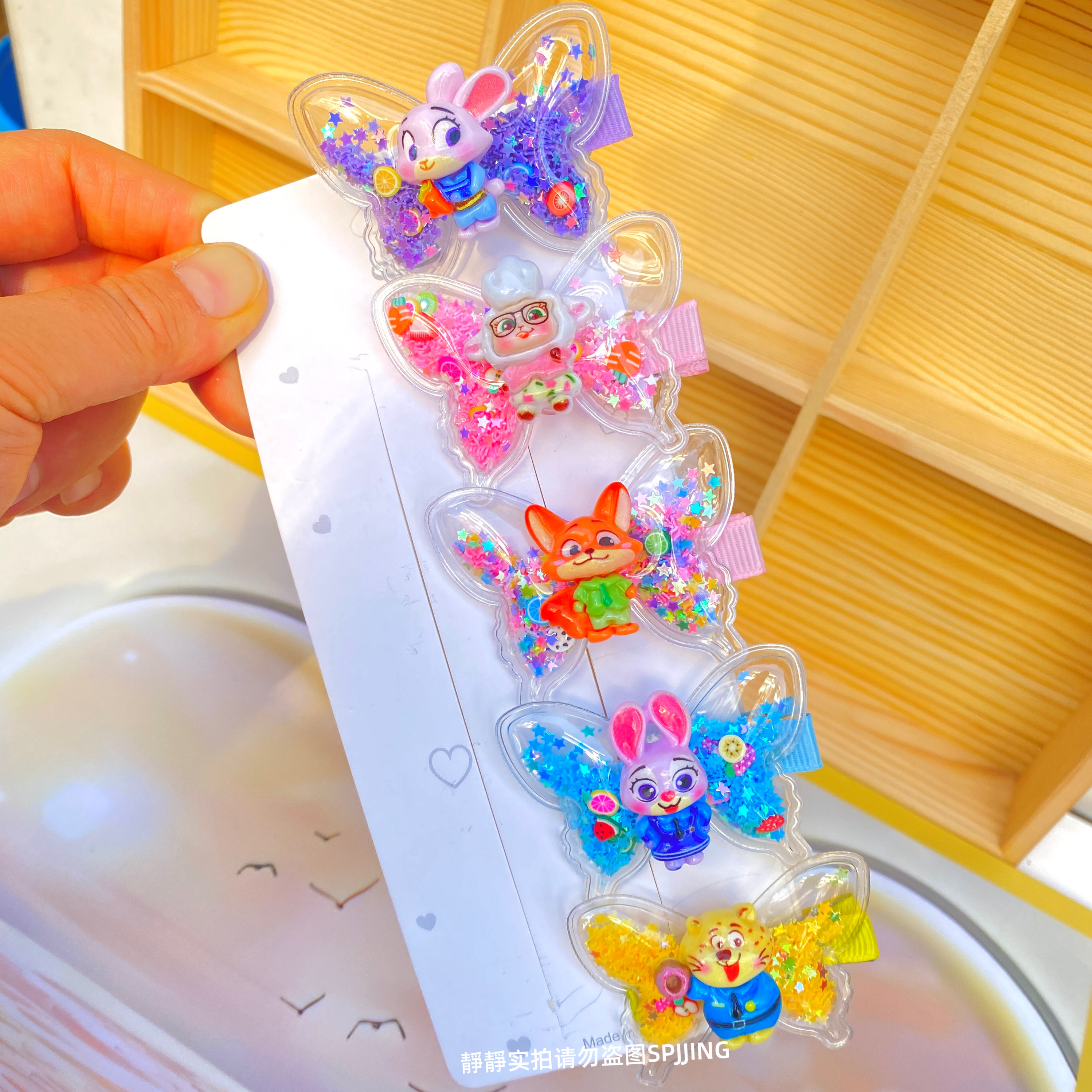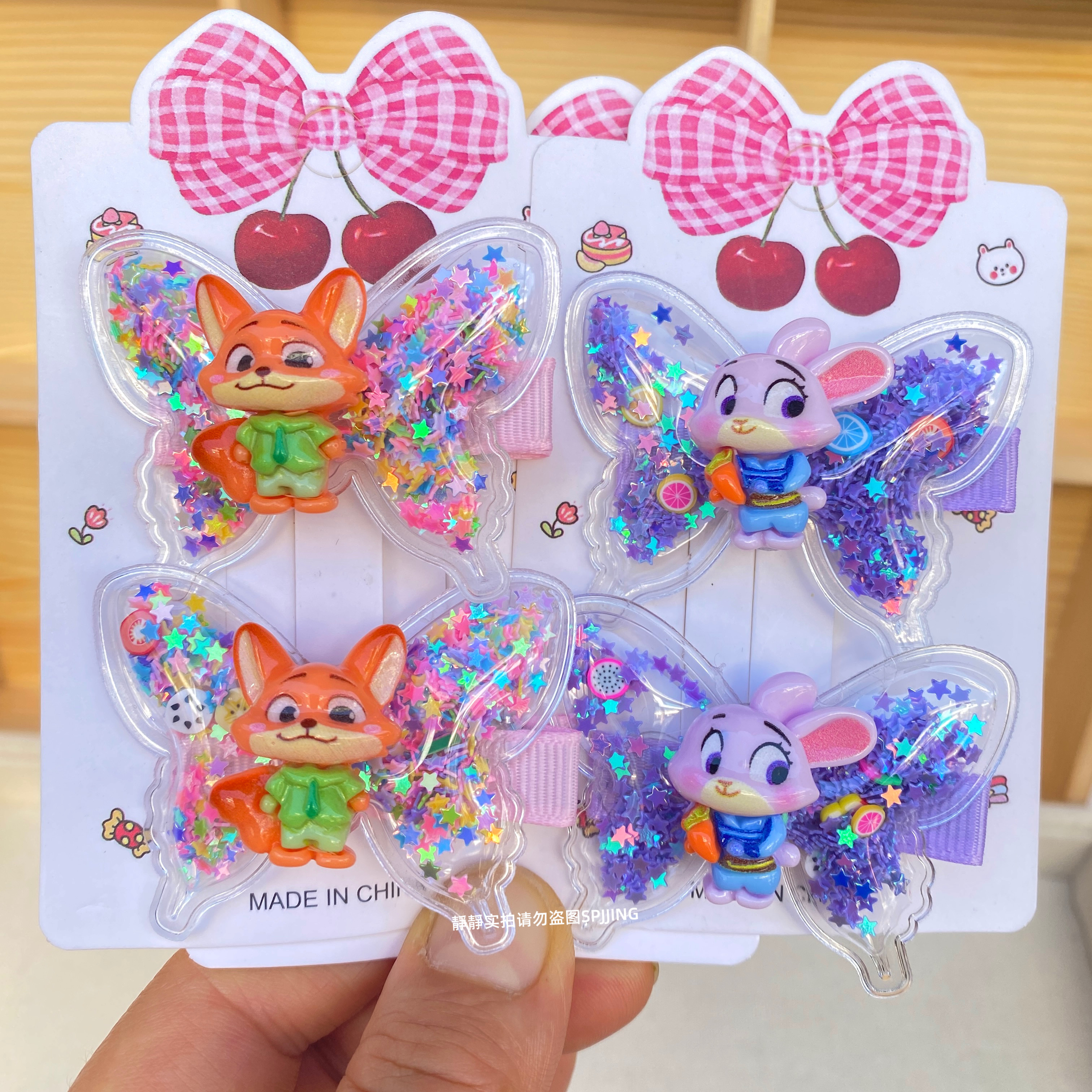 新款疯狂动物城蝴蝶发夹可爱儿童发卡小女孩流沙鸭嘴夹碎发夹发饰
