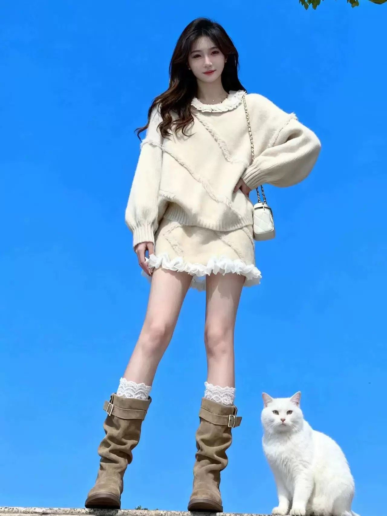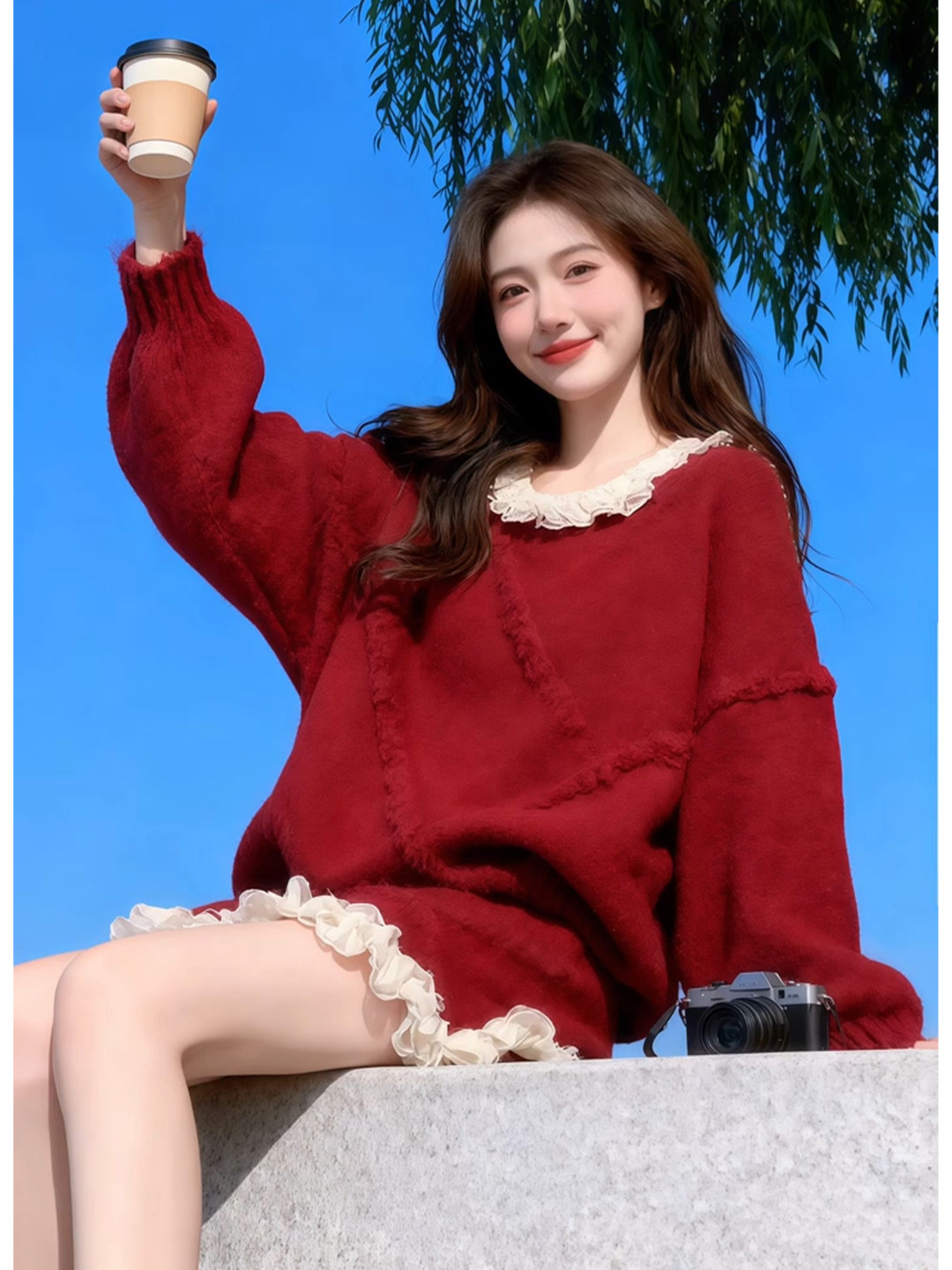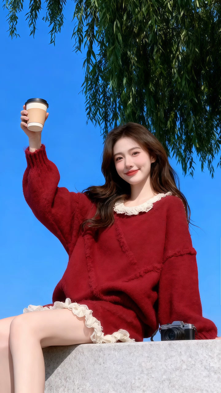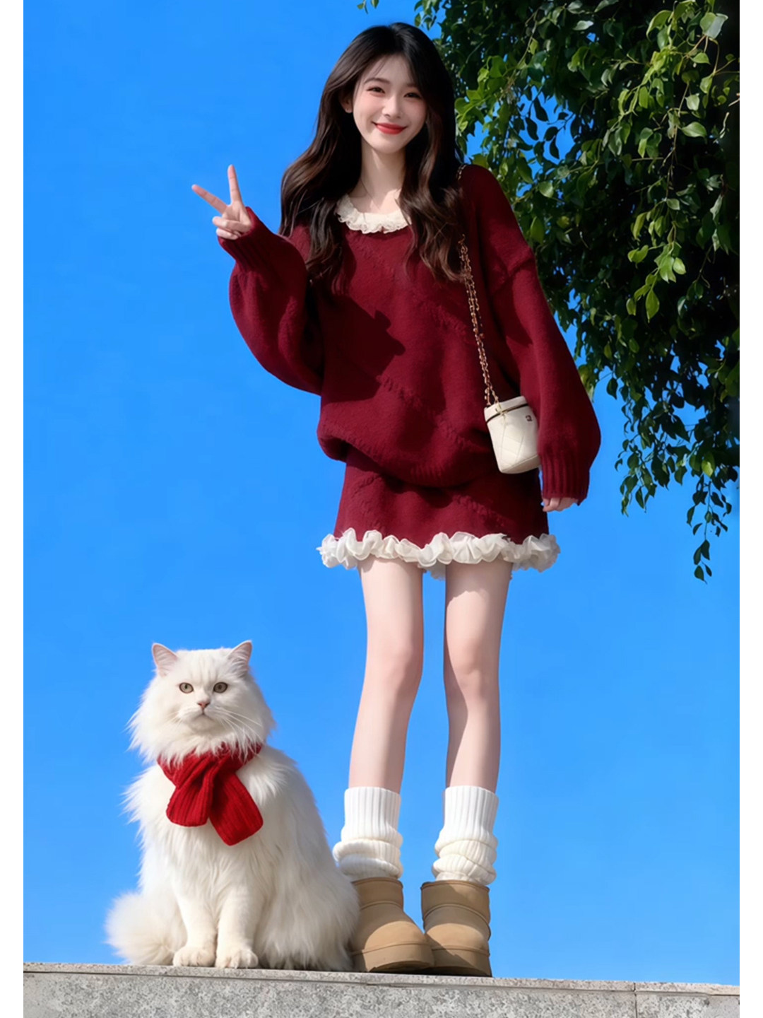 独特漂亮绝美小套装温柔风复古红色针织上衣a字短裙两件套2025冬