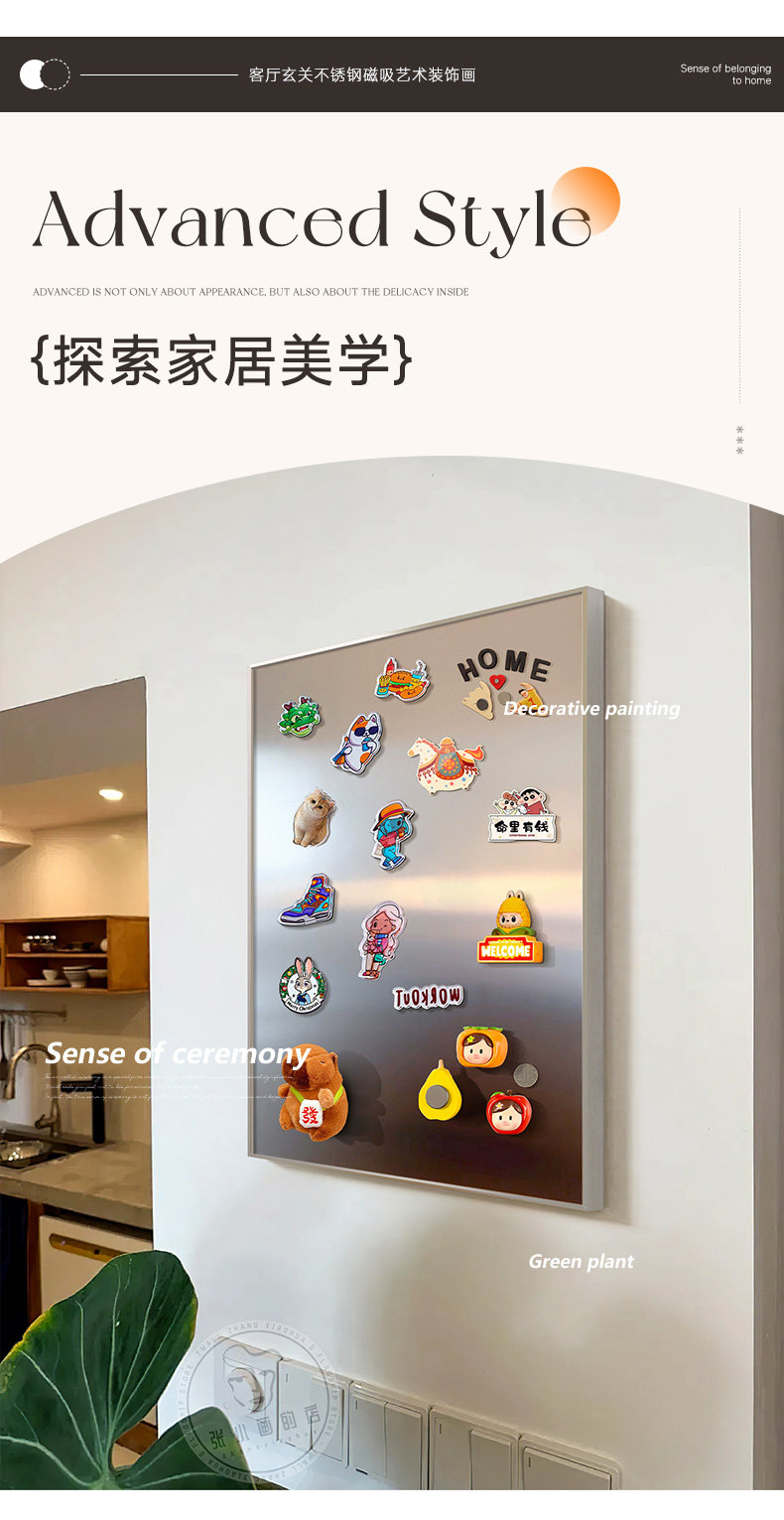 小红书同款diy磁吸不锈钢装饰画冰箱贴2026年照片墙客厅玄关挂画