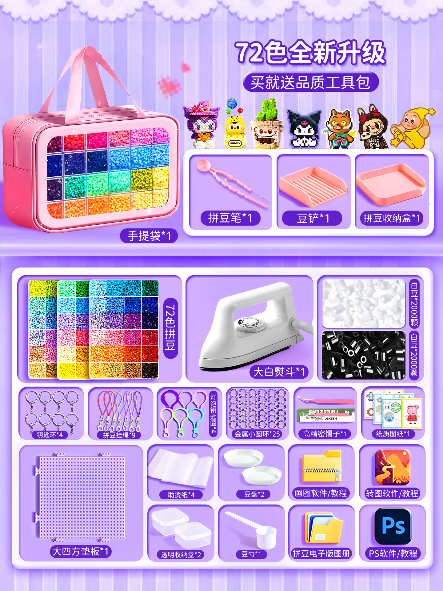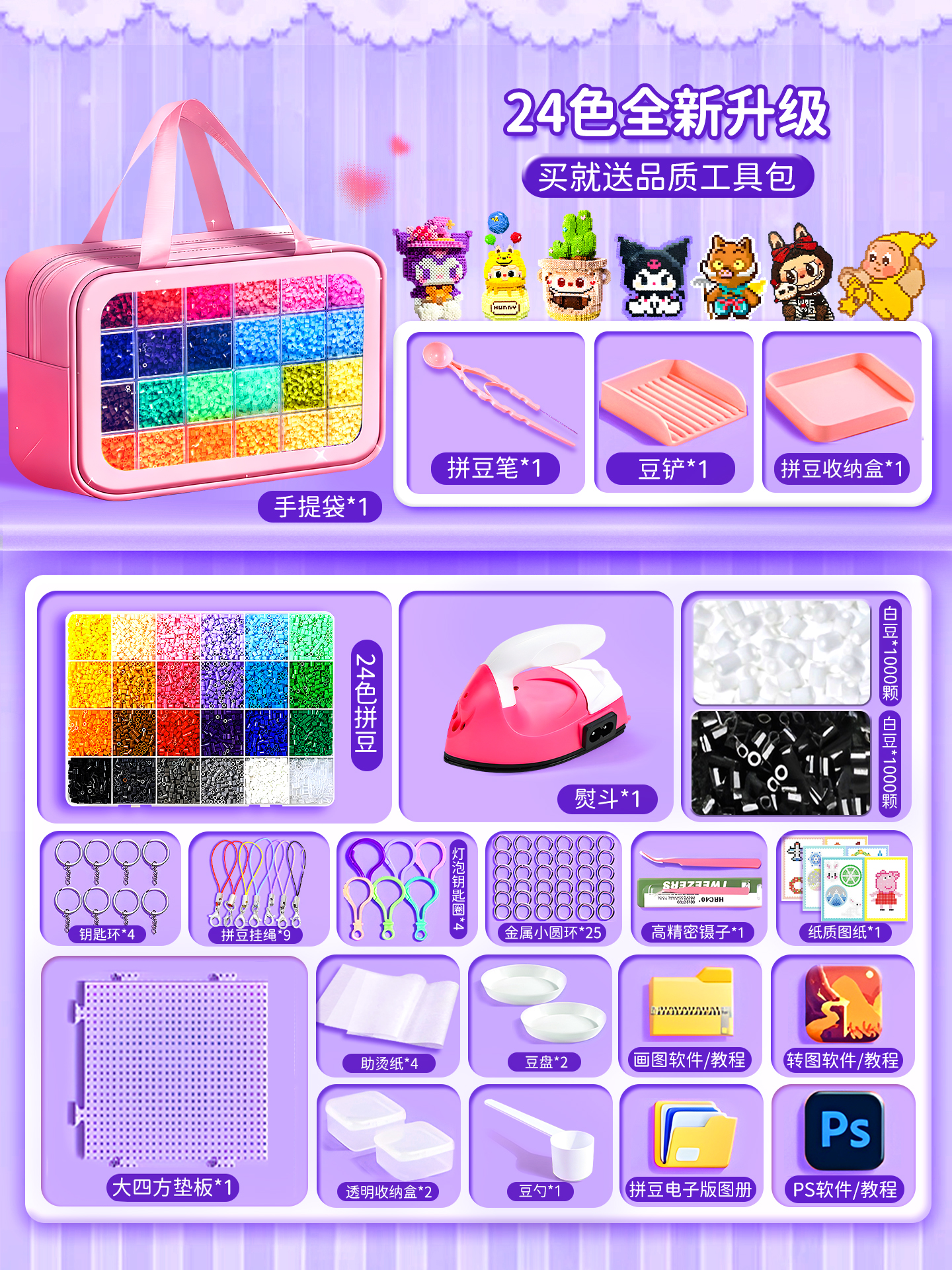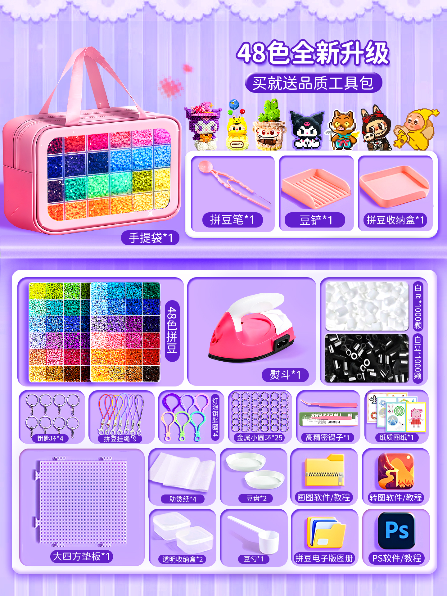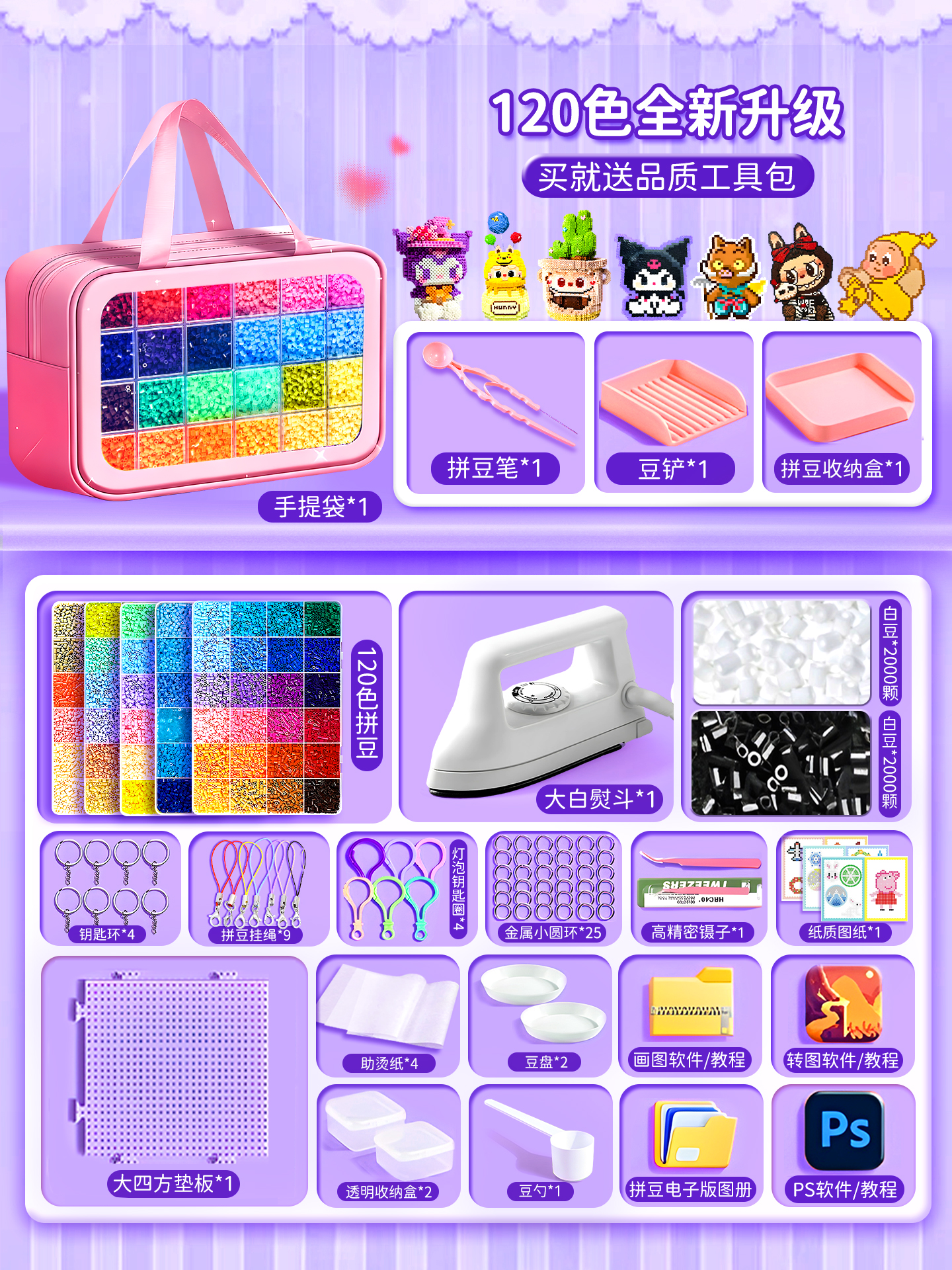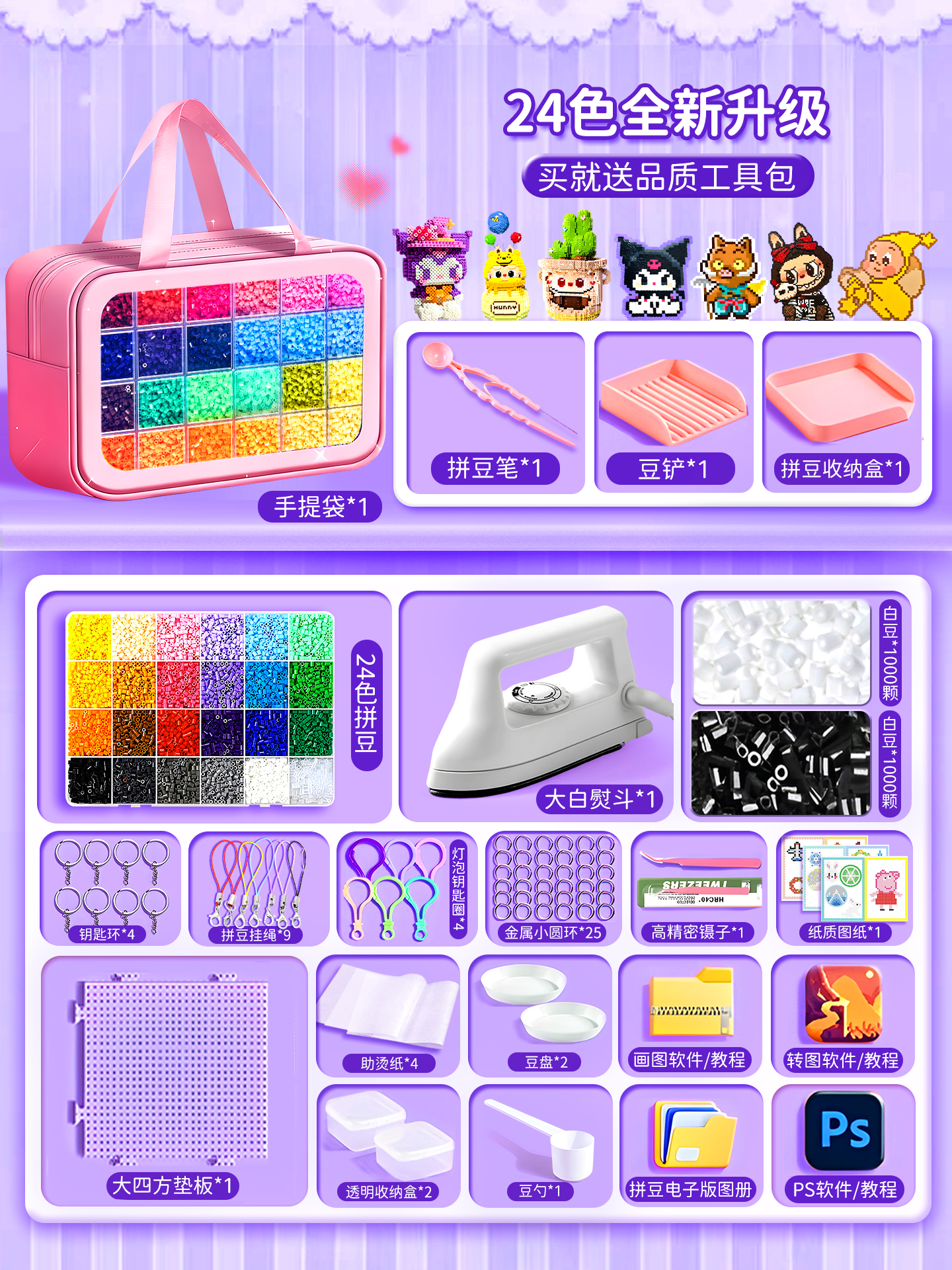 拼豆豆手工diy套装融合豆专用熨斗全套工具补充材料包玩具女孩子