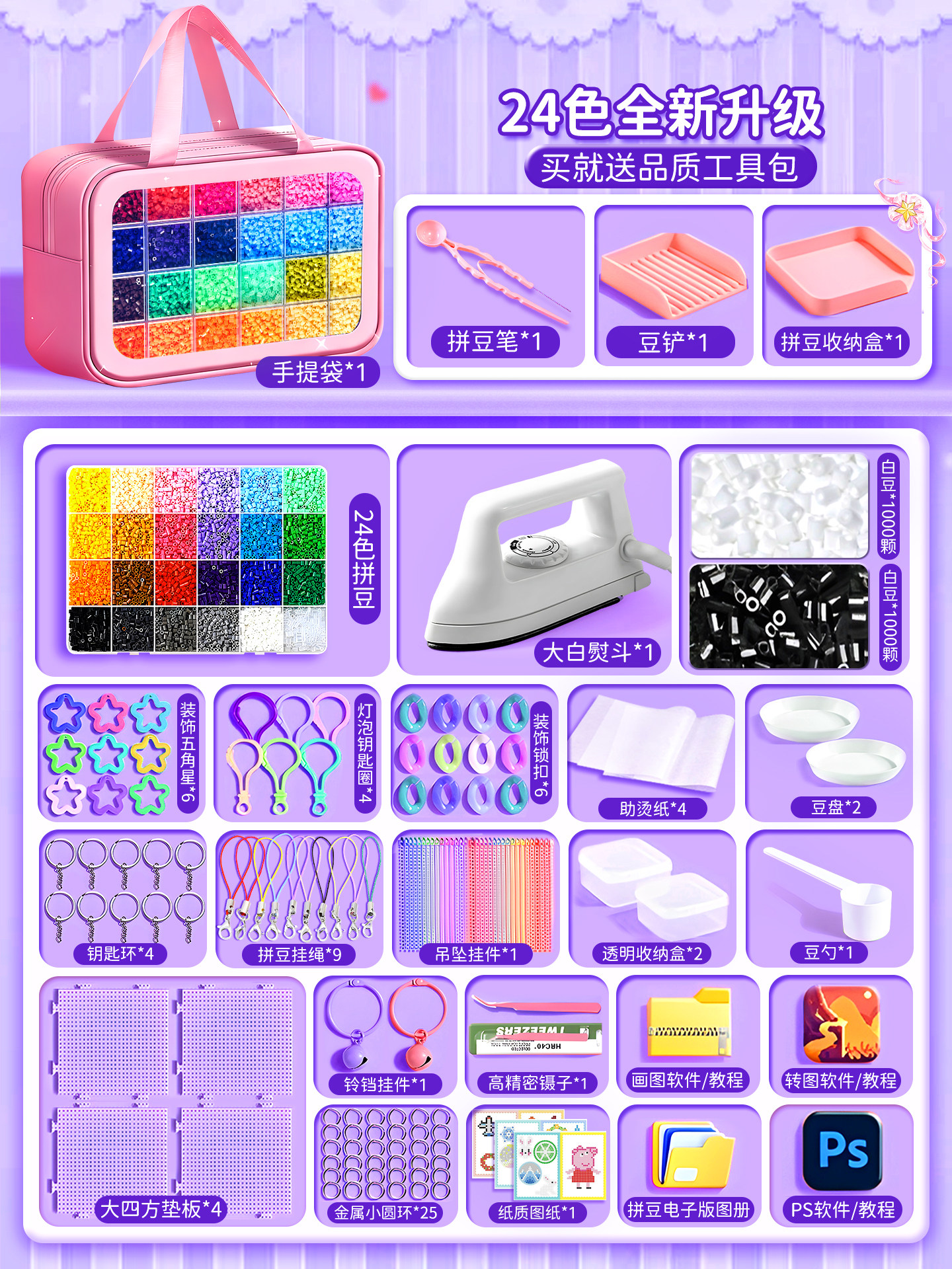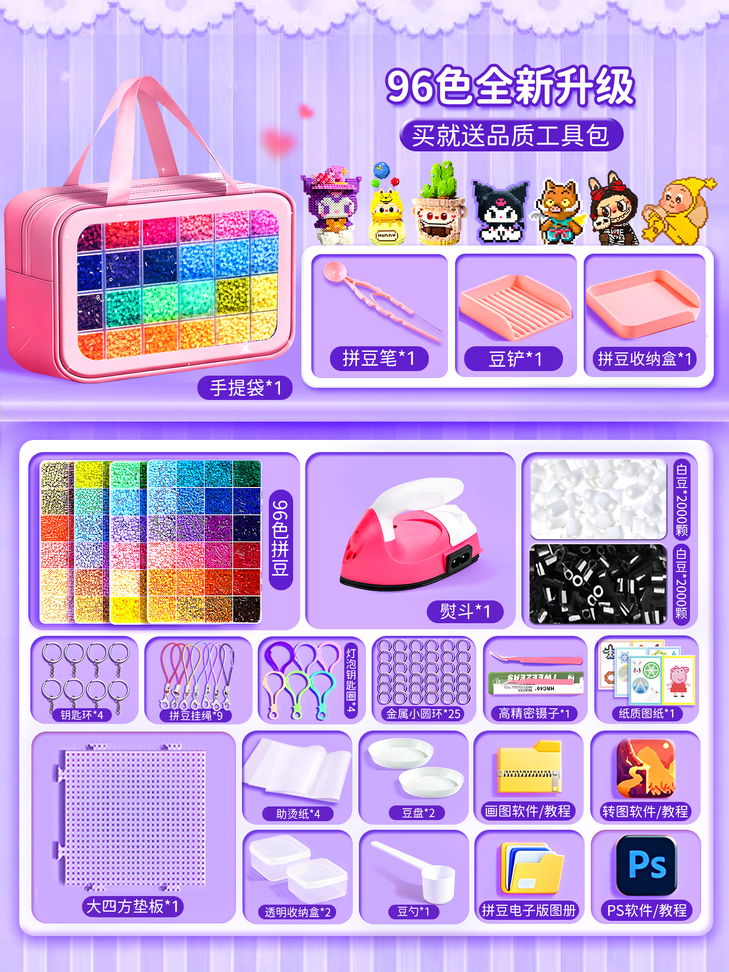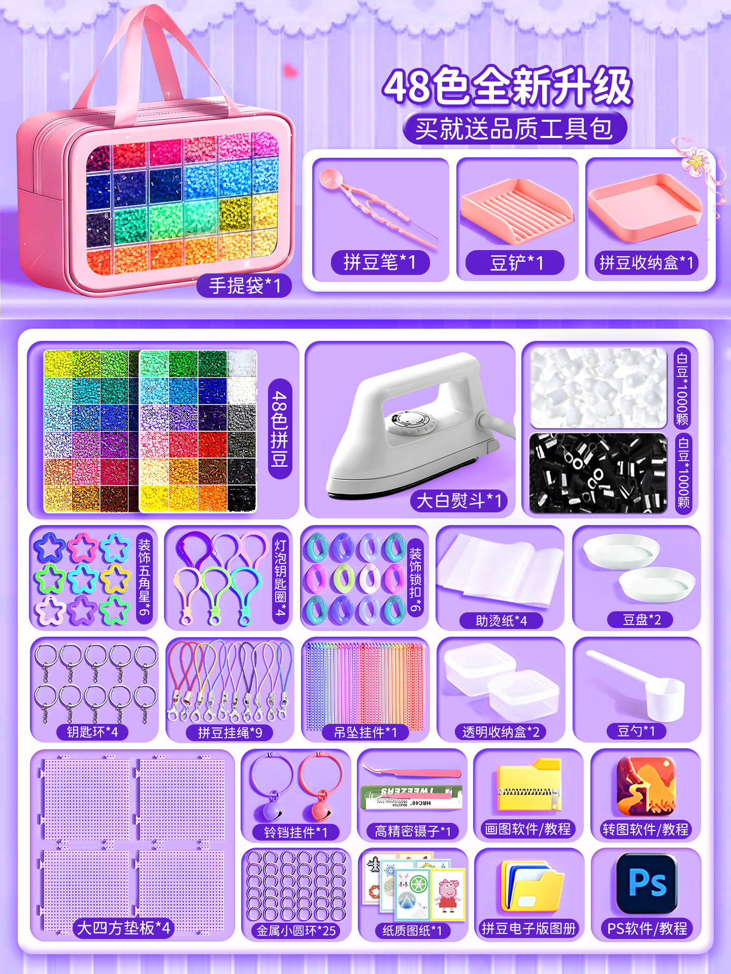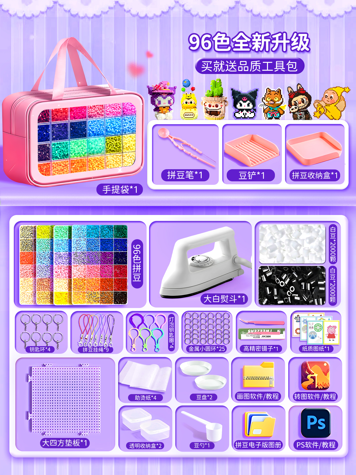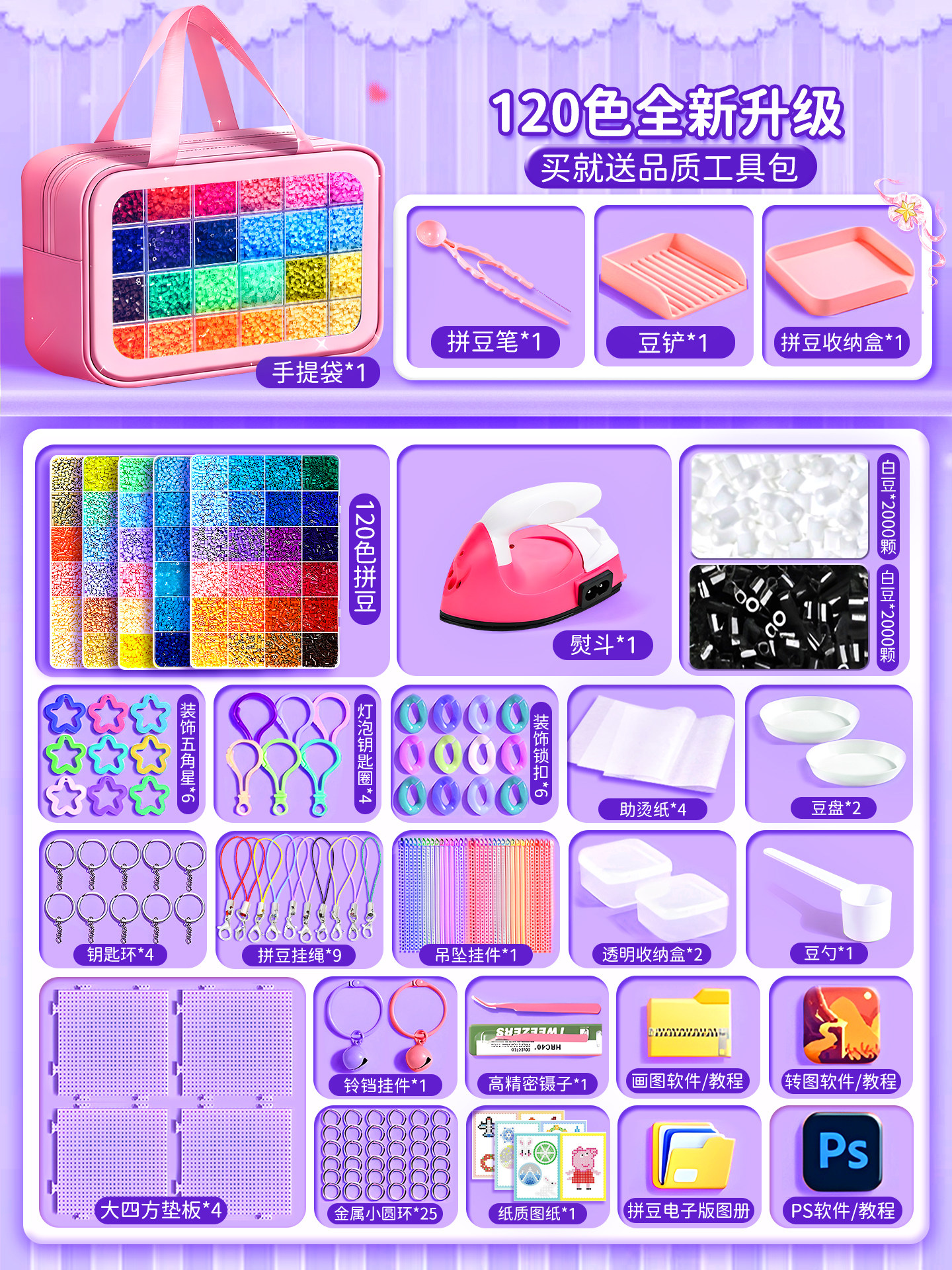 拼豆豆手工diy套装融合豆专用熨斗全套工具补充材料包玩具女孩子
