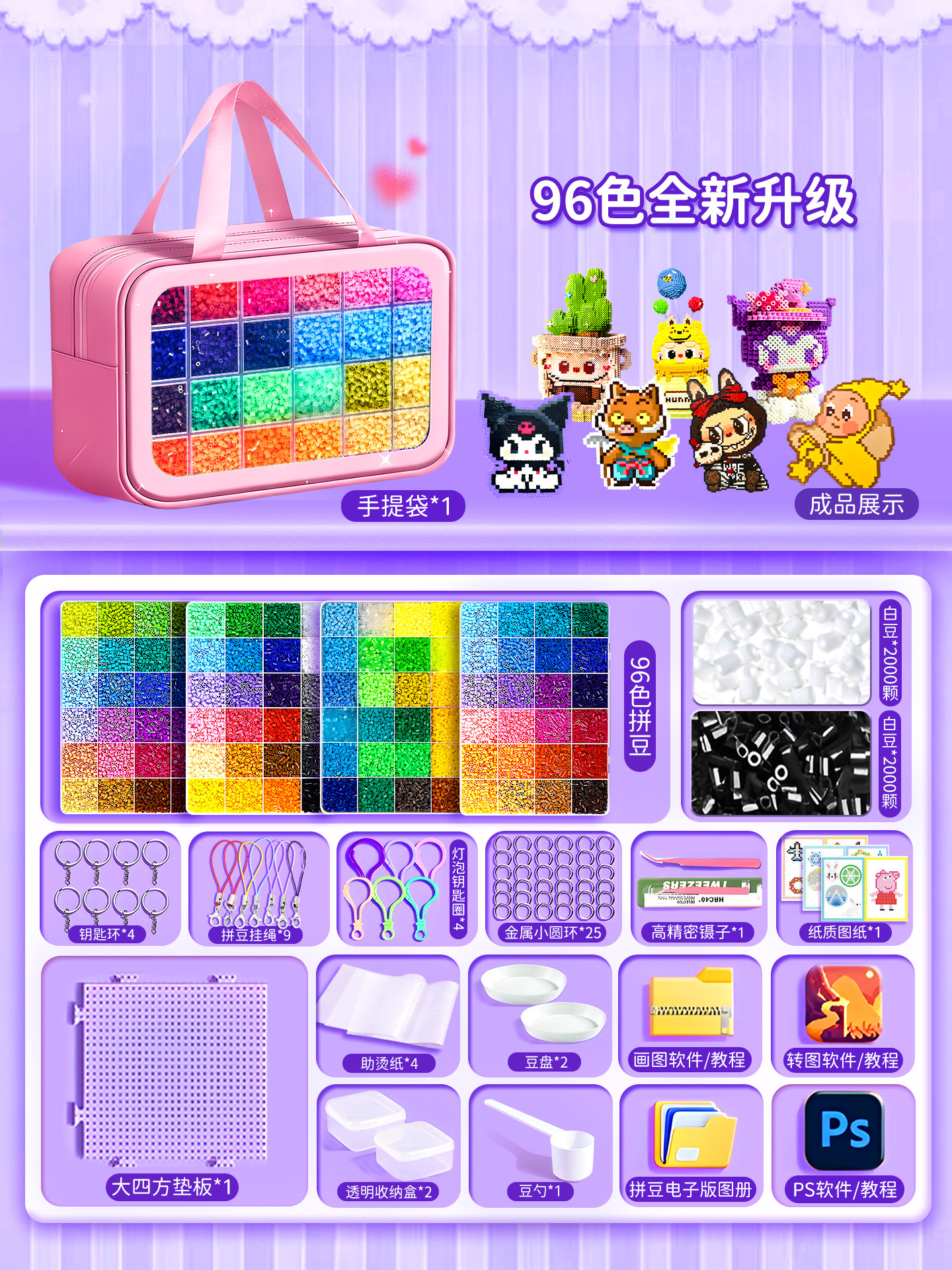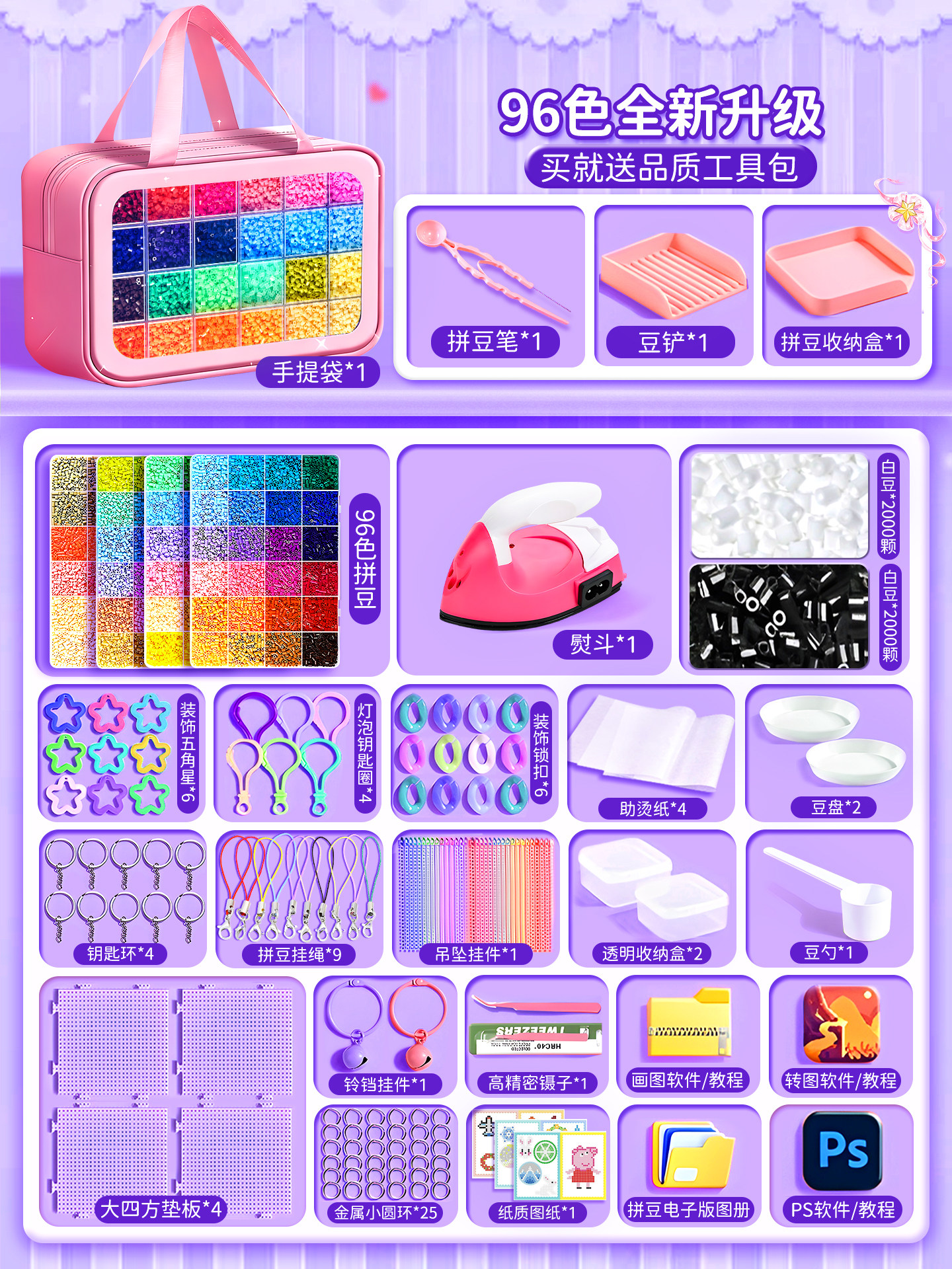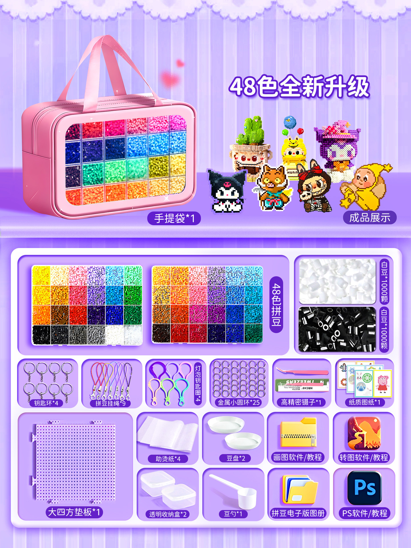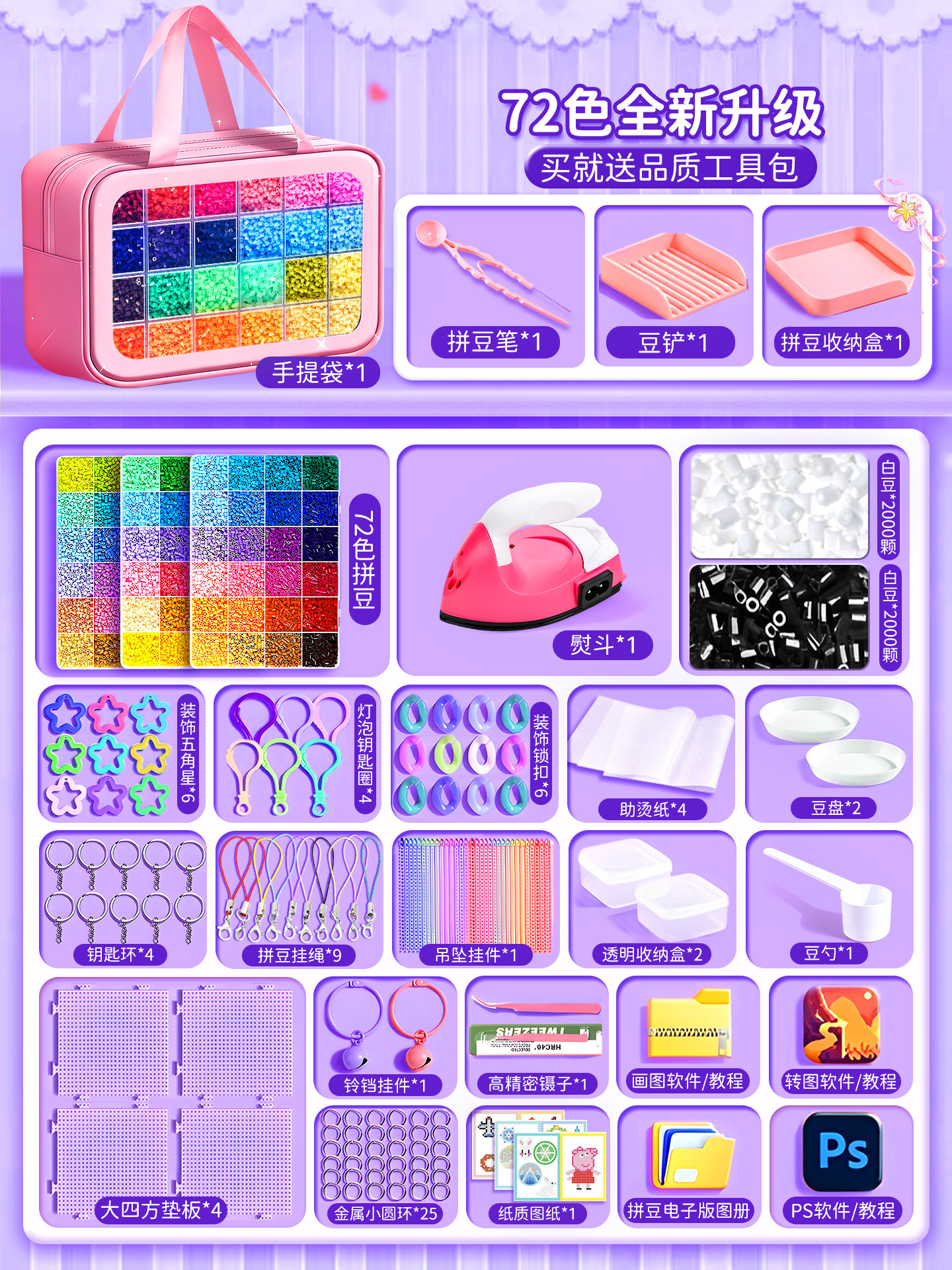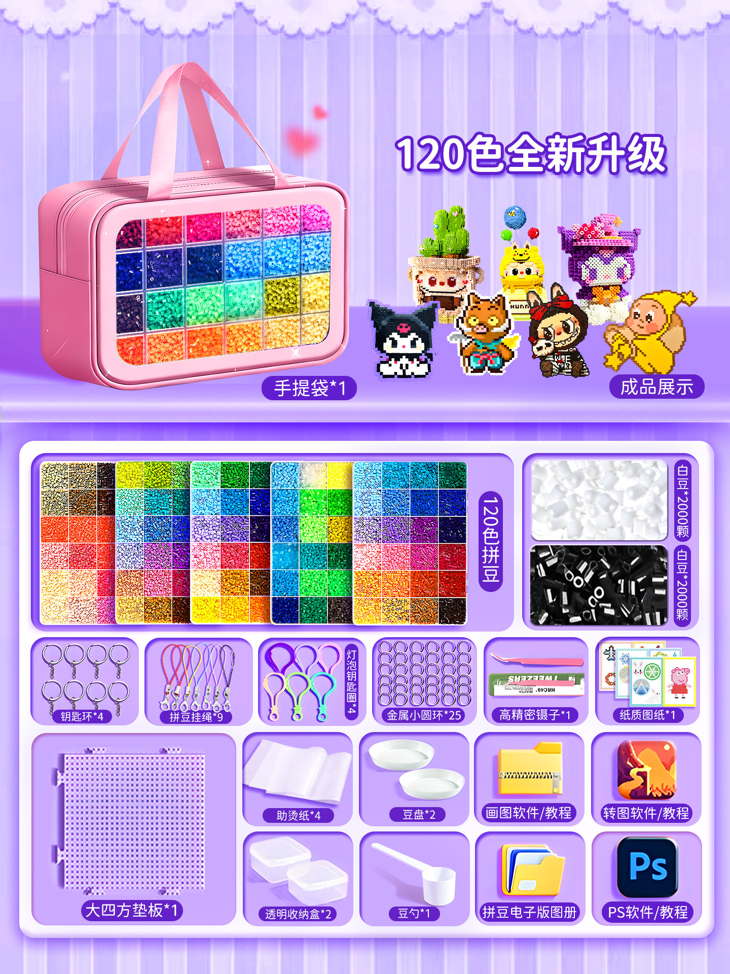 拼豆豆手工diy套装融合豆专用熨斗全套工具补充材料包玩具女孩子