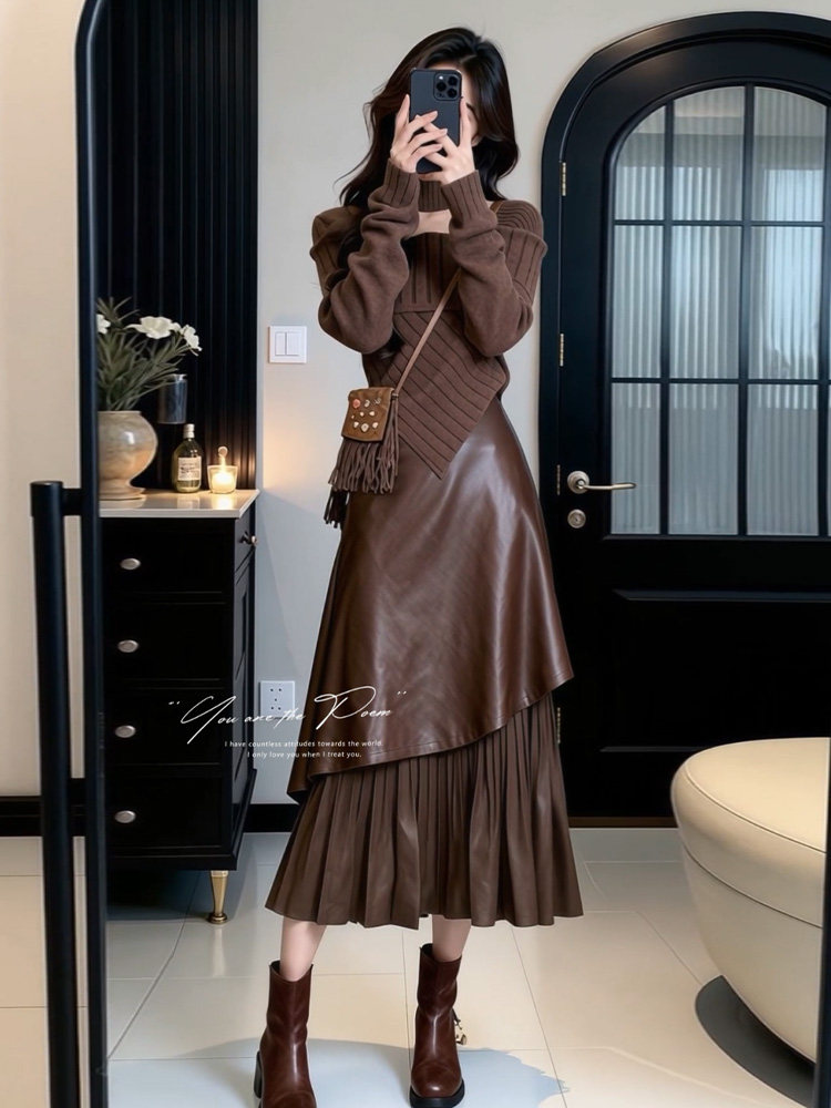 冬装穿搭一整套独特减龄漂亮巨好看的富家千金小洋装连衣裙子套装