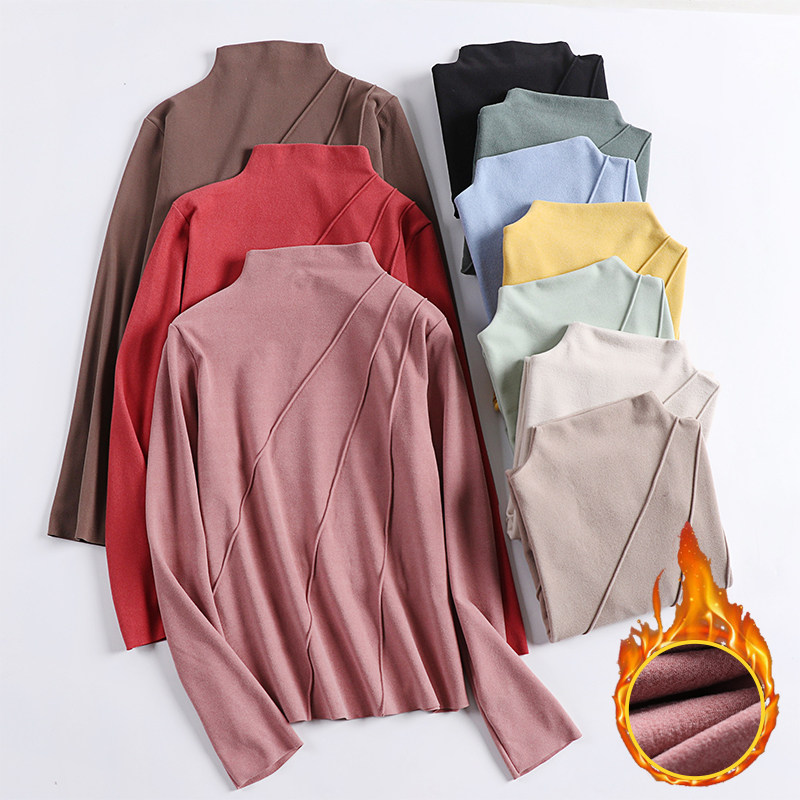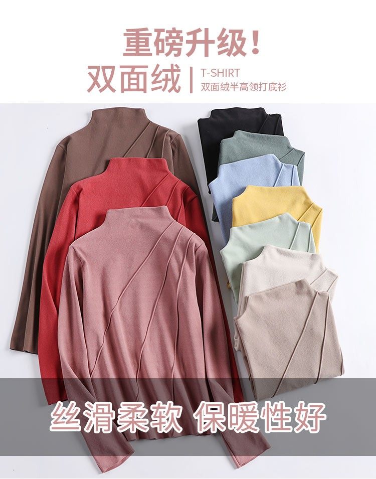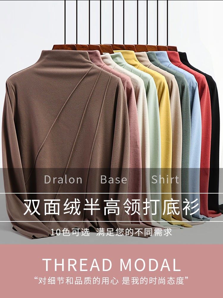 清仓捡漏德绒半高领打底衫女冬季内搭长袖t恤加厚绒宽松保暖上衣
