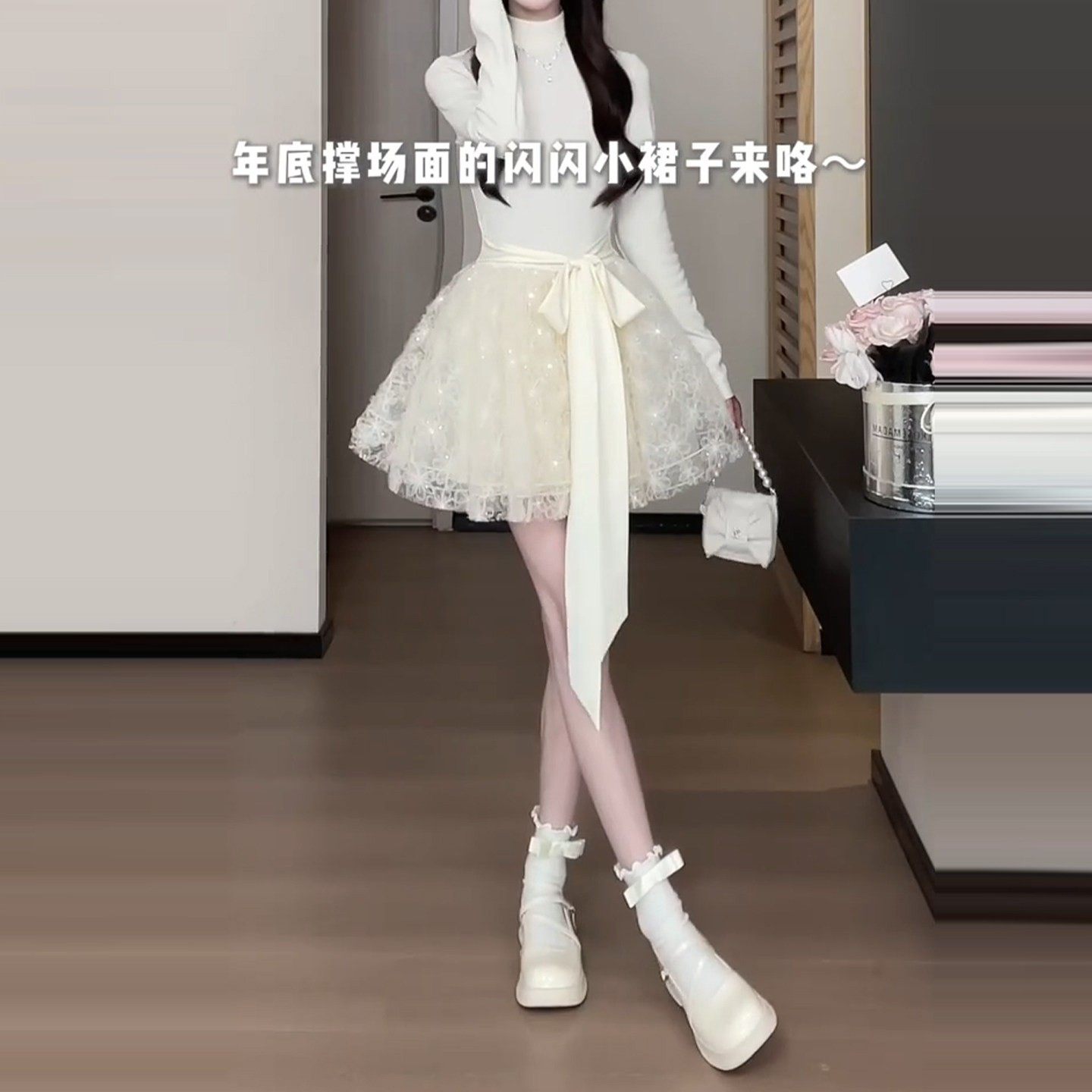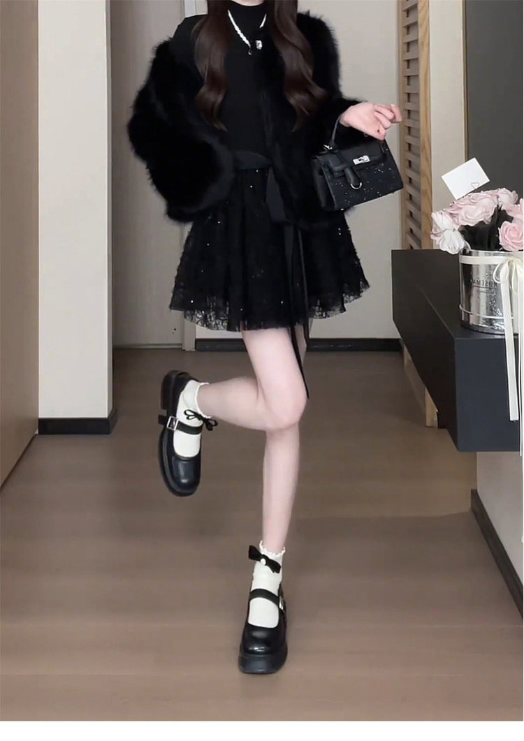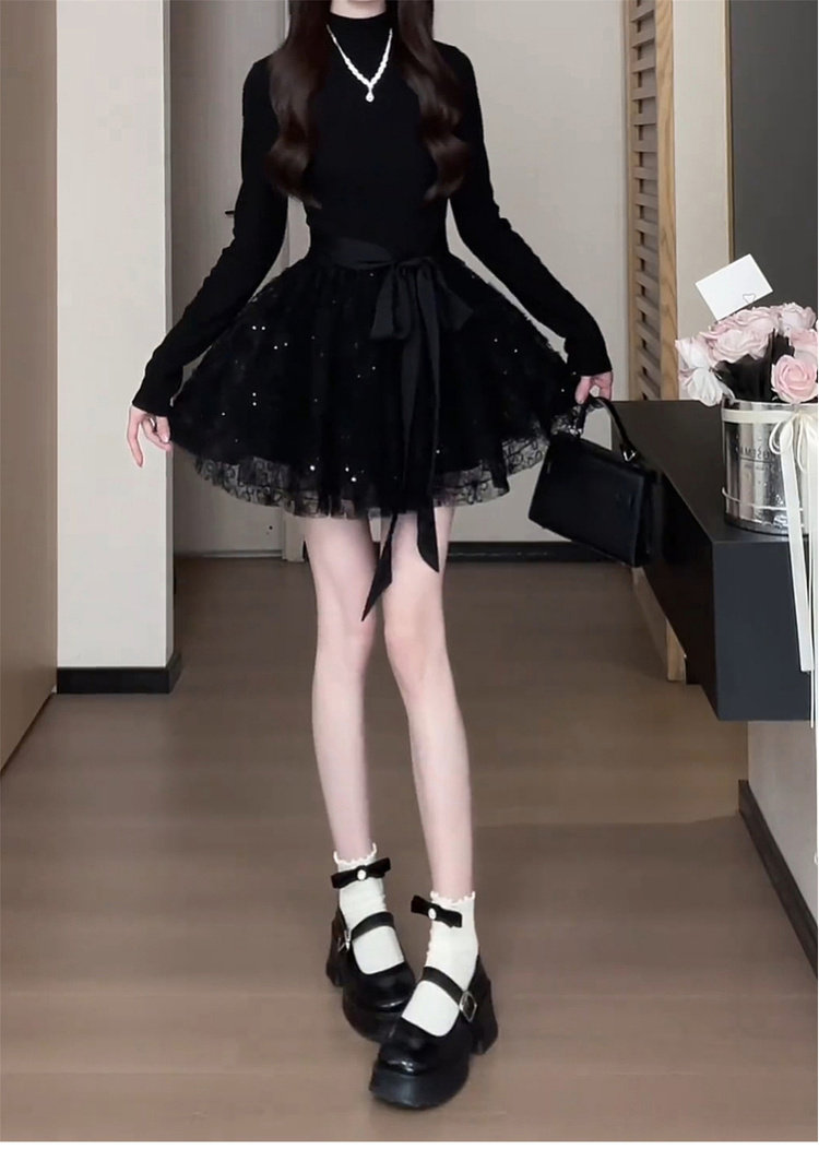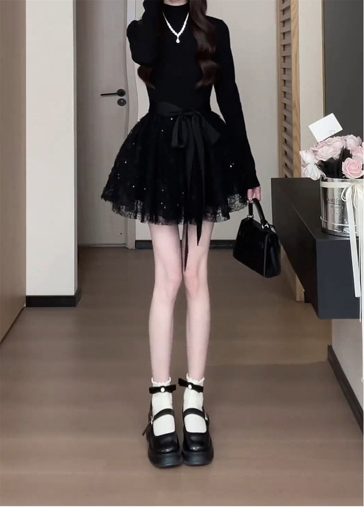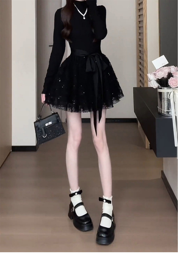 小香赫本风黑色连衣裙子女秋冬2025新款气质收腰千金风蓬蓬小黑裙