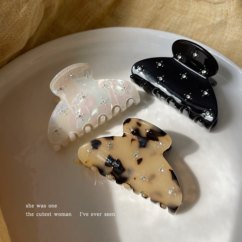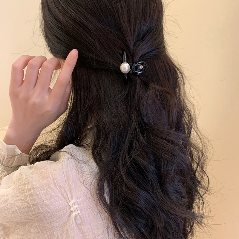 高级感珍珠抓夹镶钻鲨鱼夹气质发量少半扎发夹子可爱后脑勺发饰女