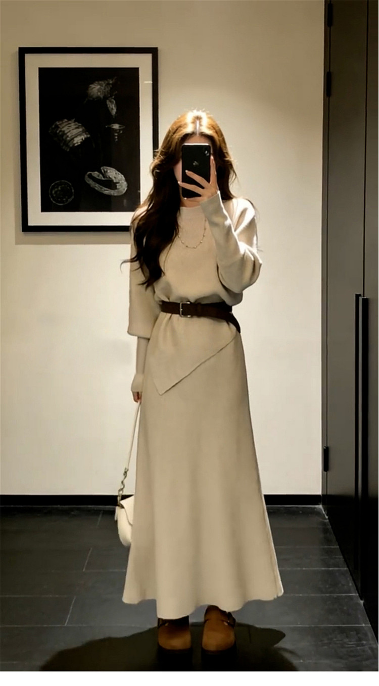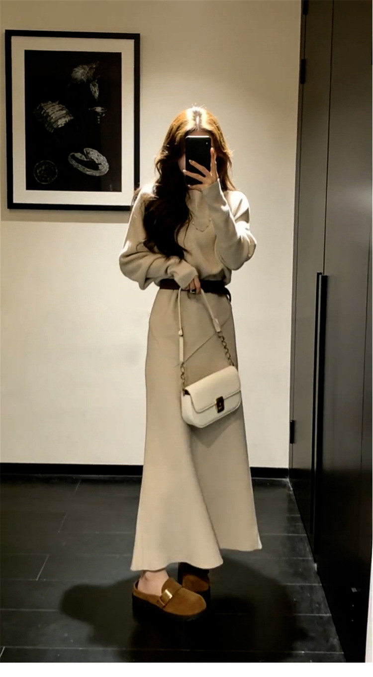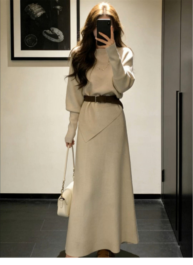 巨好看法式毛衣针织连衣裙子女秋冬2025新款韩系穿搭一整套装长裙