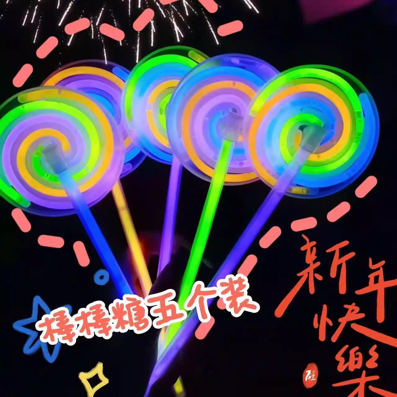 萤光旋转棒棒糖手摇解压发光玩具2025新款趣味拍照幼儿园活动礼物