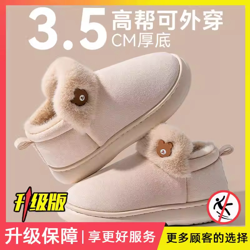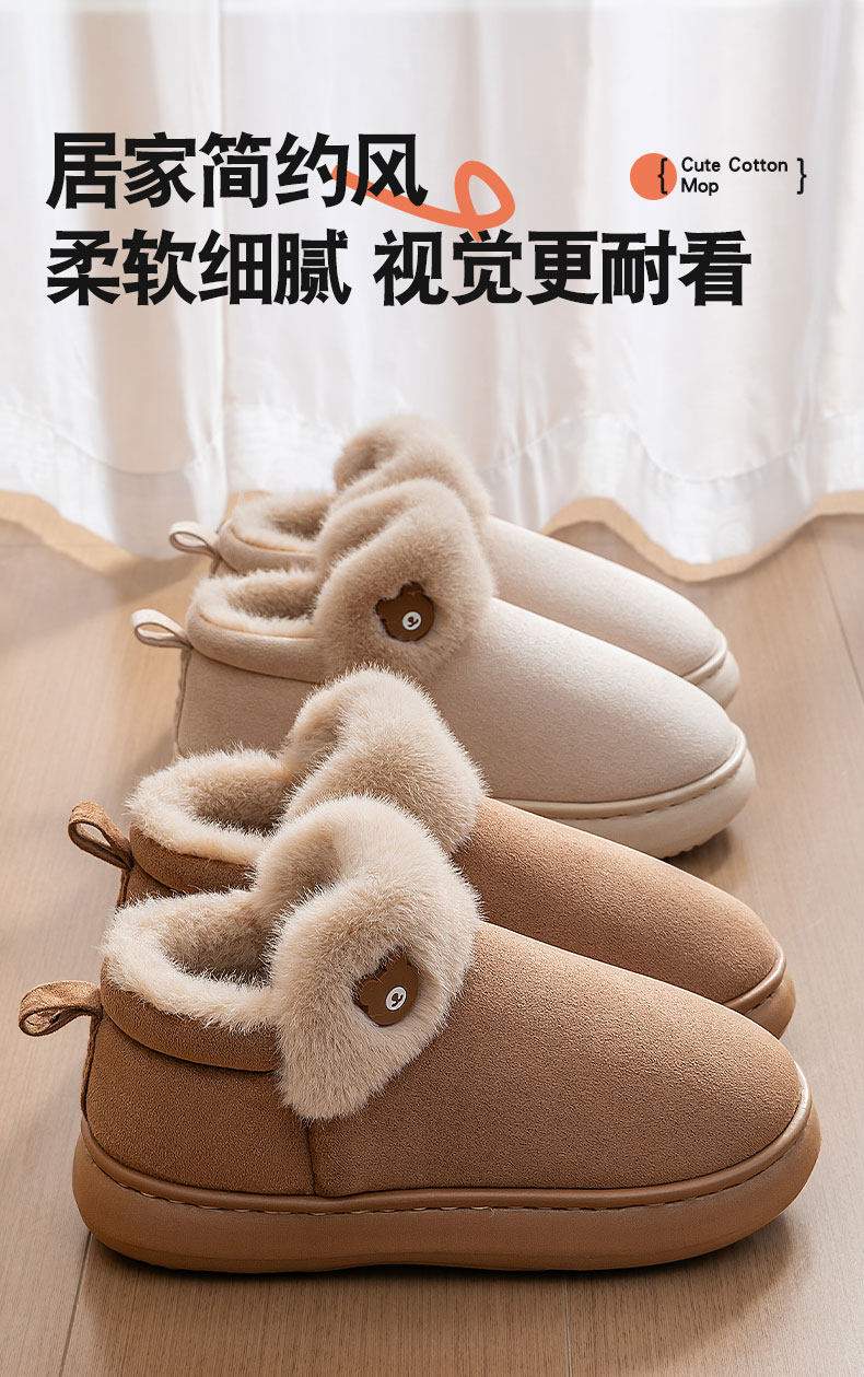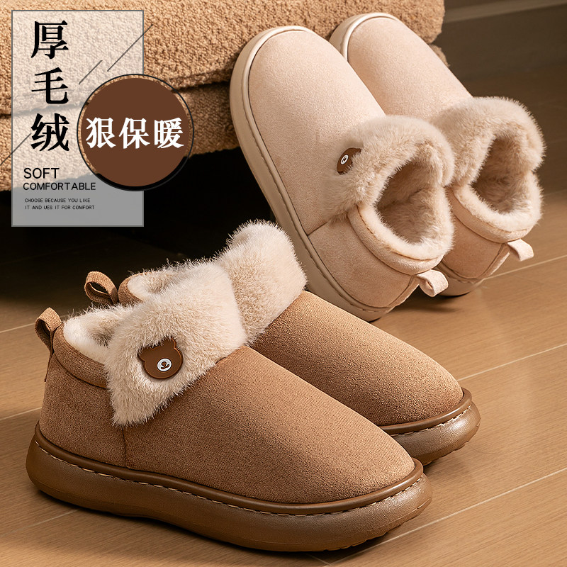 踩屎感棉拖鞋女士冬季包跟2025新款毛毛绒保暖厚底防滑棉拖女外穿