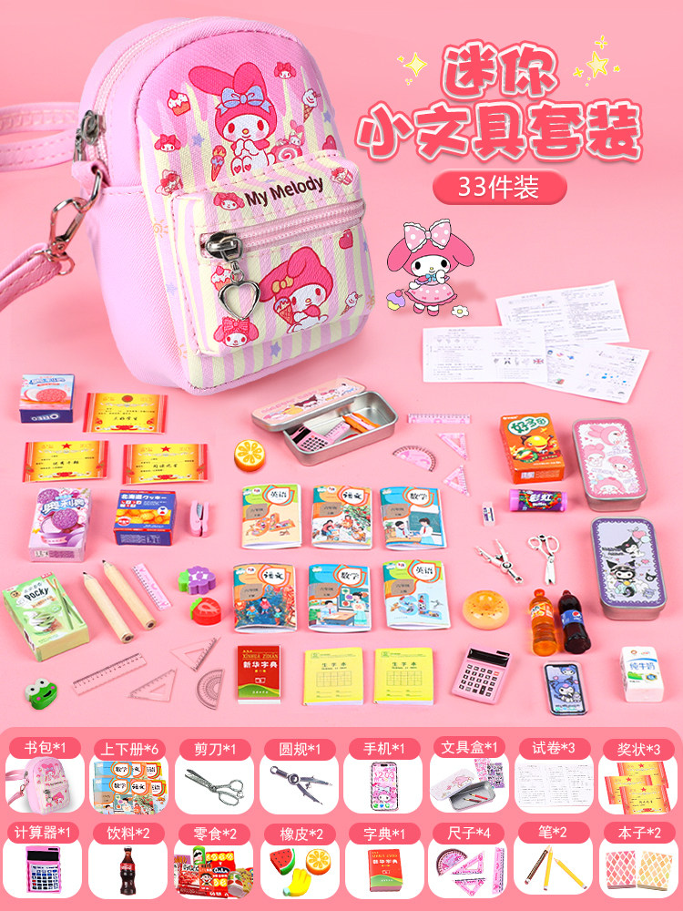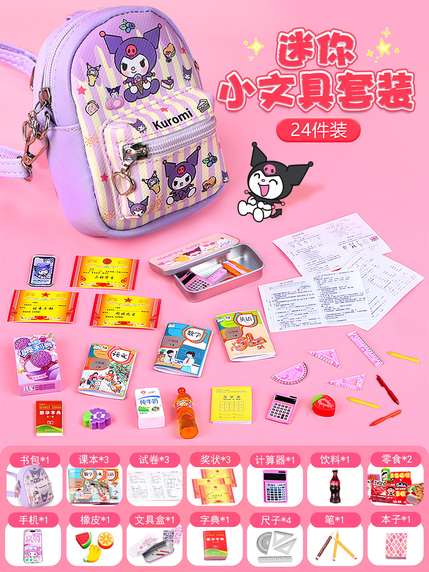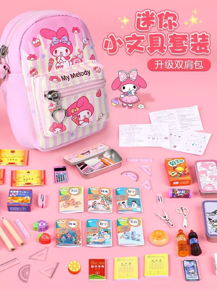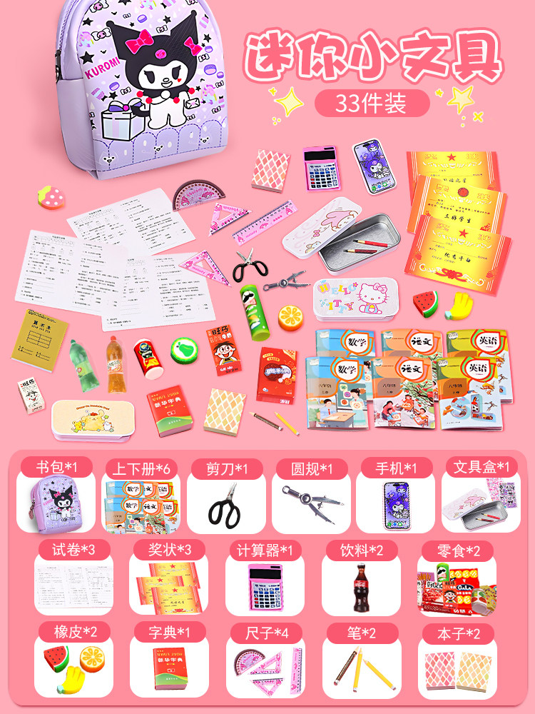 迷你仿真小书包六一儿童节礼物小文具小物品女孩子书本全套装玩具