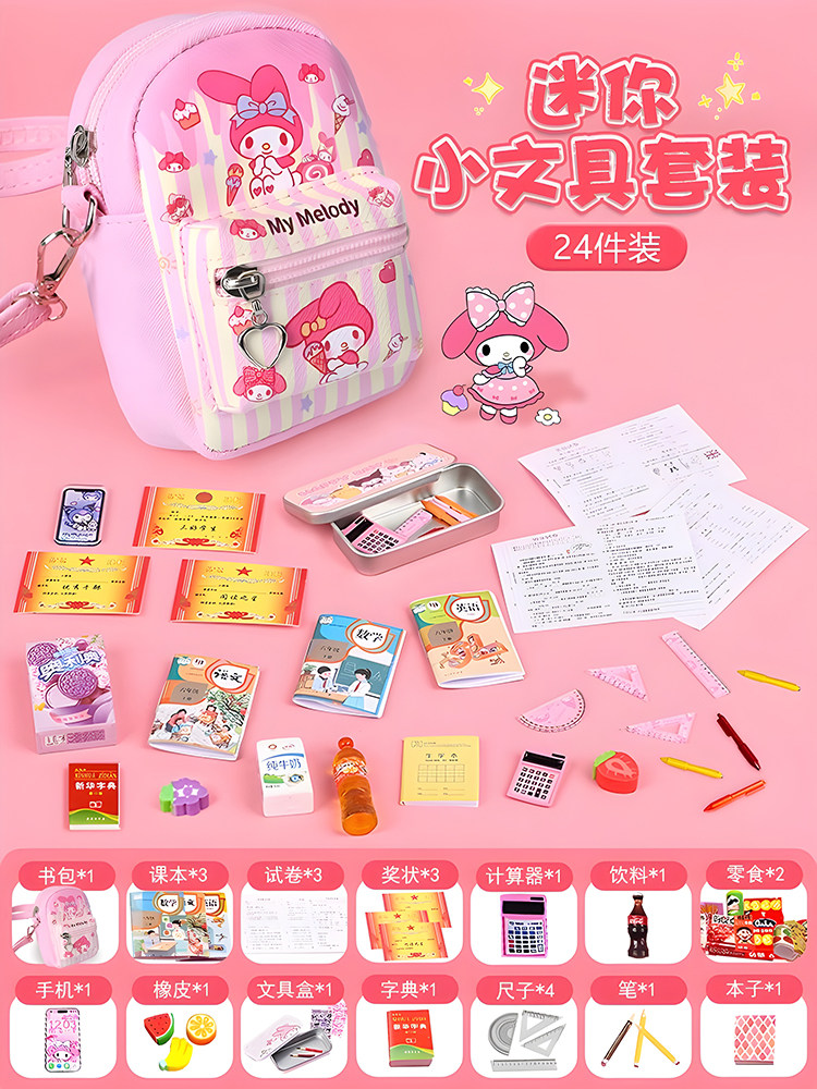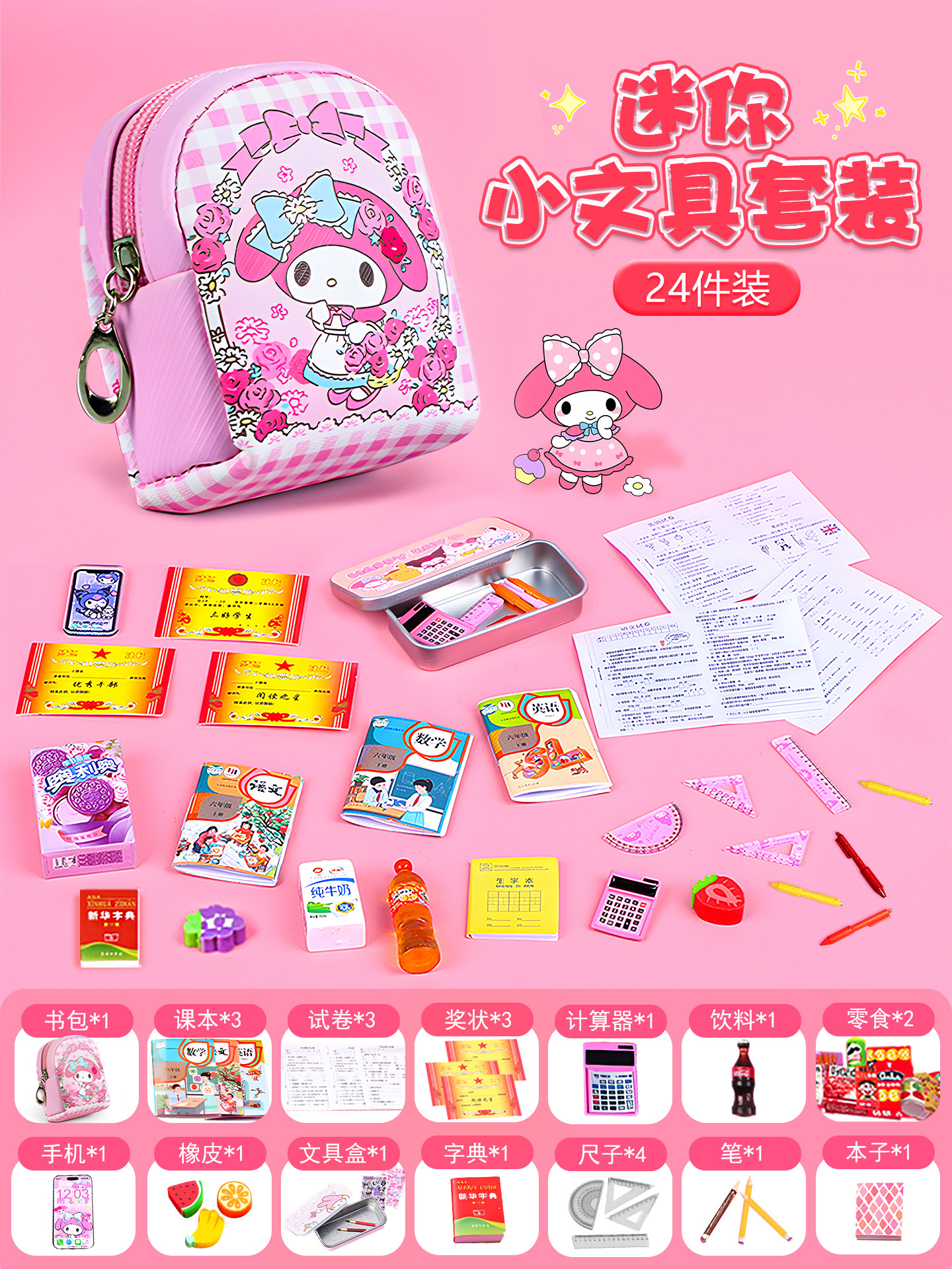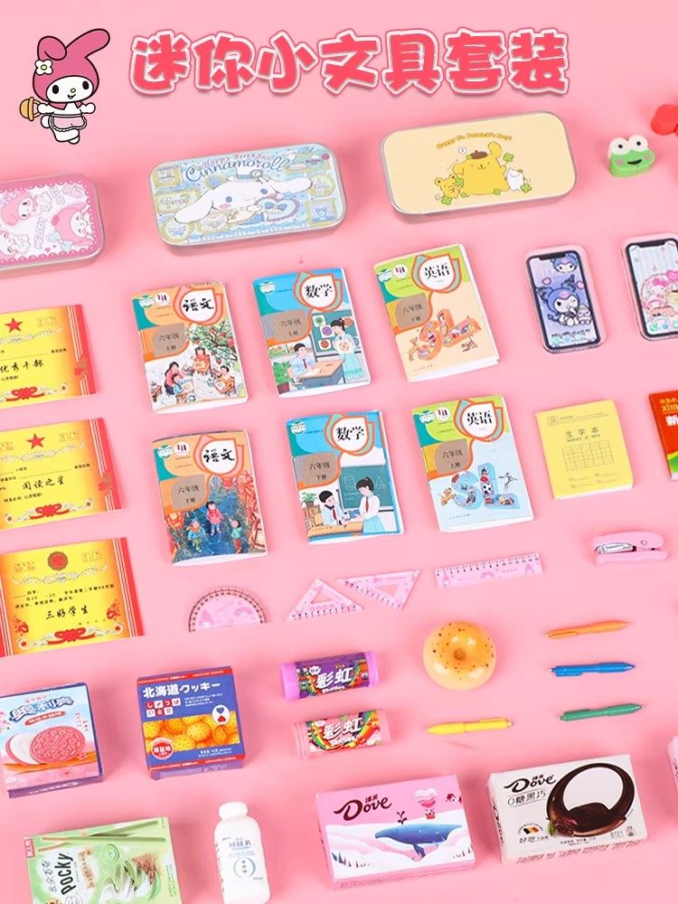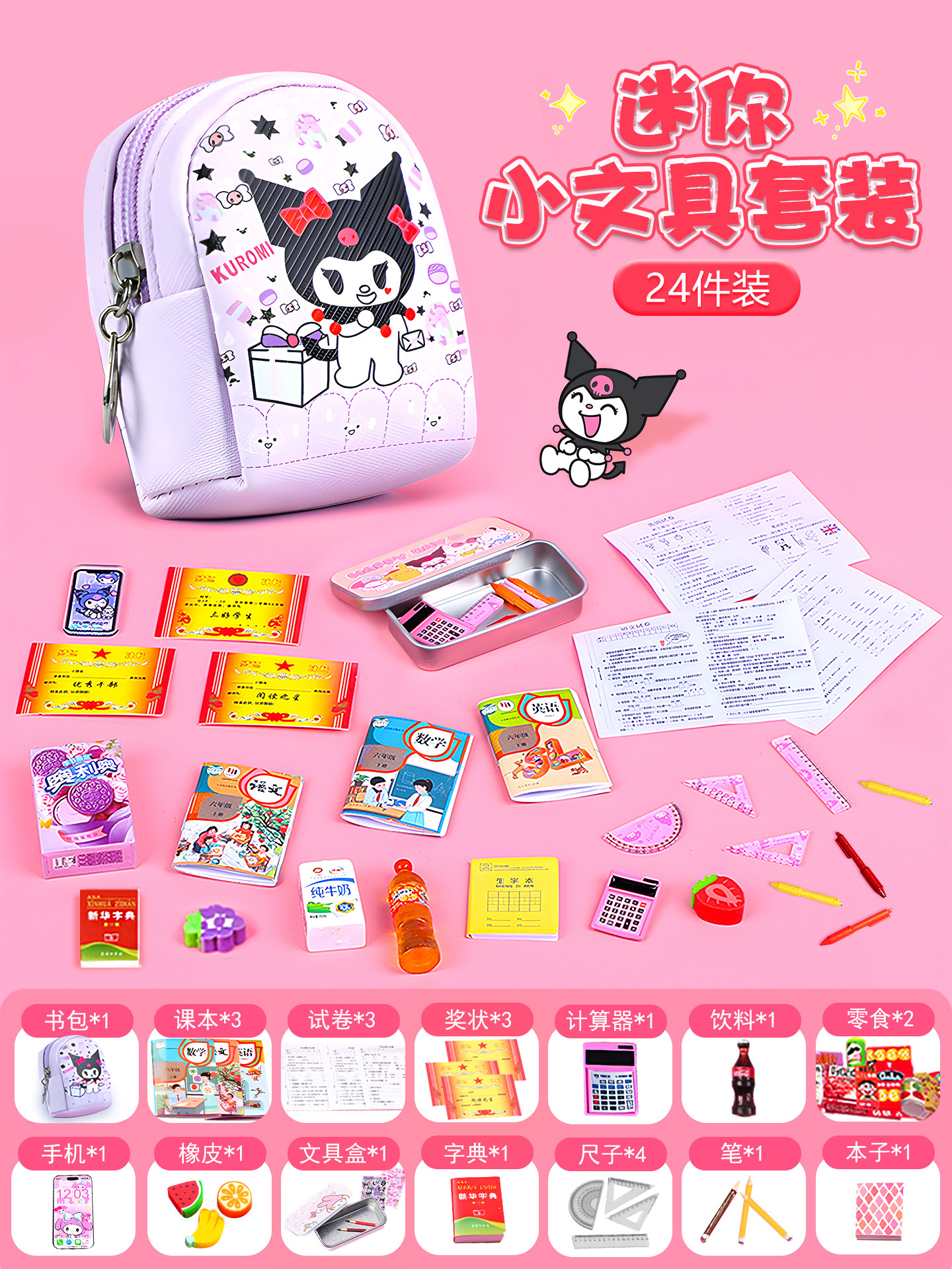 迷你仿真小书包六一儿童节礼物小文具小物品女孩子书本全套装玩具