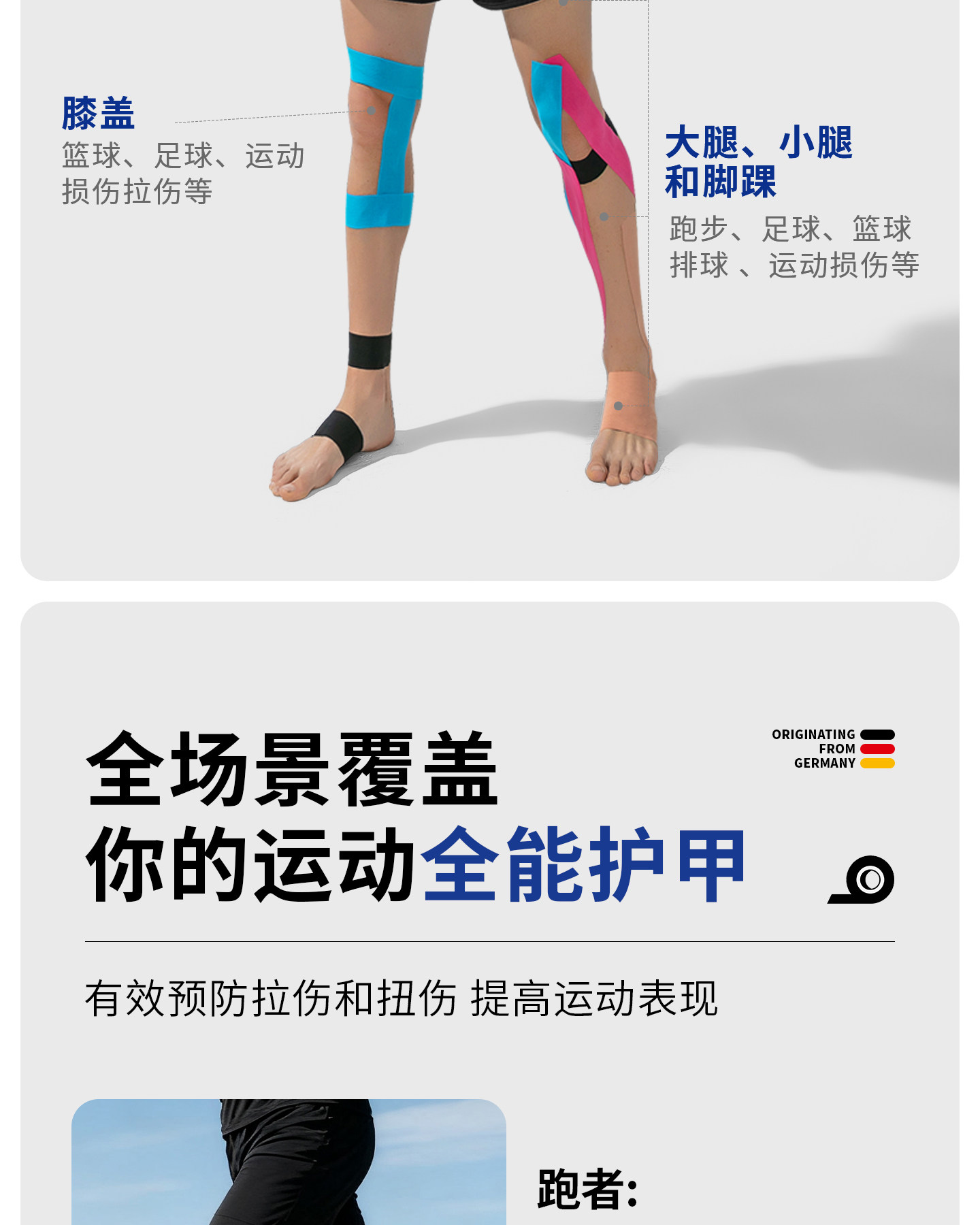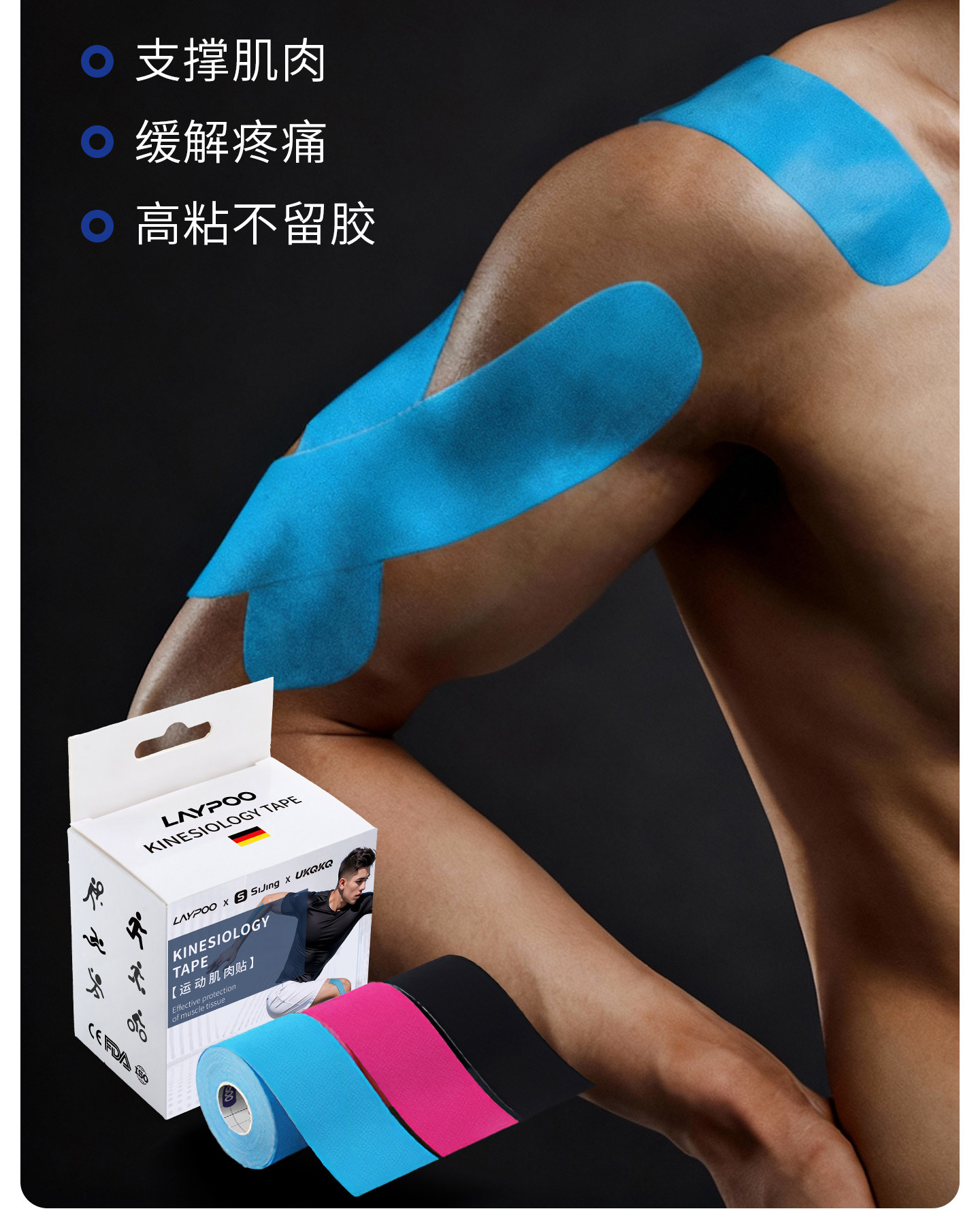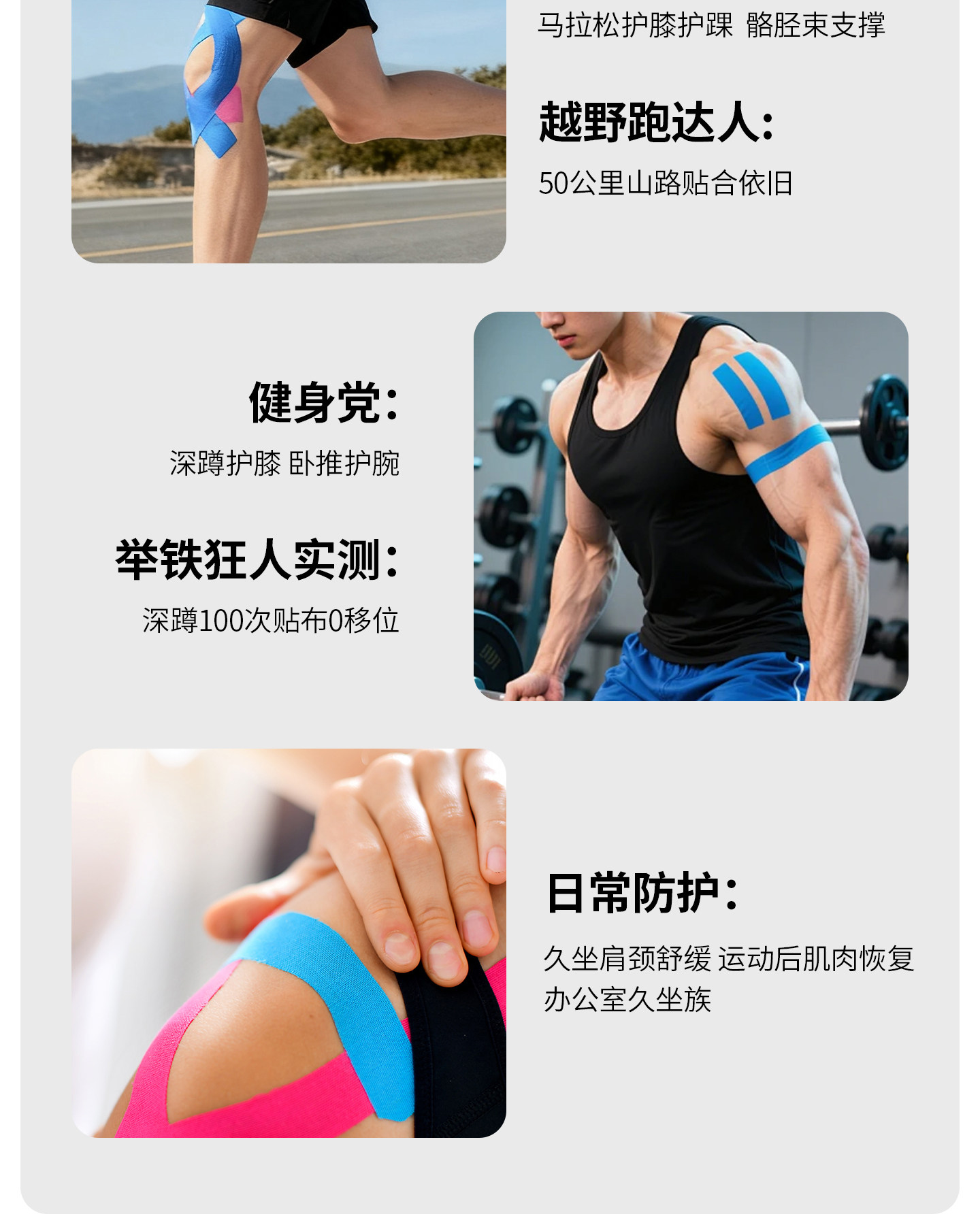 医用级运动防护肌肉贴预防运动损伤缓解酸痛疲劳透气弹性绷带健身