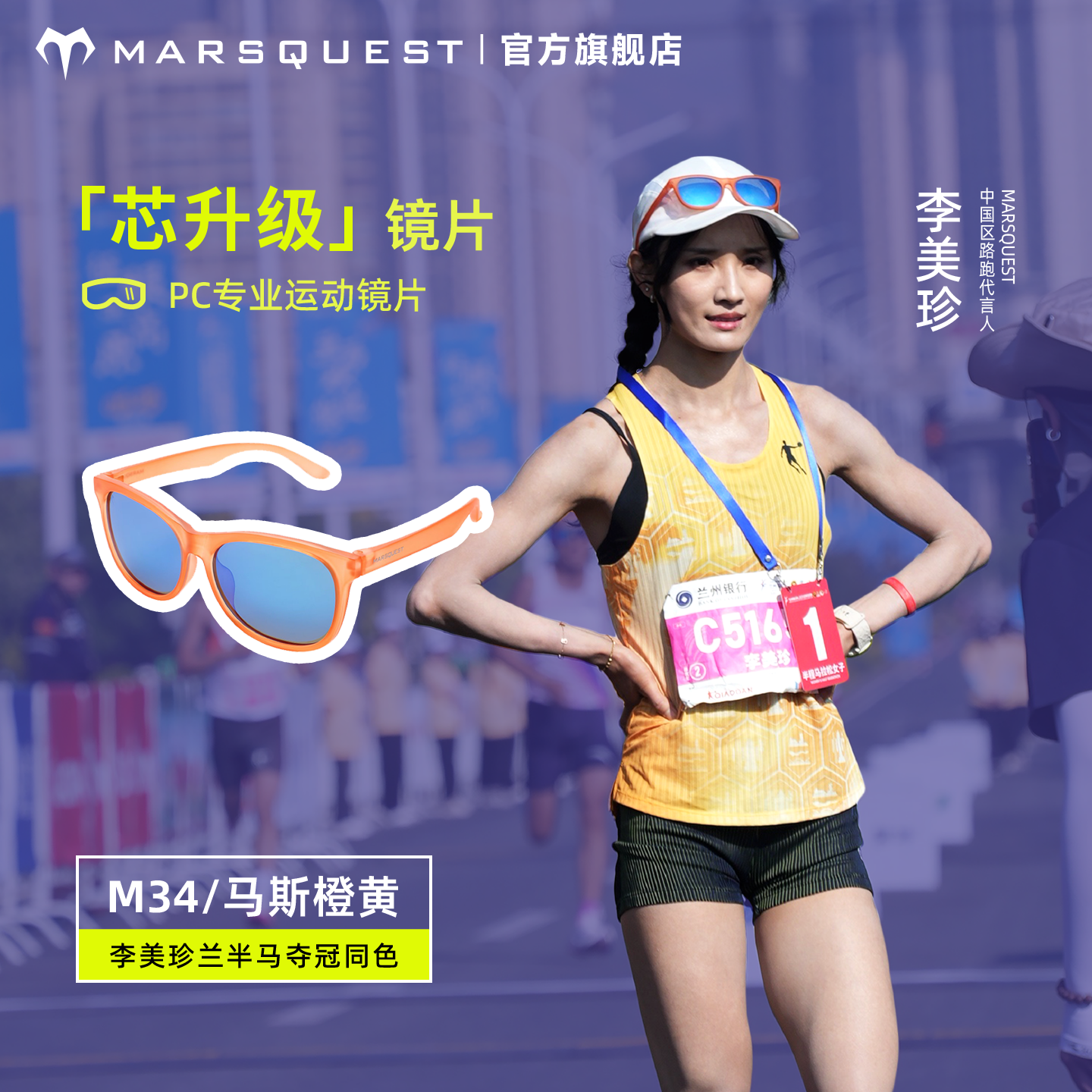 【李美珍同款】Marsquest加拿大马拉松专业跑步眼镜 偏光运动墨镜