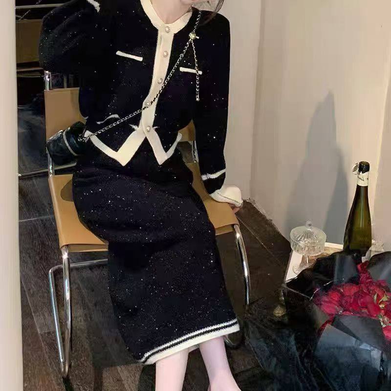 重磅推荐!小香风满天星羊毛外套半身裙两件套4570