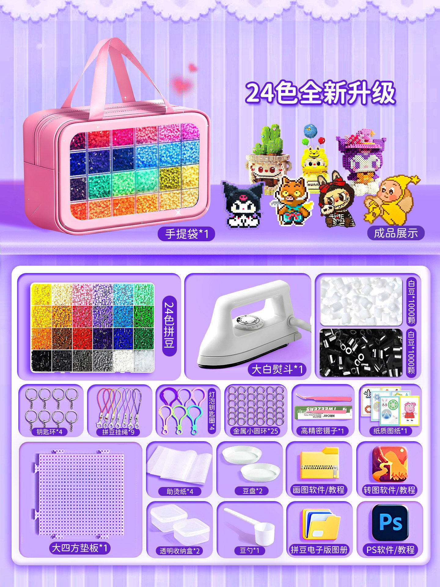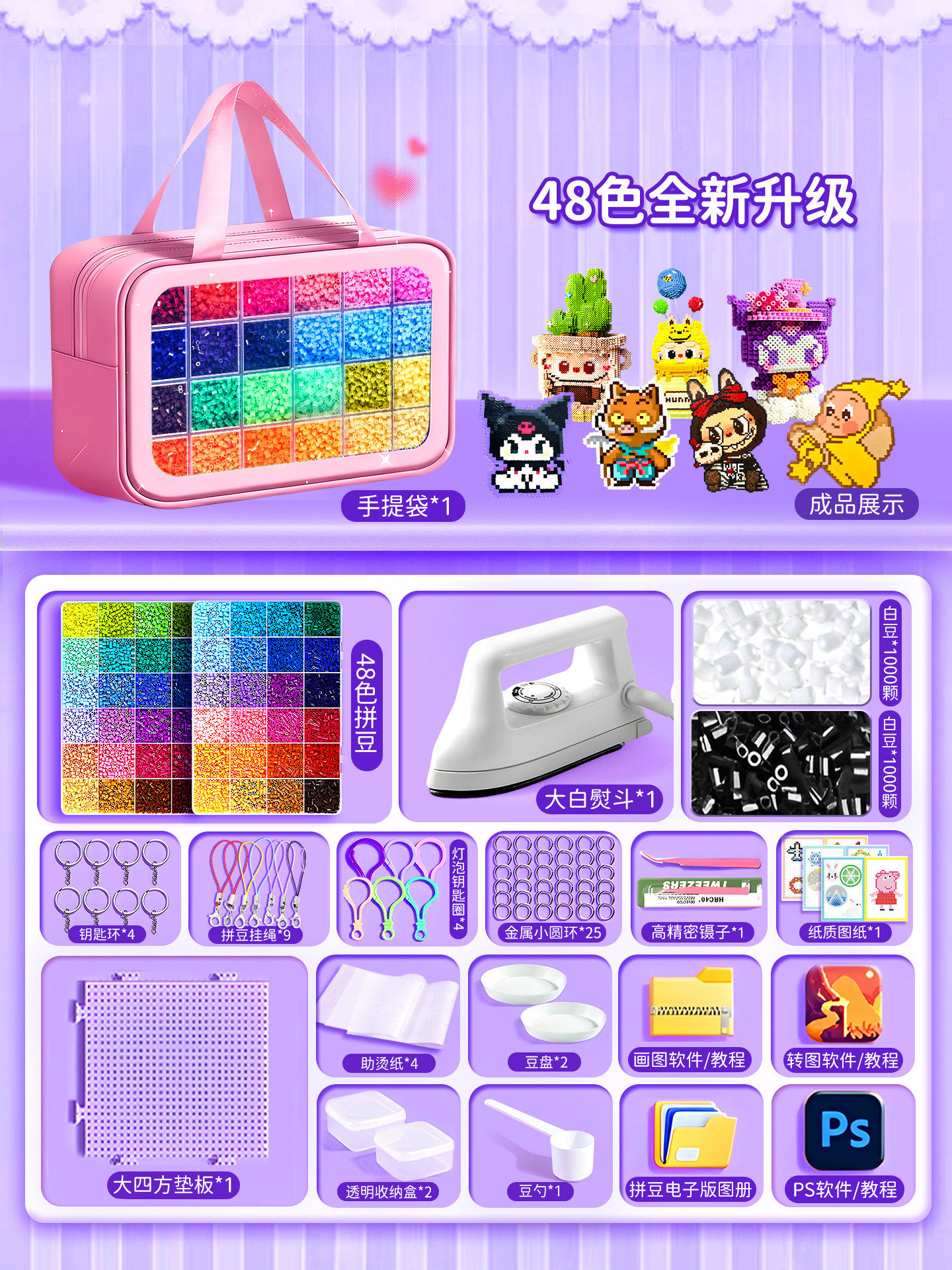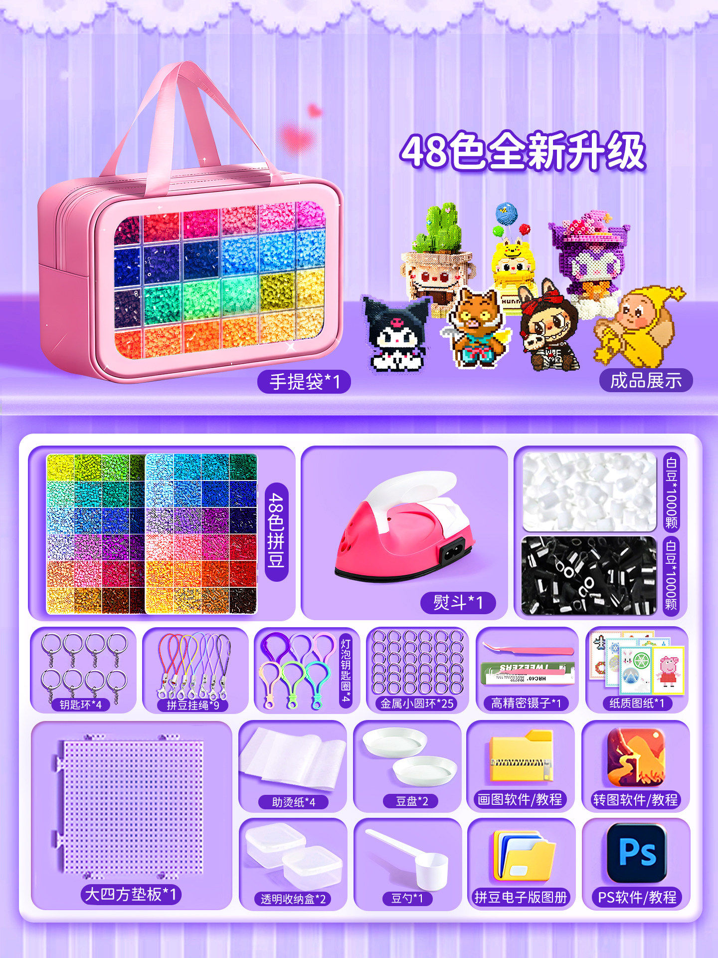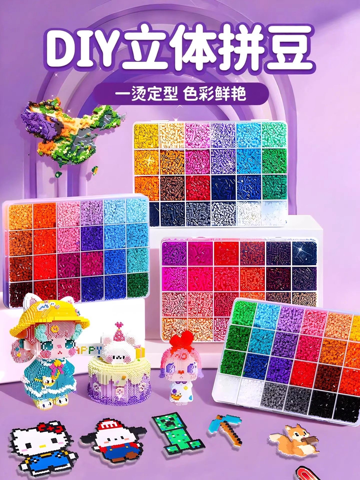 爆款拼豆手工diy材料包全套立体融合豆工具套装补充包送专业熨斗8