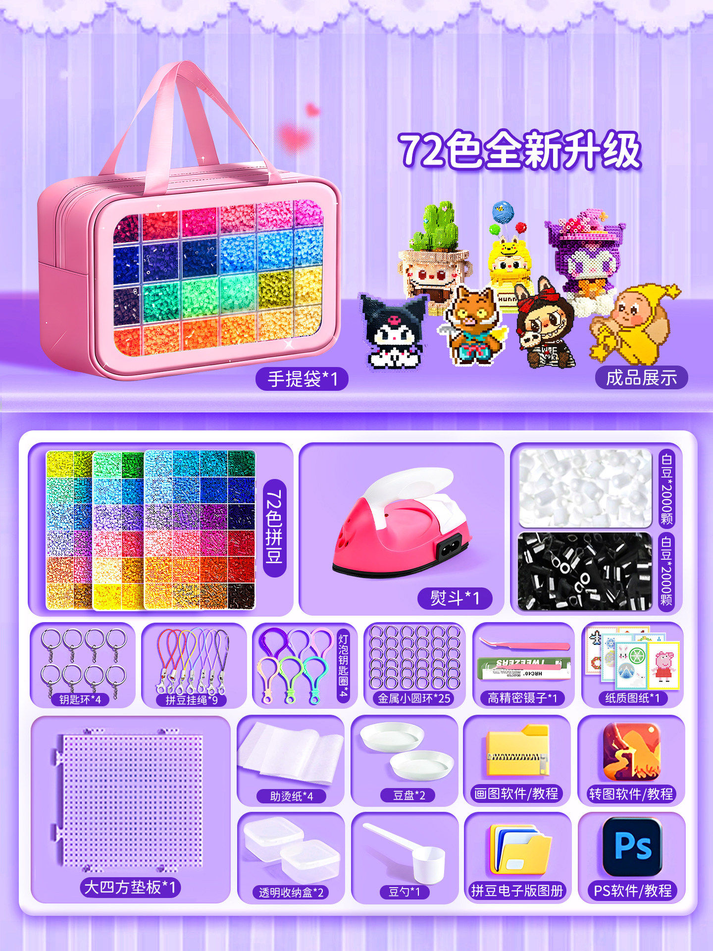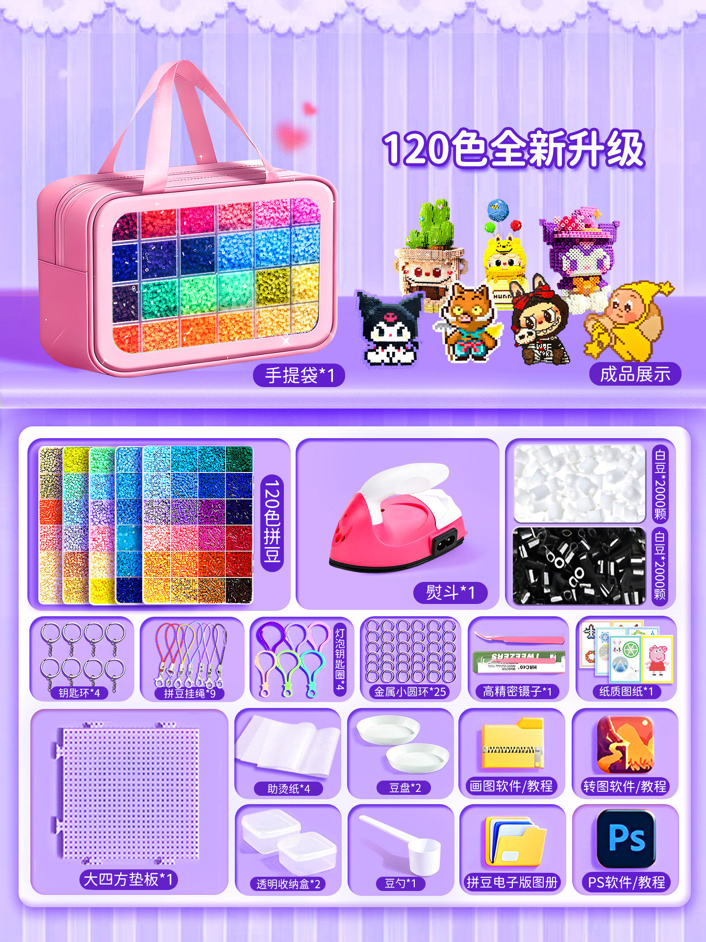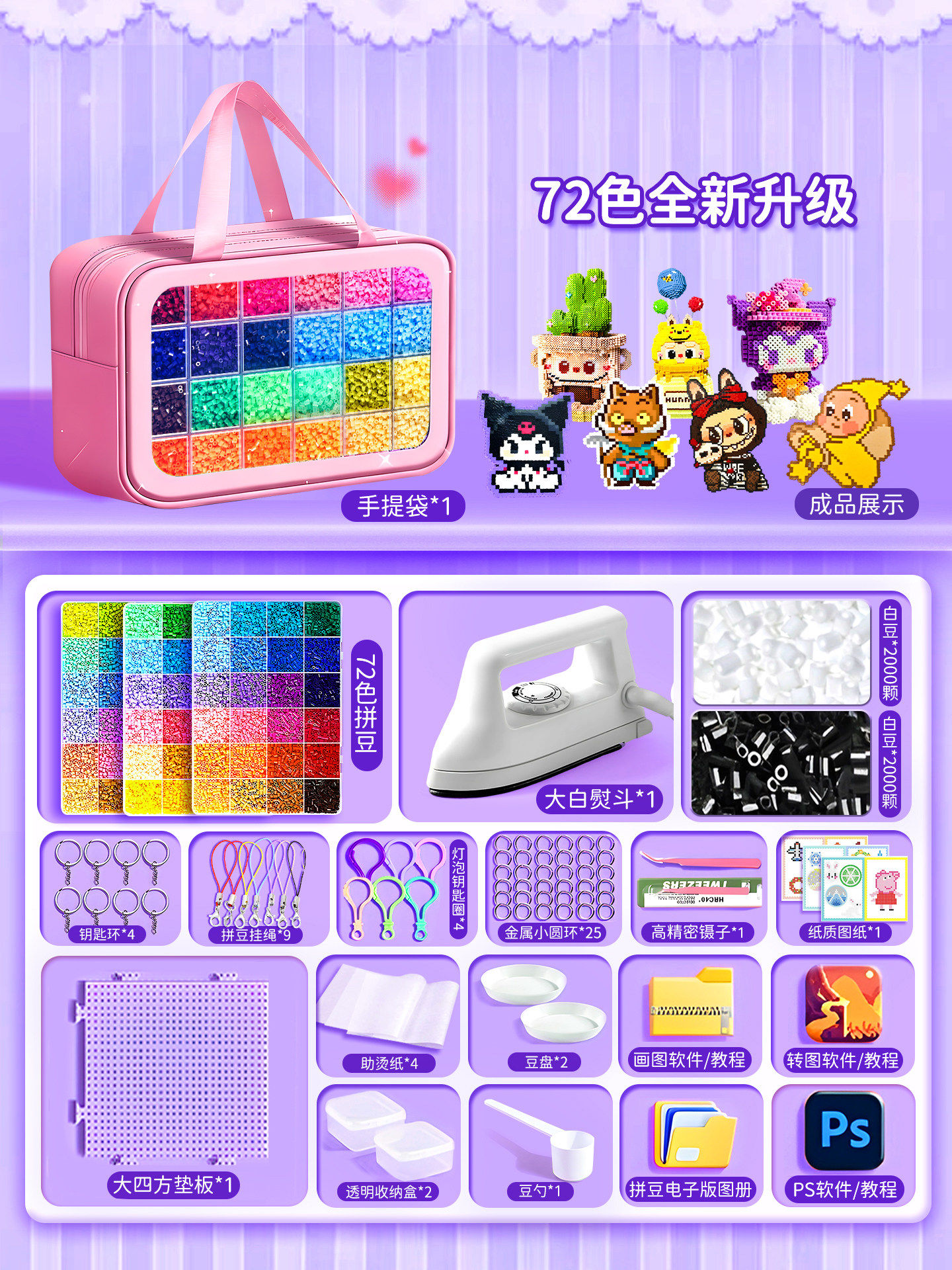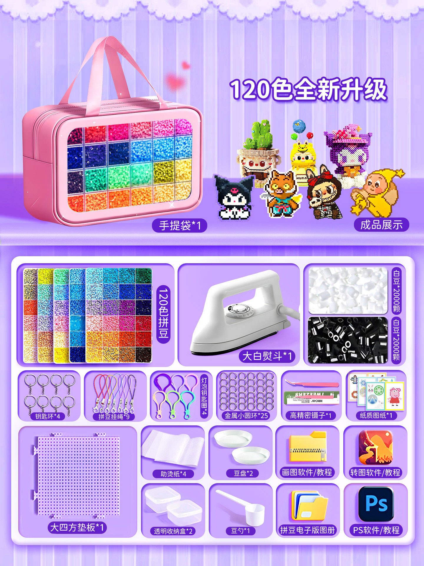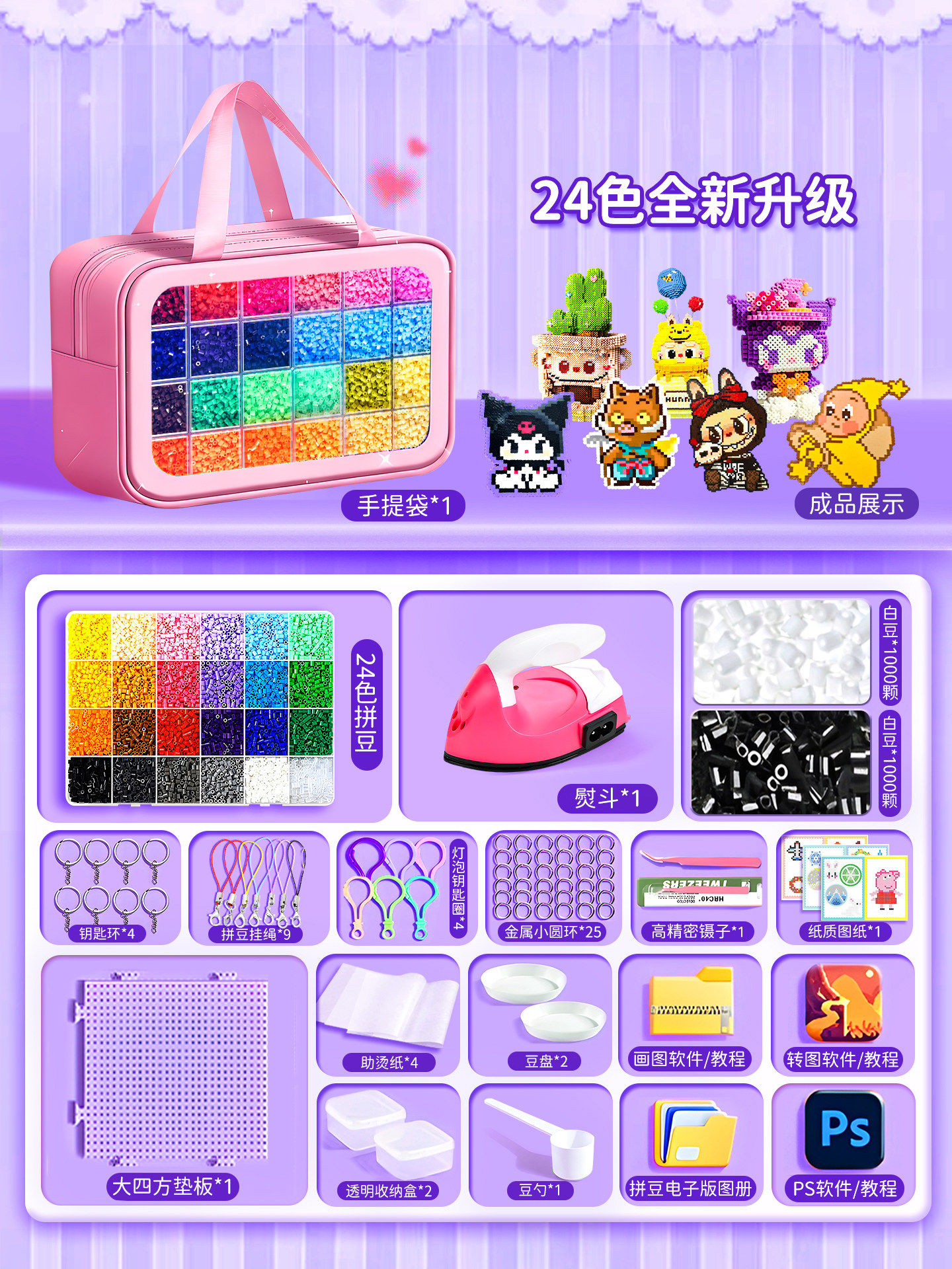 爆款拼豆手工diy材料包全套立体融合豆工具套装补充包送专业熨斗8