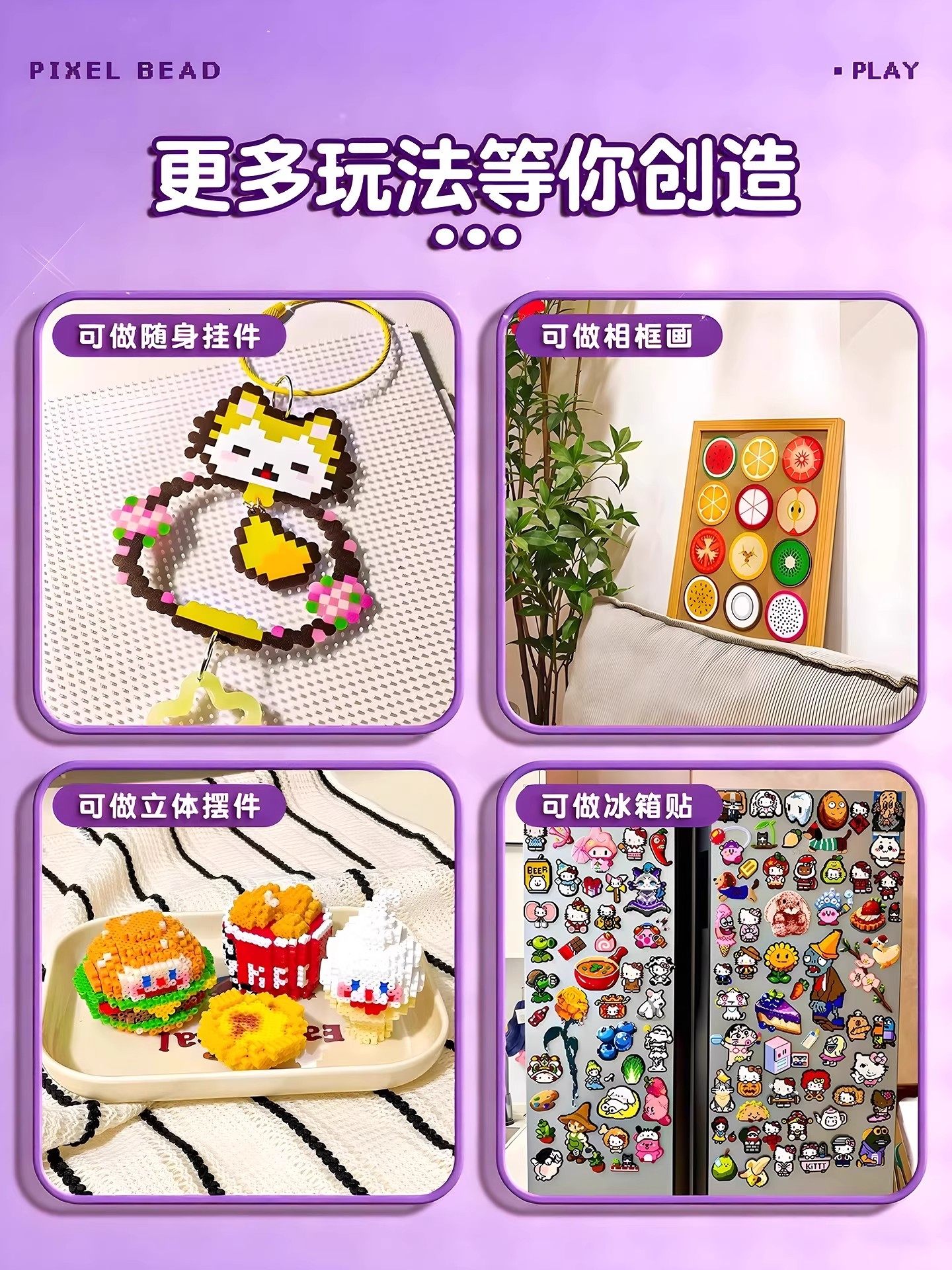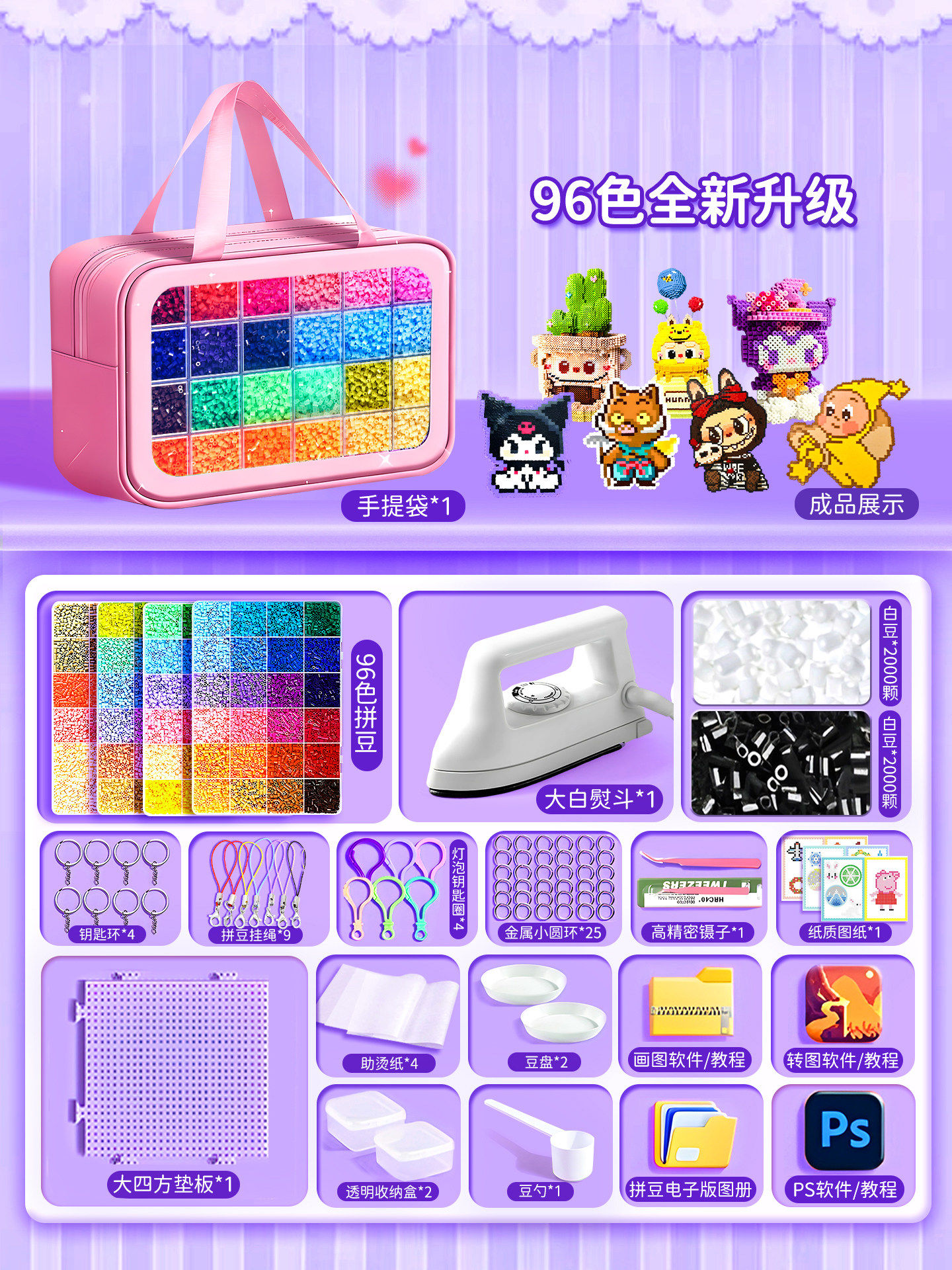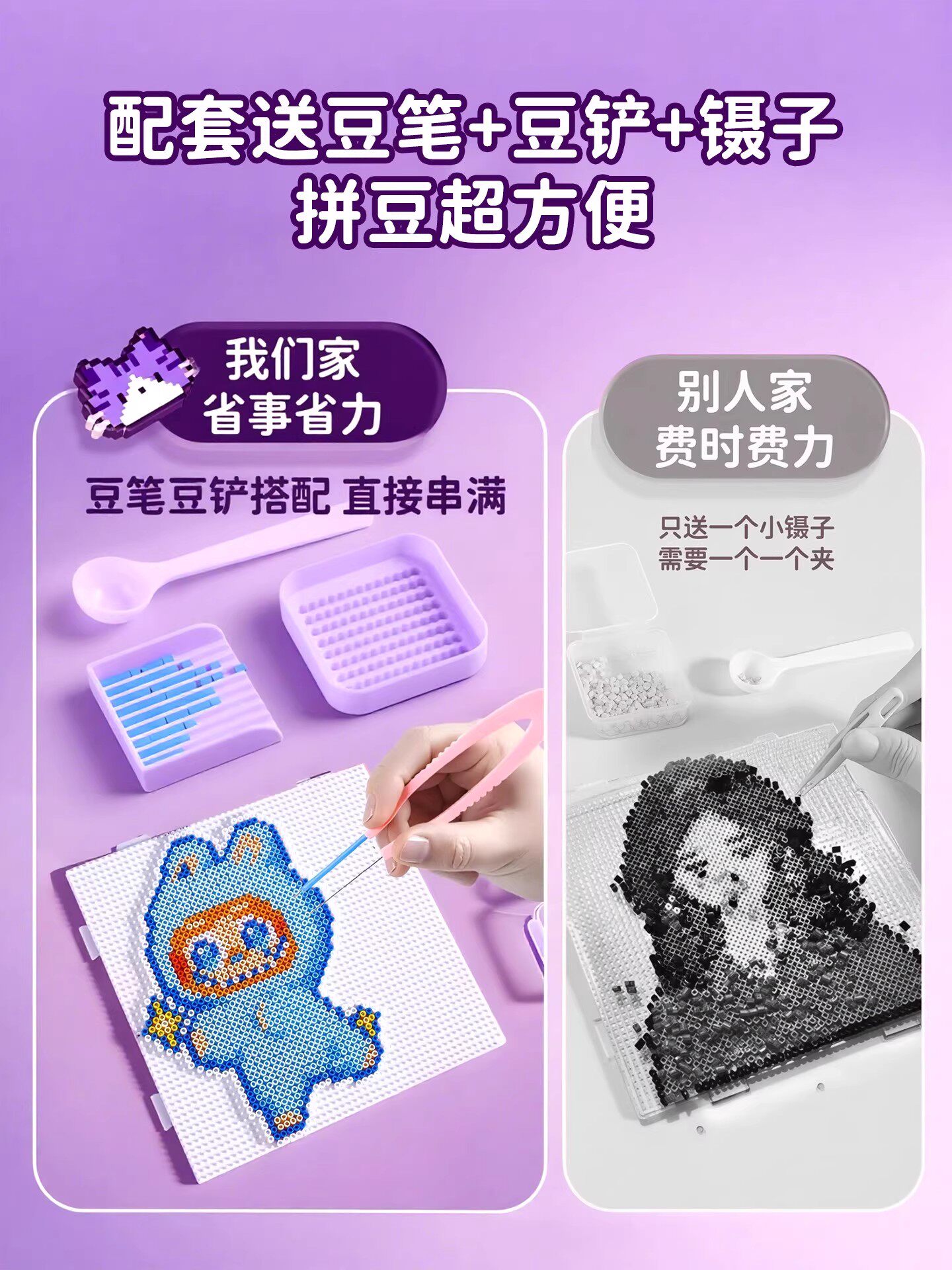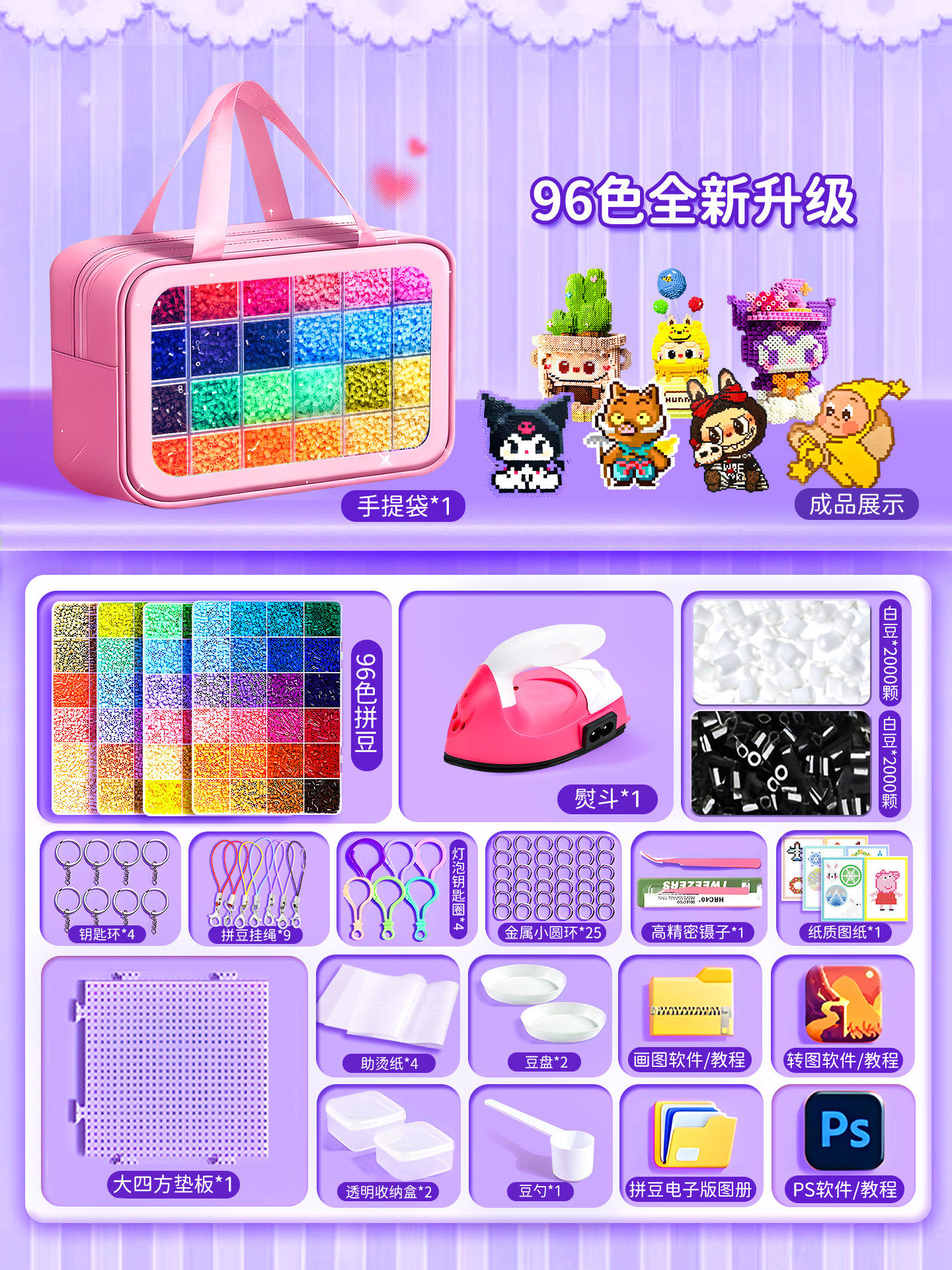 爆款拼豆手工diy材料包全套立体融合豆工具套装补充包送专业熨斗8
