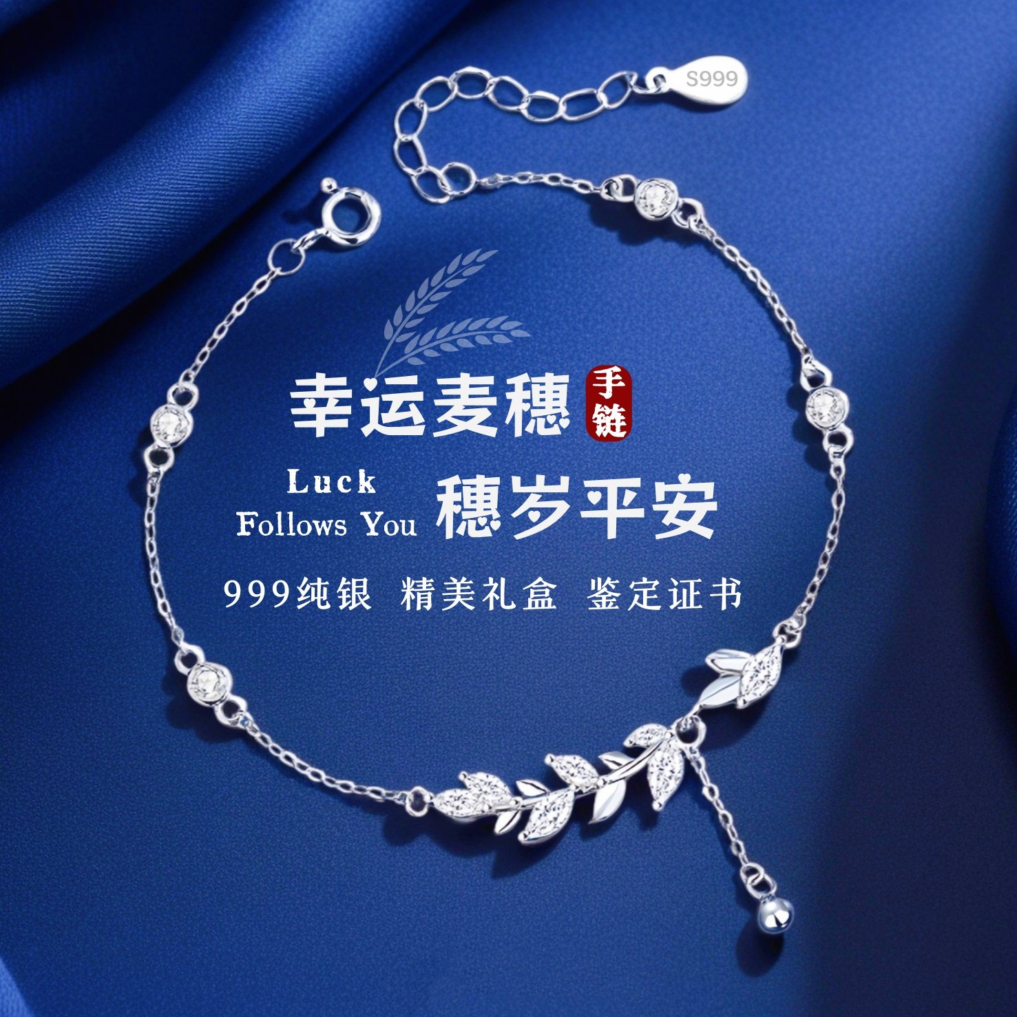 幸运麦穗999纯银手链生日礼物女生闺蜜实用高级感送女友小众精致