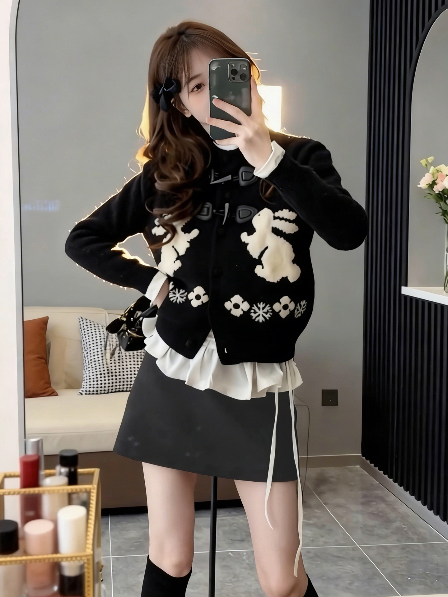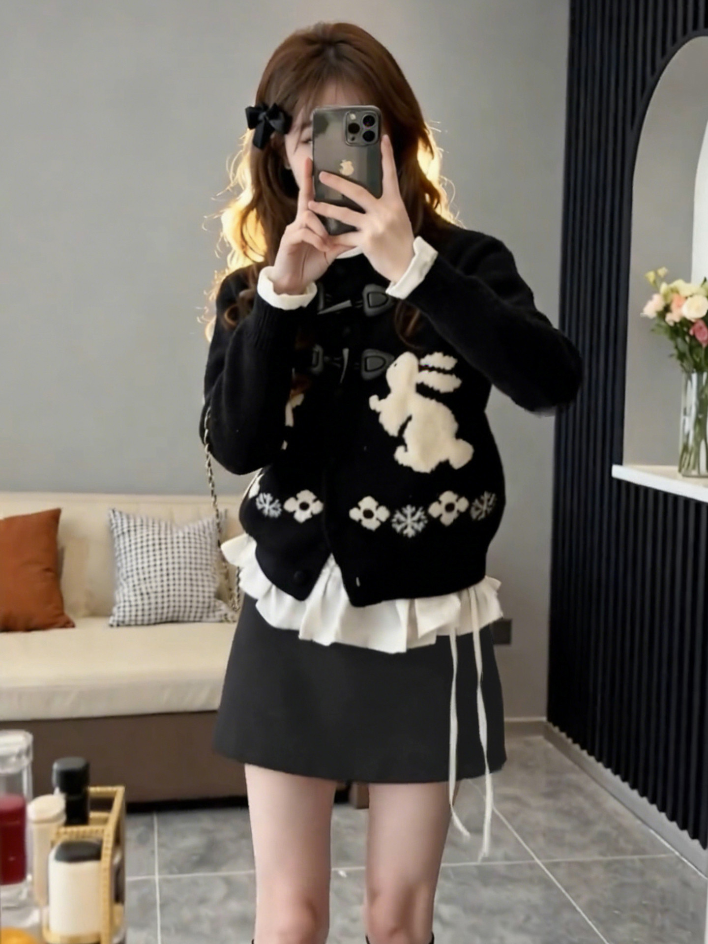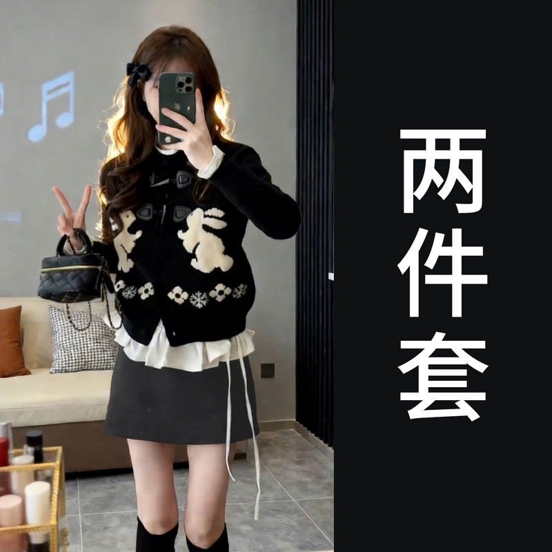 2026新款巨好看的冬装黑色针织连衣裙女冬季韩式搭配一整套装短裙