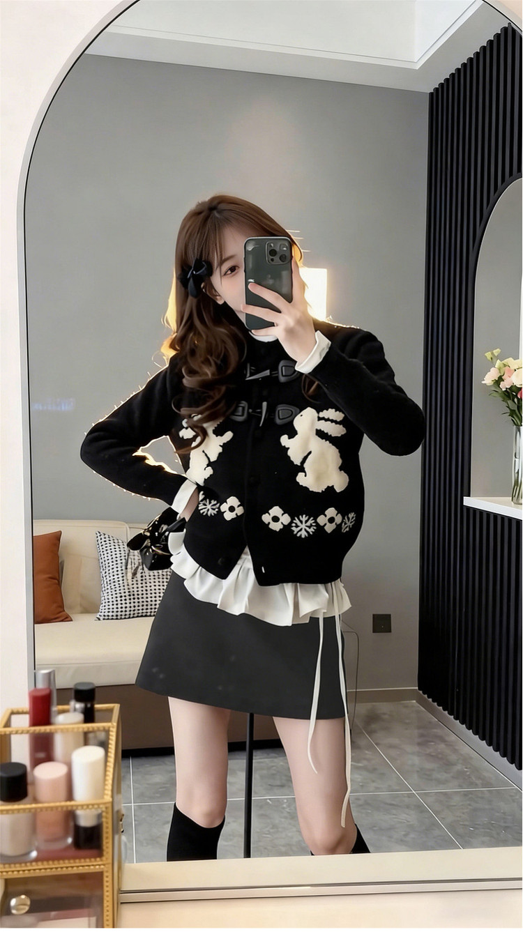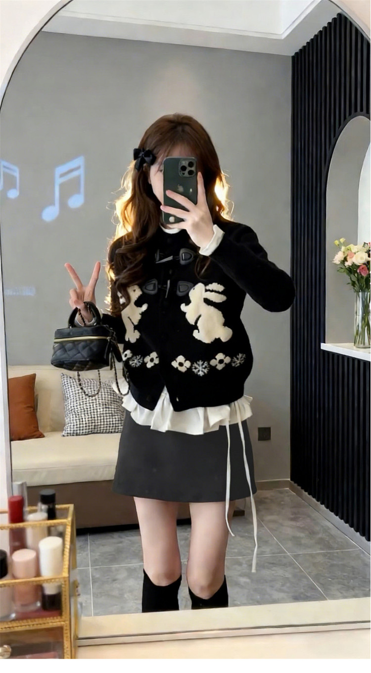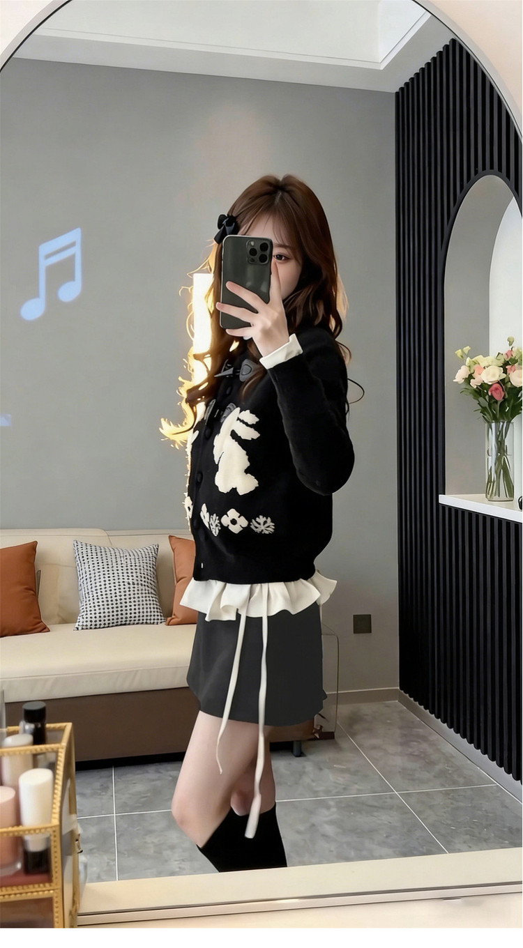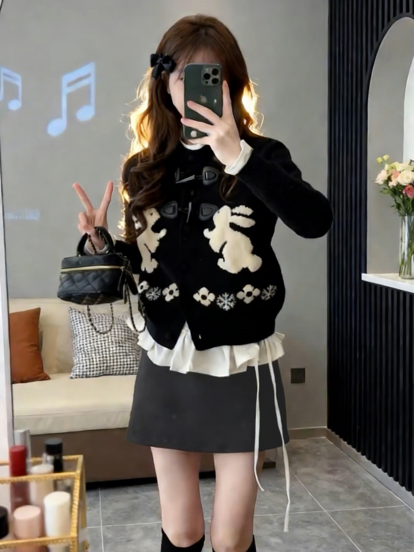 2026新款巨好看的冬装黑色针织连衣裙女冬季韩式搭配一整套装短裙