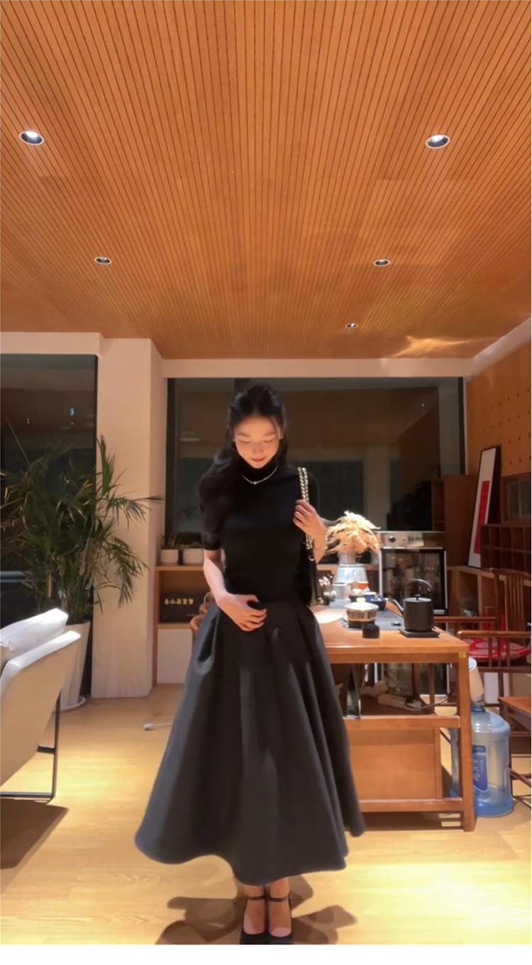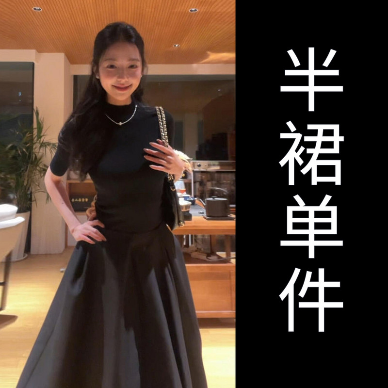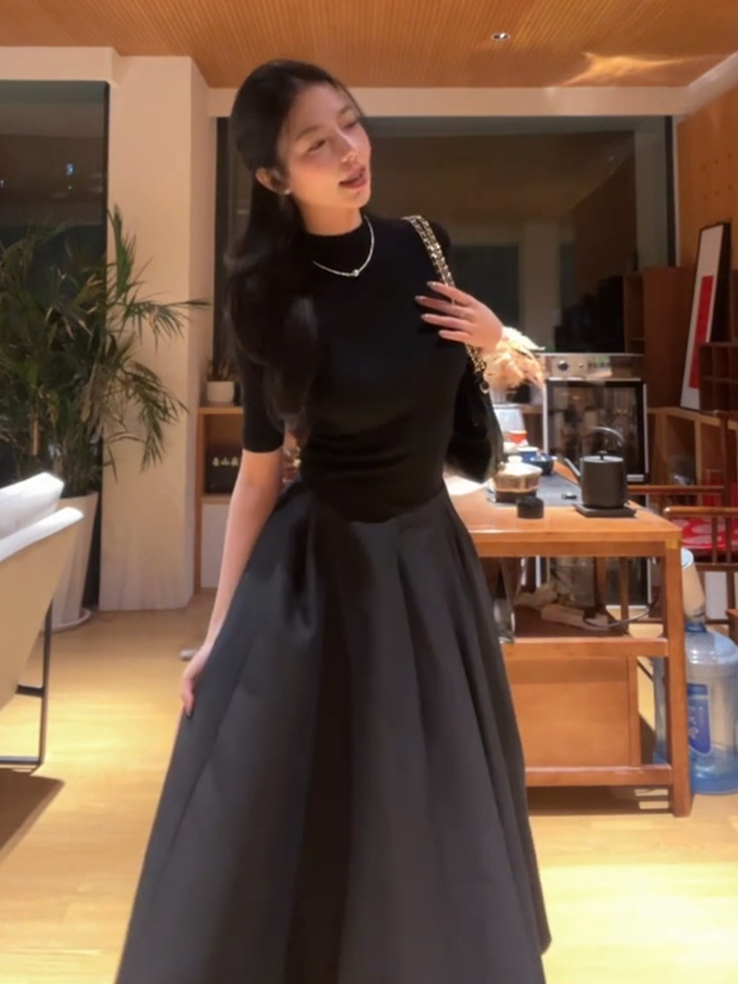 法式复古赫本风黑色连衣裙子女2025新款秋冬季高级感气质内搭长裙