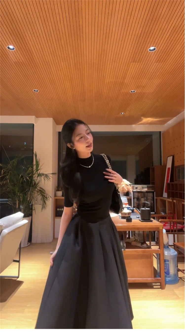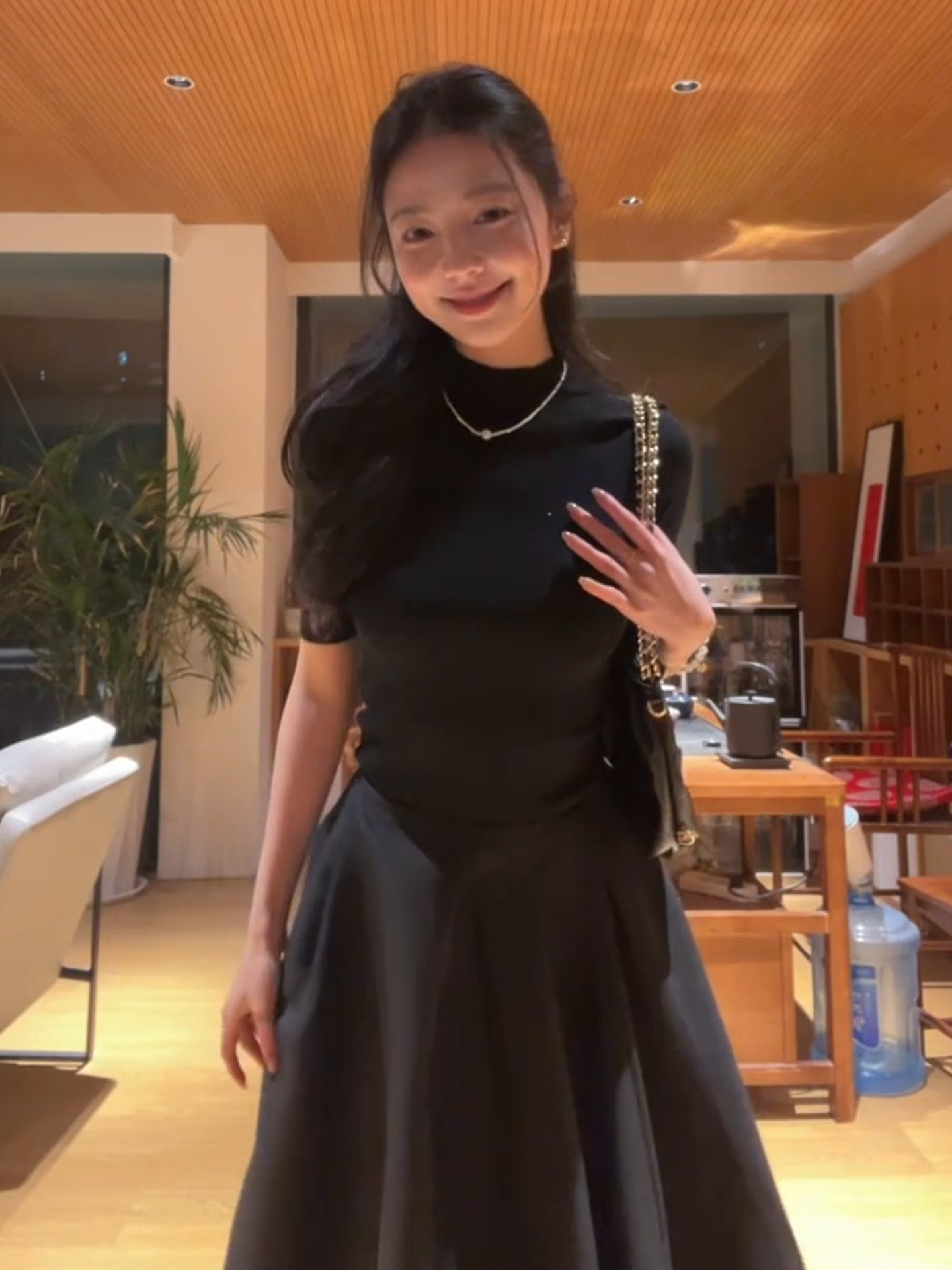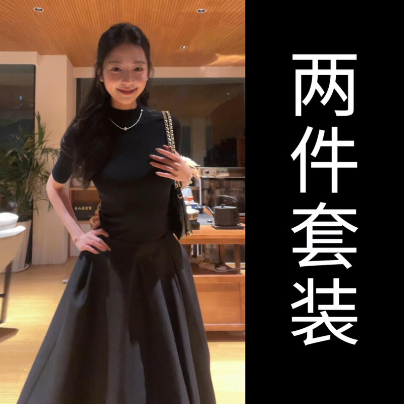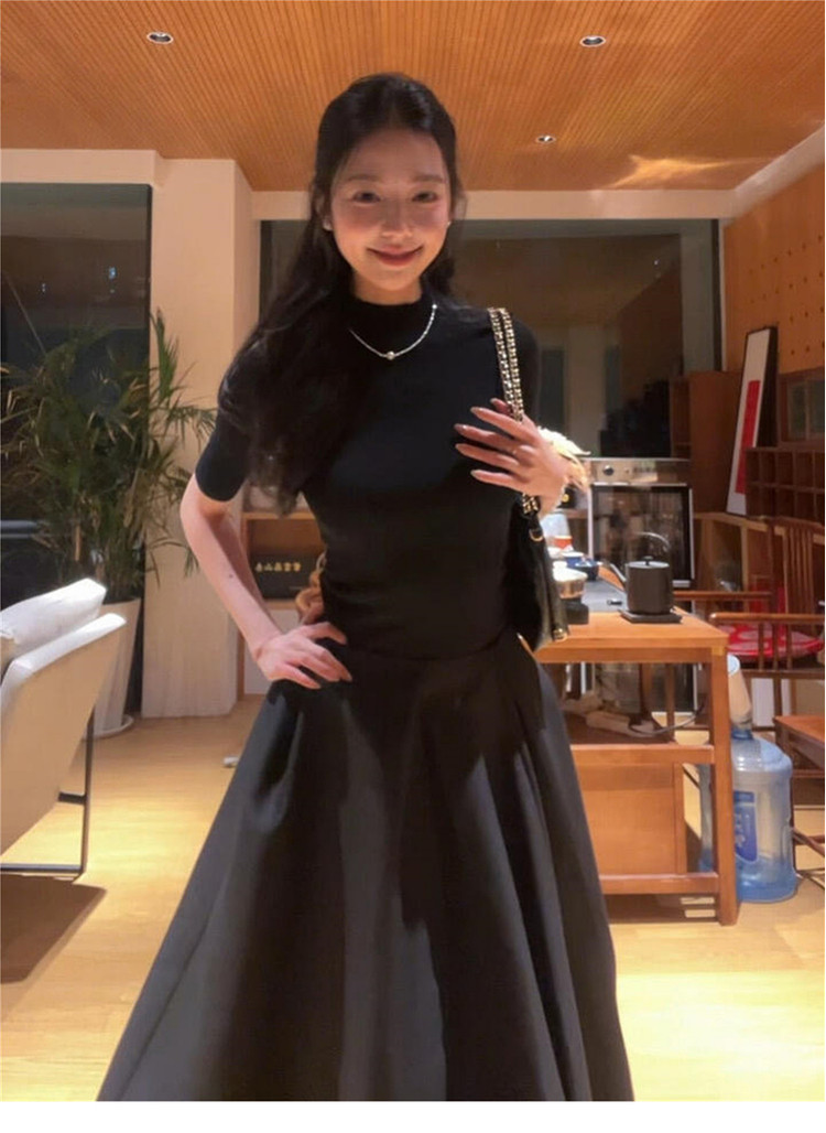 法式复古赫本风黑色连衣裙子女2025新款秋冬季高级感气质内搭长裙