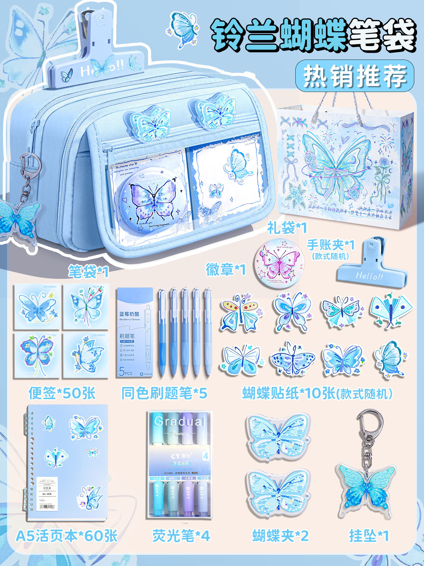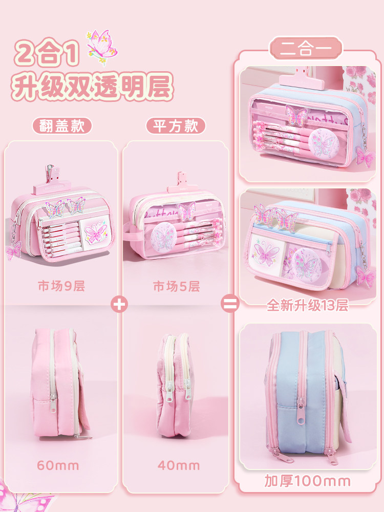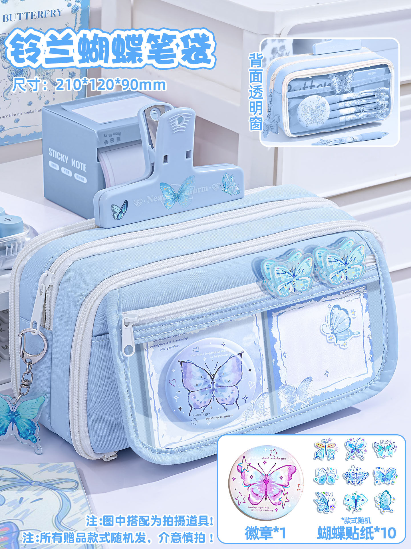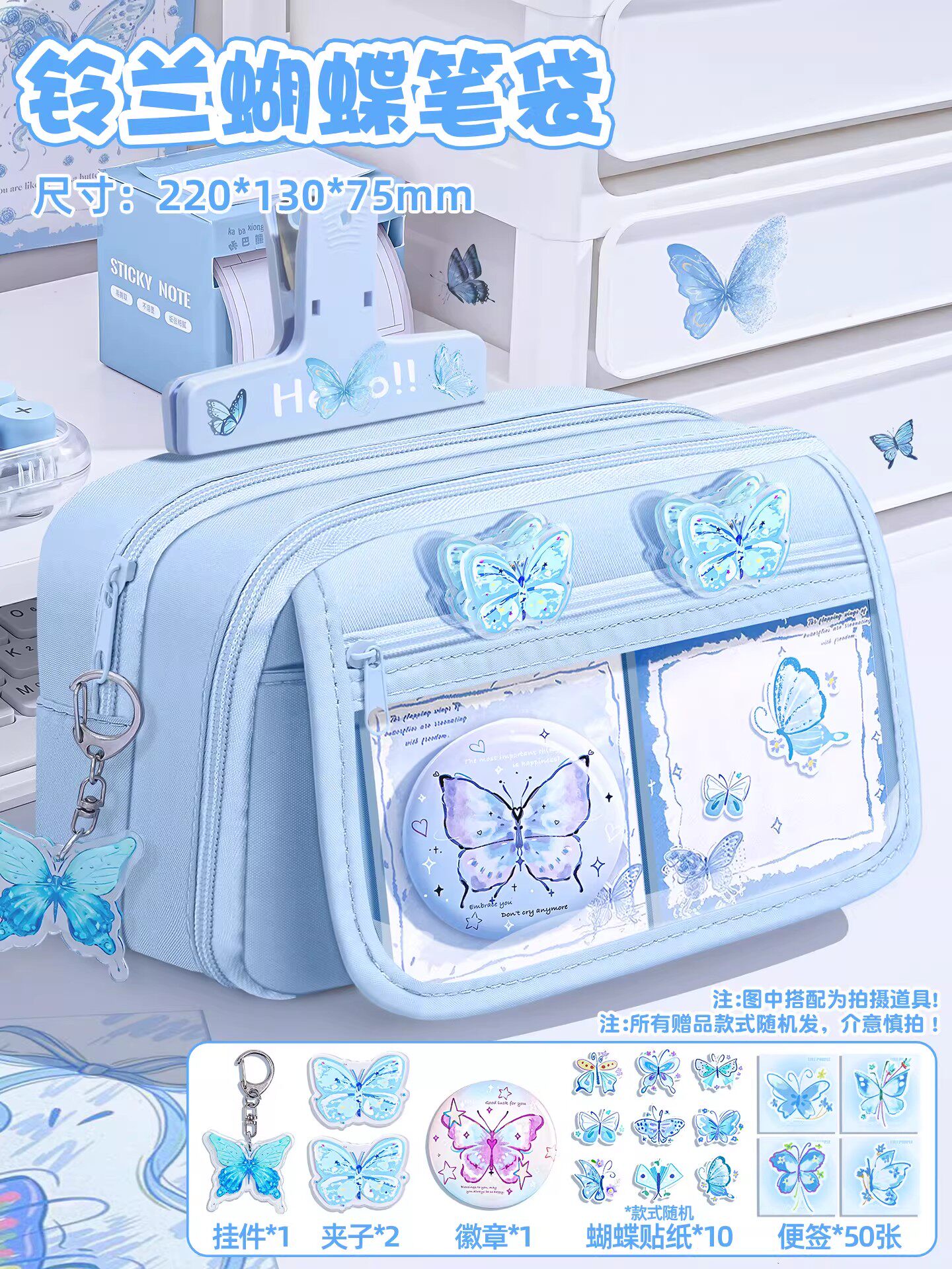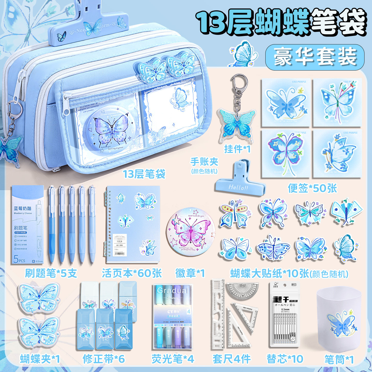 铃兰蝴蝶一套配齐~13层大容量笔袋女生2026新款超火高颜值ins风文具盒女孩款小学生透明铅笔盒2025初中不撞款
