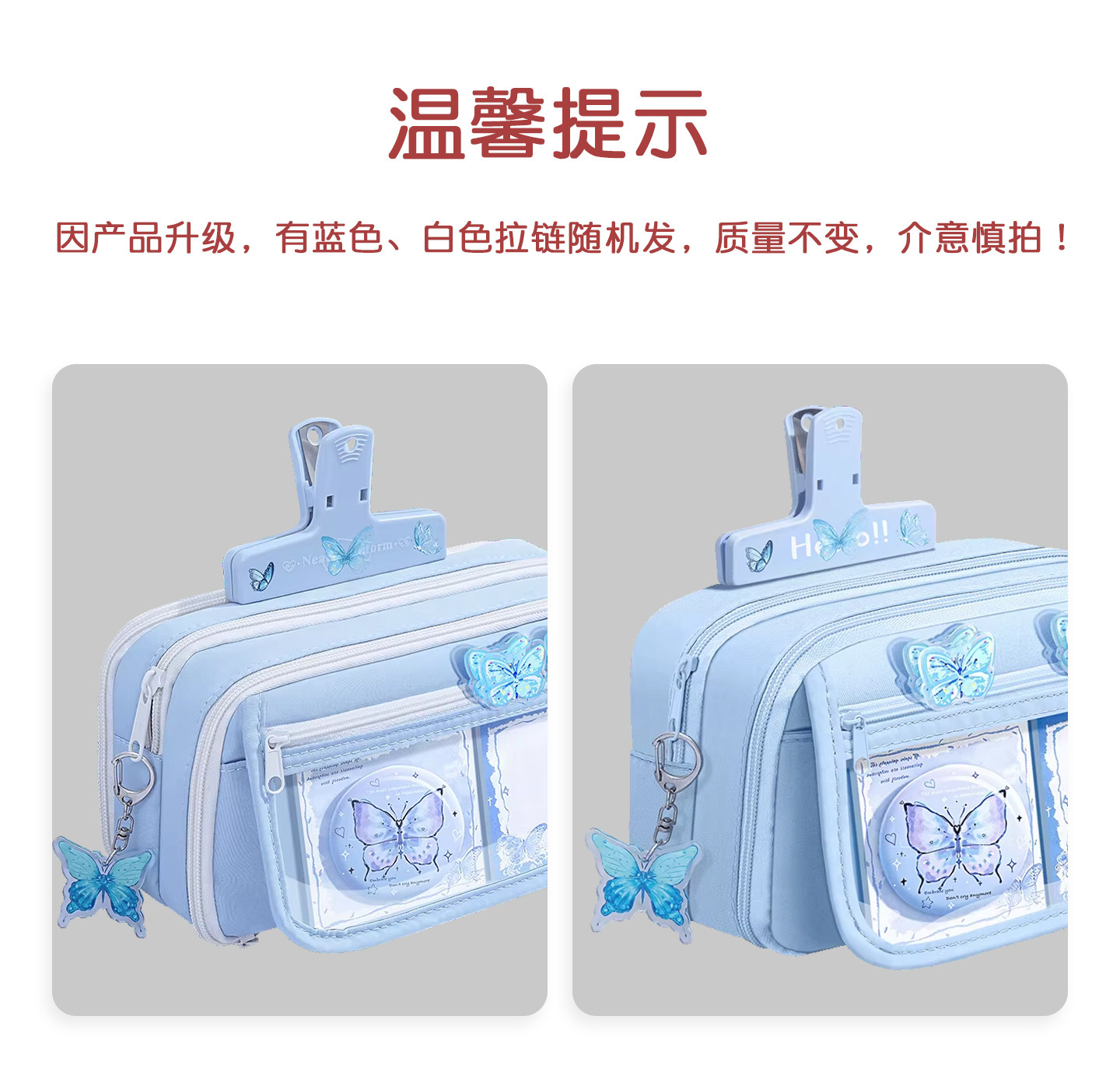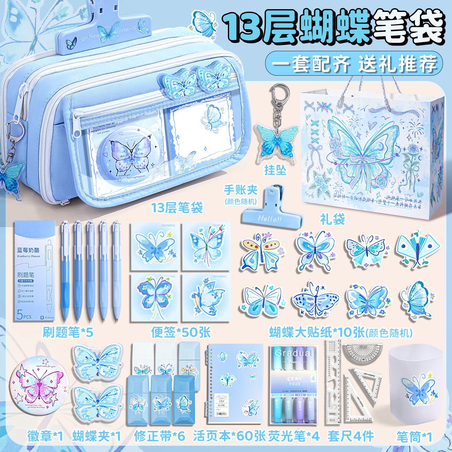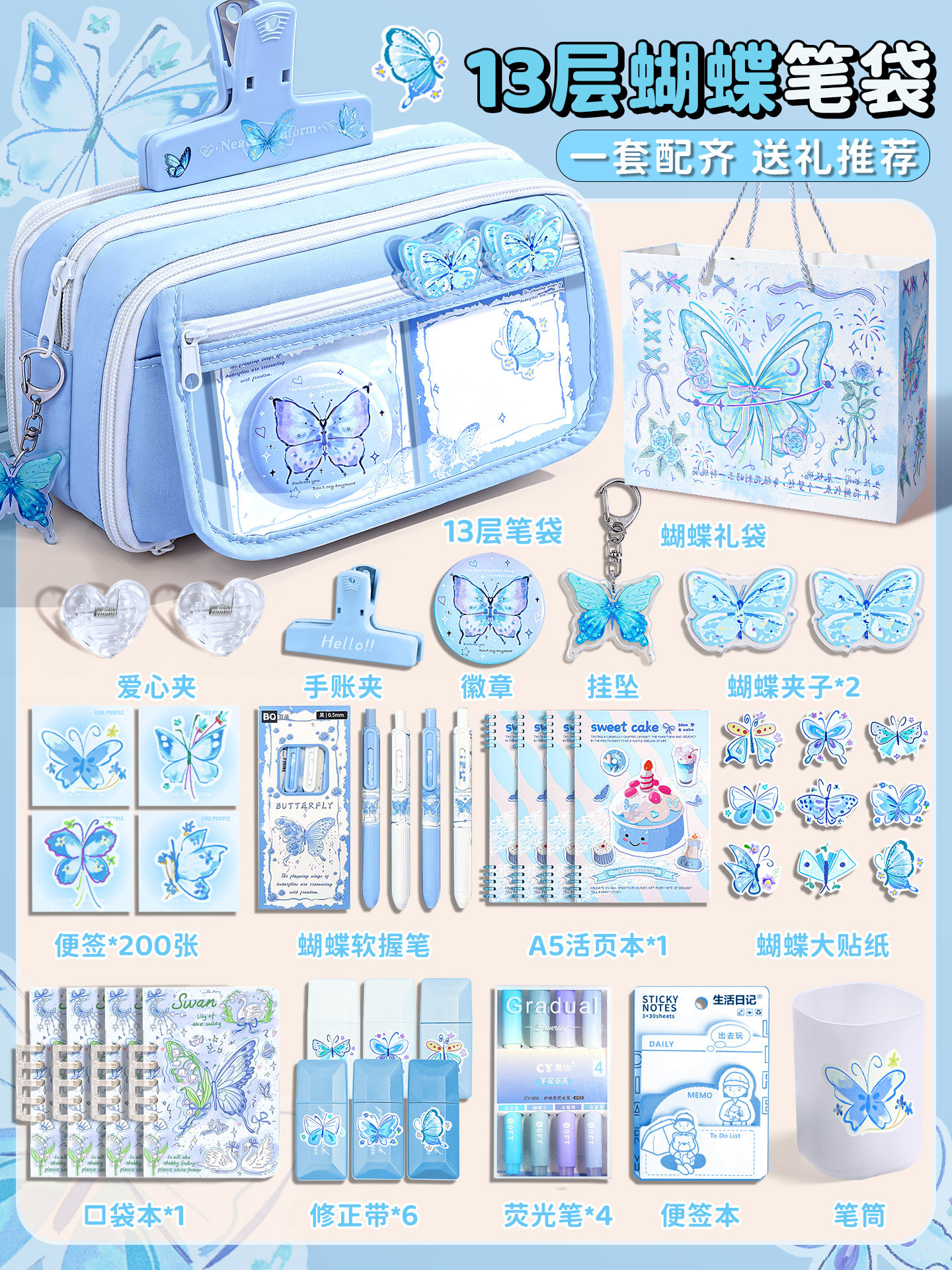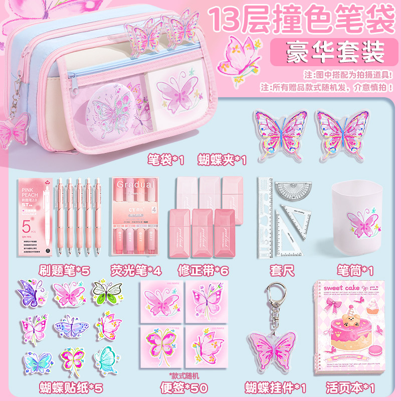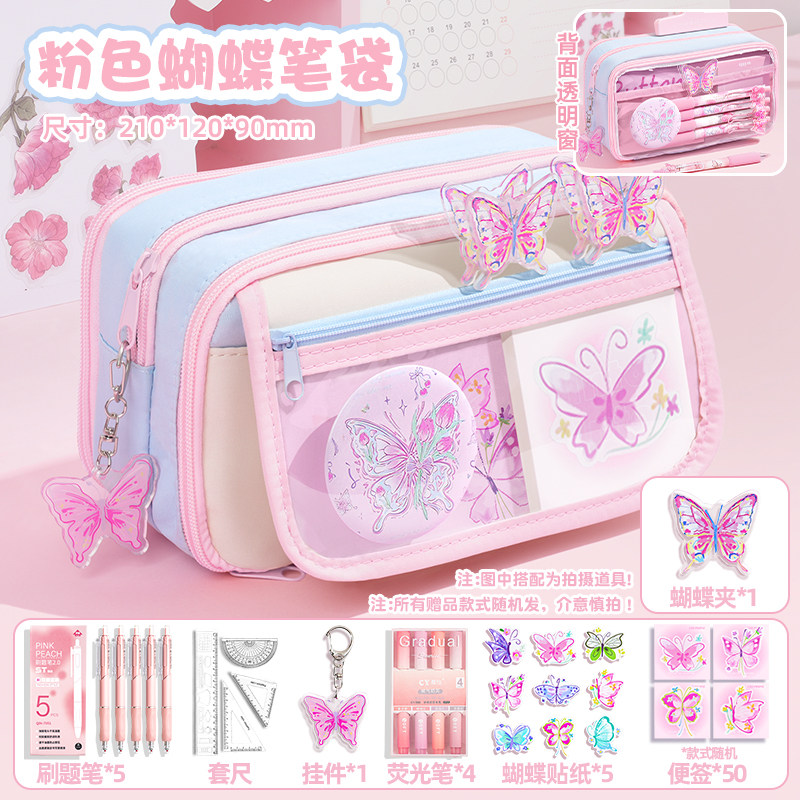 铃兰蝴蝶一套配齐~13层大容量笔袋女生2026新款超火高颜值ins风文具盒女孩款小学生透明铅笔盒2025初中不撞款