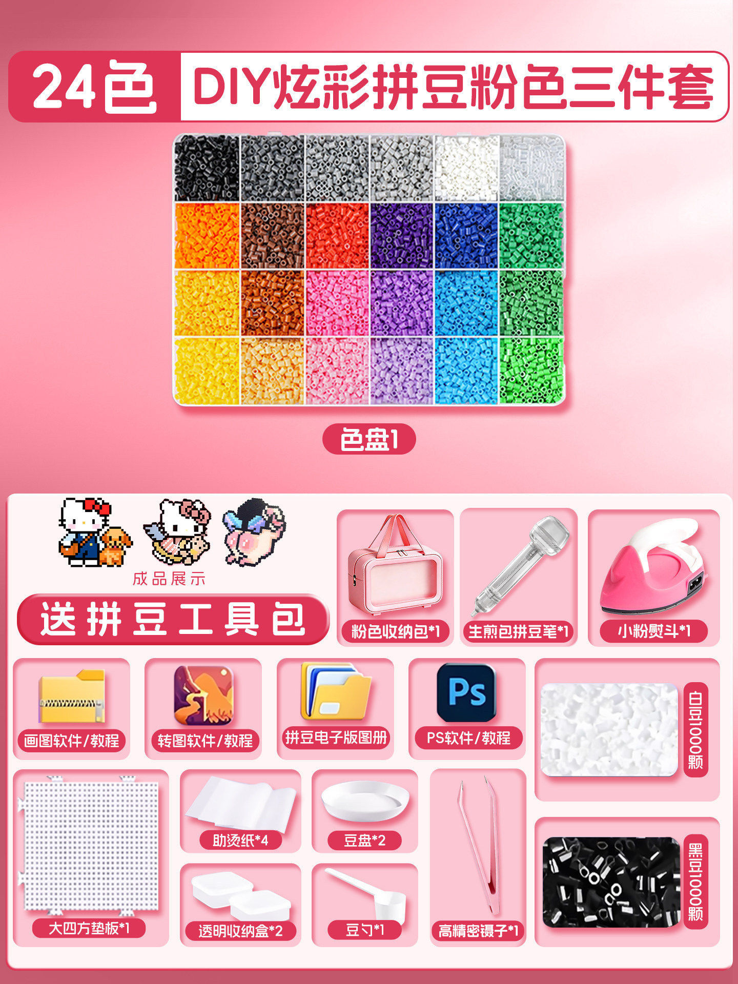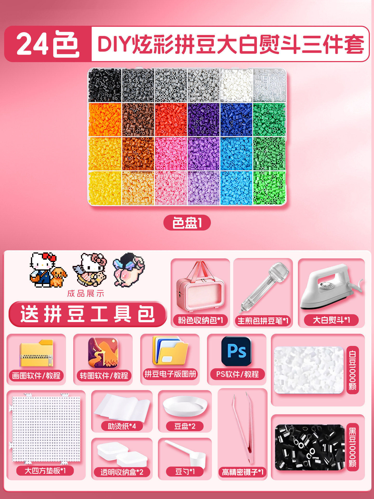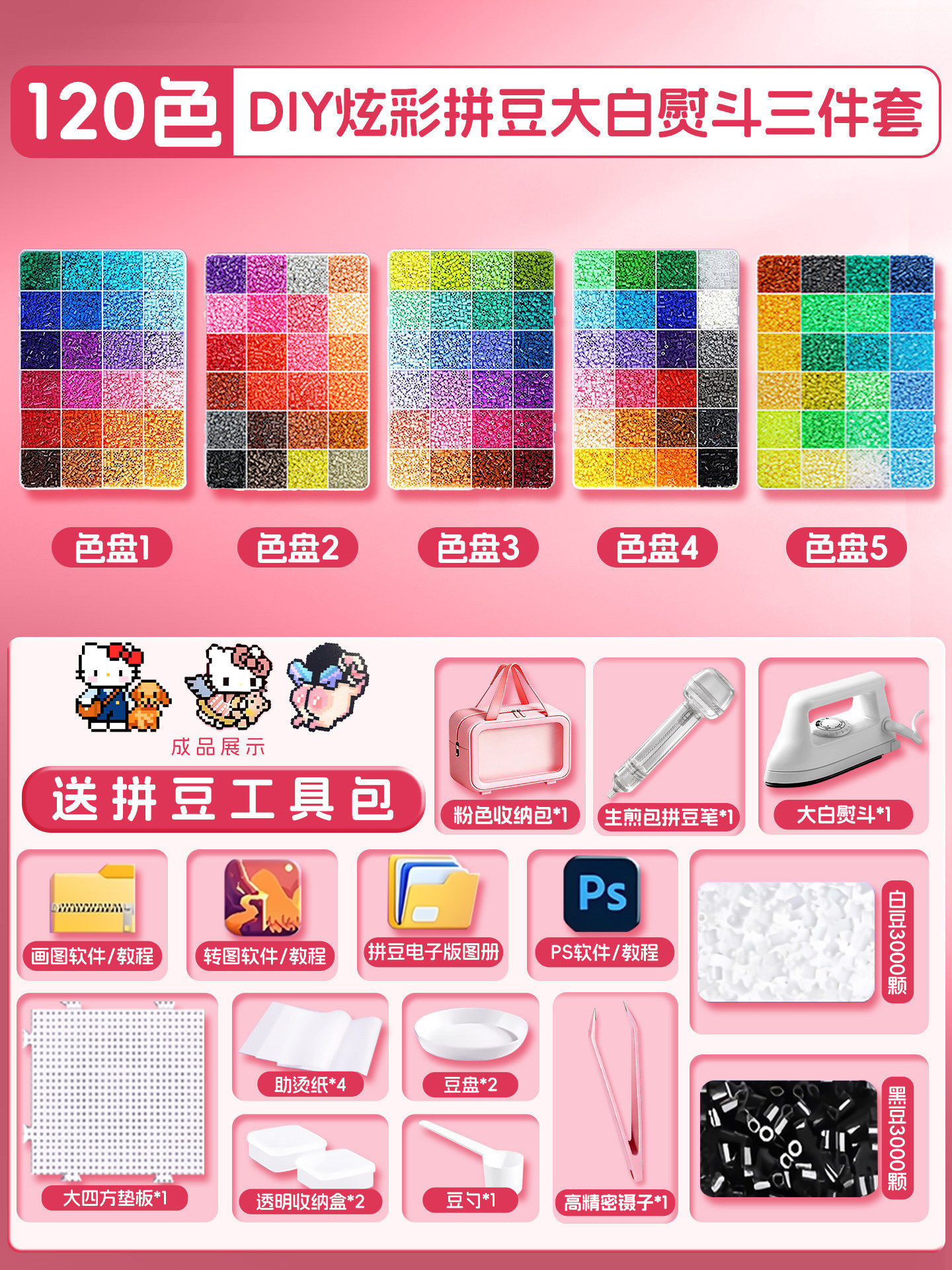 拼豆豆手工diy材料包拼斗全套装立体融合专用熨斗工具儿童玩具女3