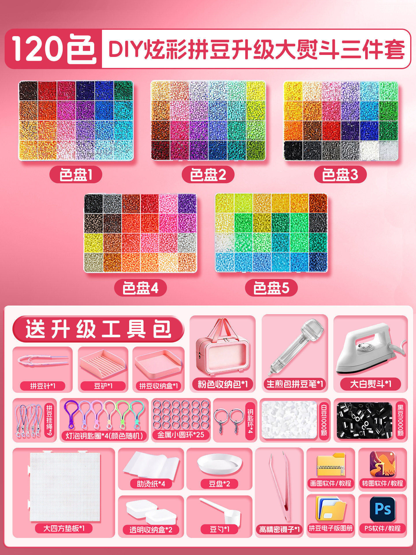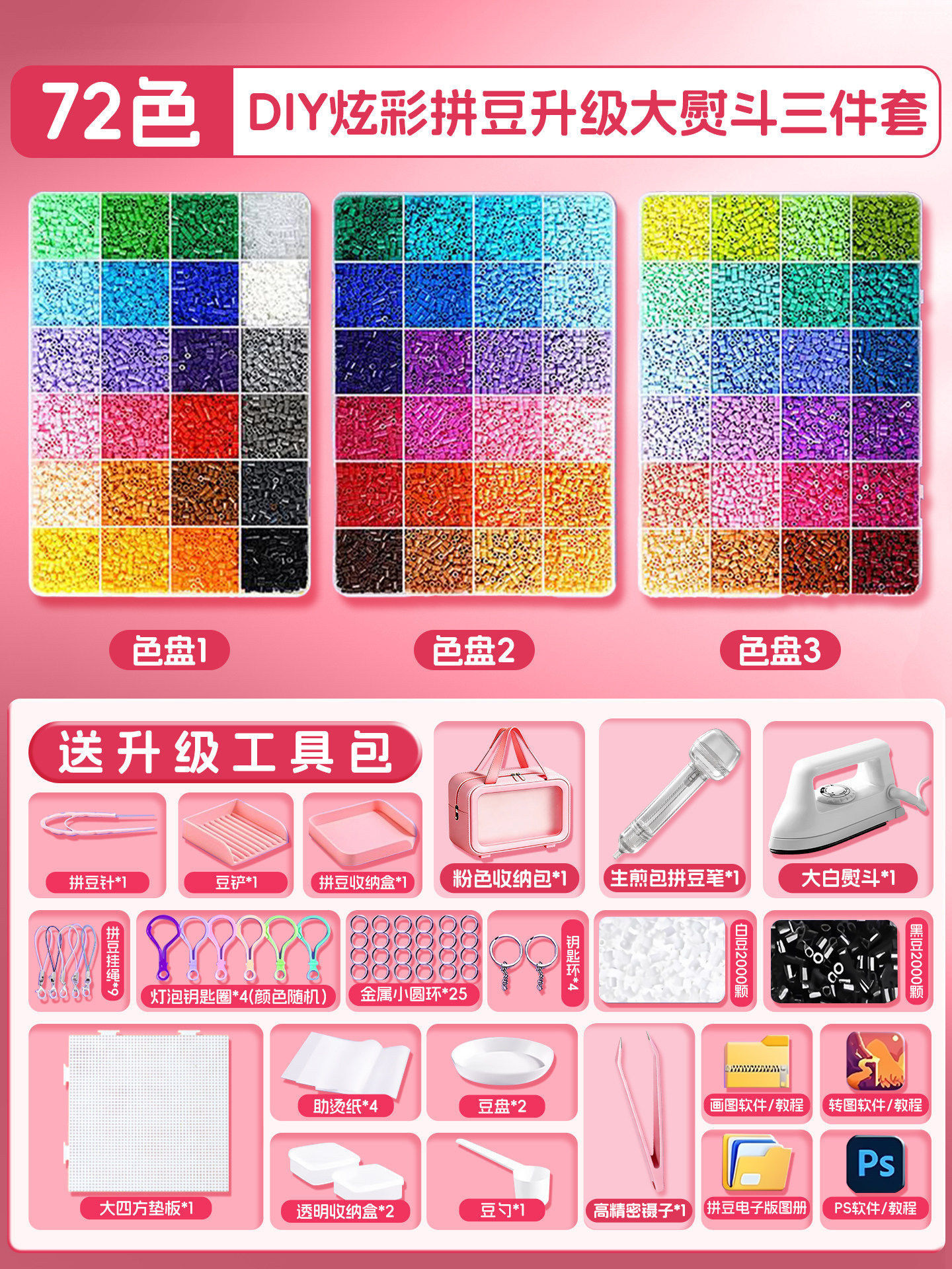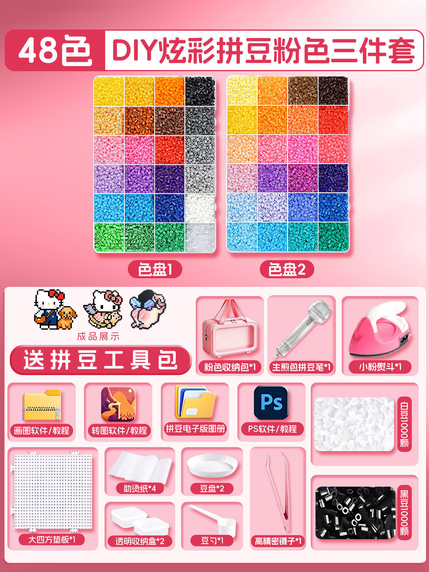 拼豆豆手工diy材料包拼斗全套装立体融合专用熨斗工具儿童玩具女3