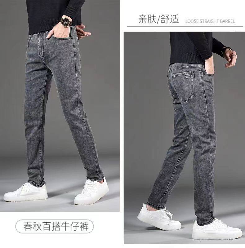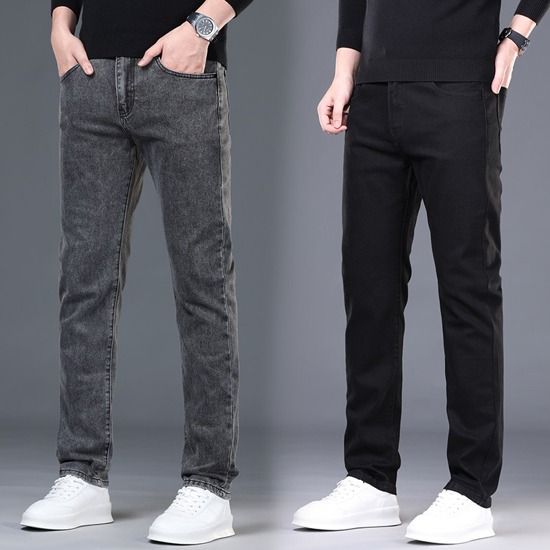 春秋季弹力黑色牛仔裤男士新款宽松休闲百搭工作男款直筒长裤子男