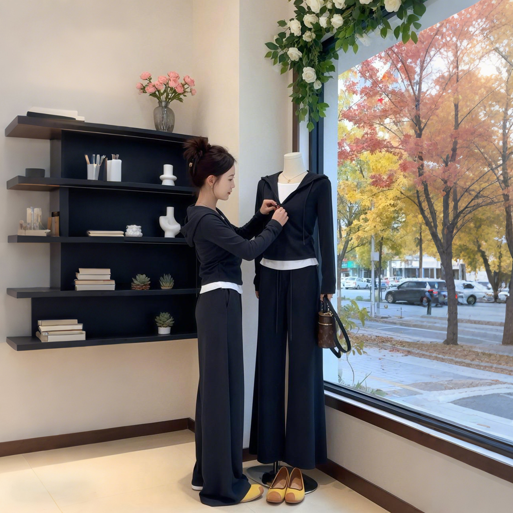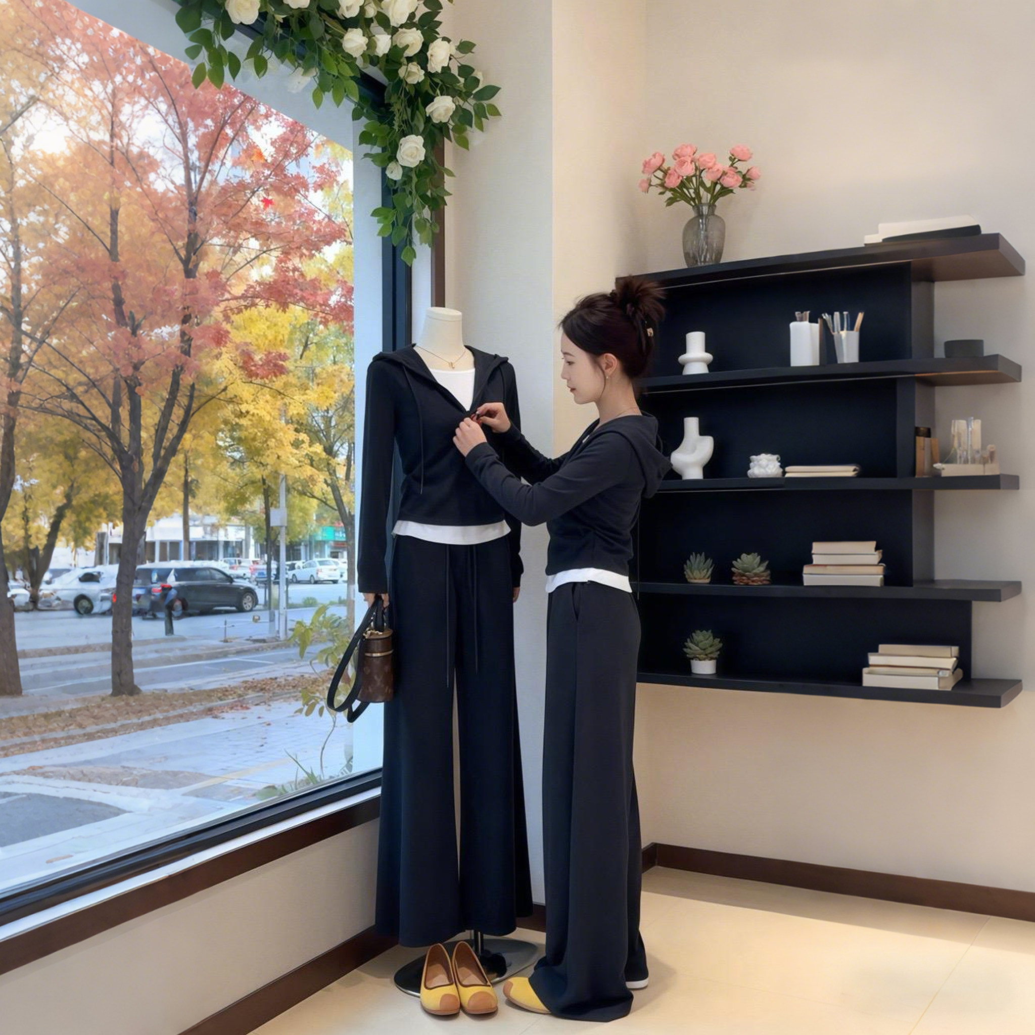 通勤运动风连帽卫衣休闲裤套装女2026春秋季时尚洋气修身两件套潮