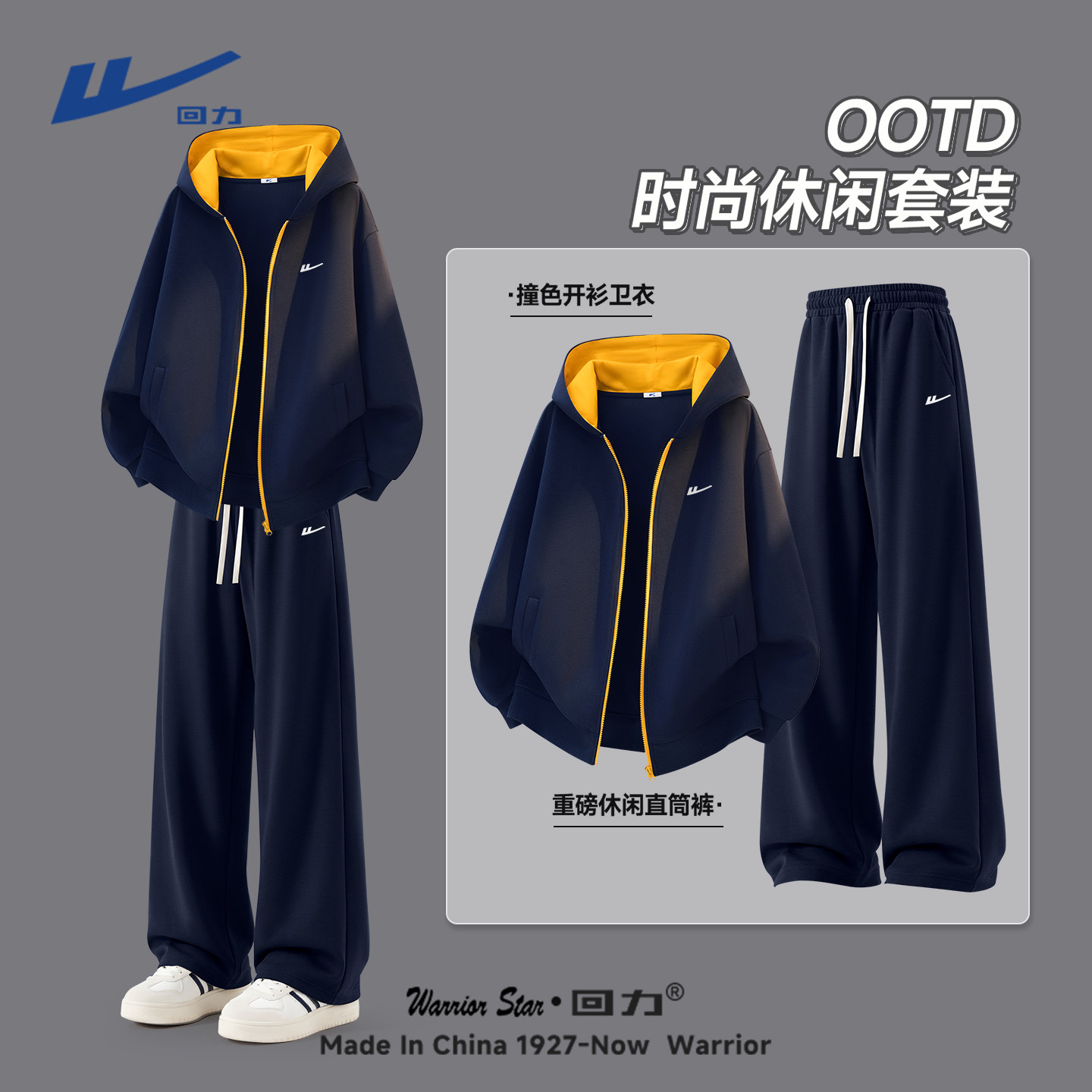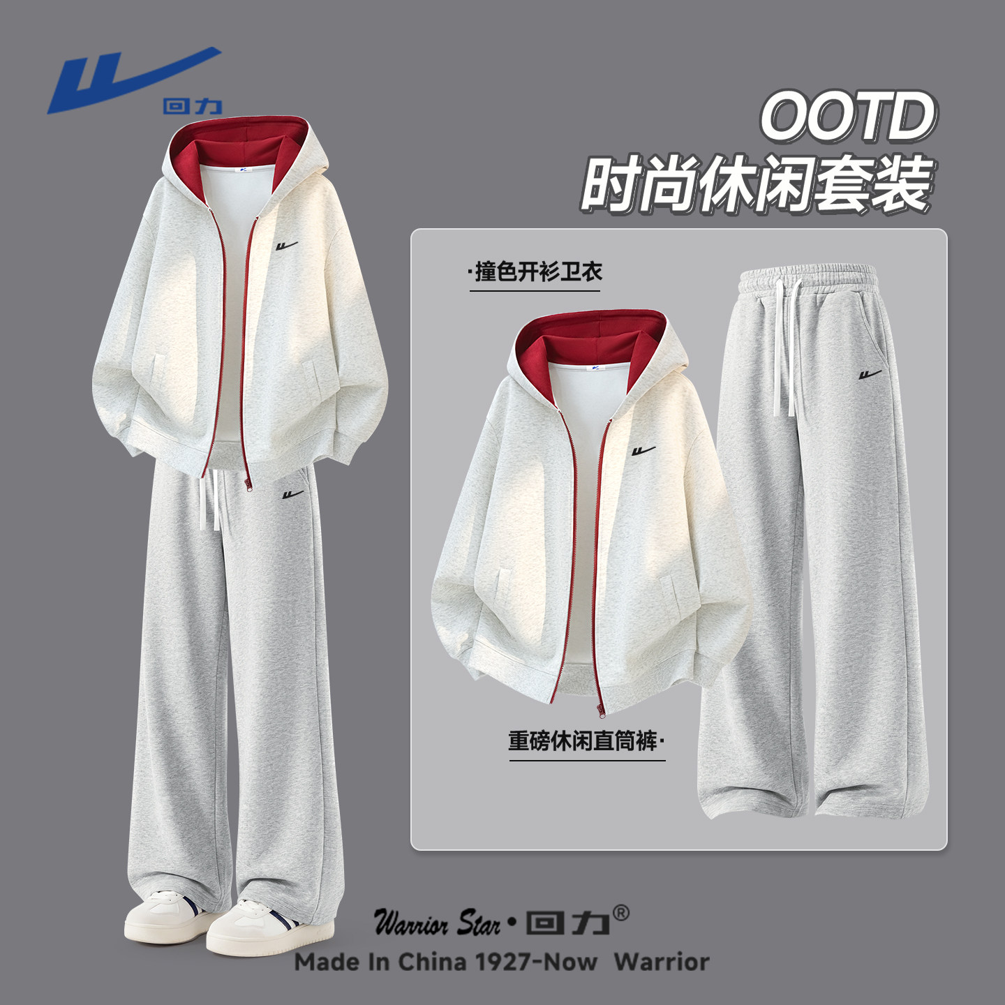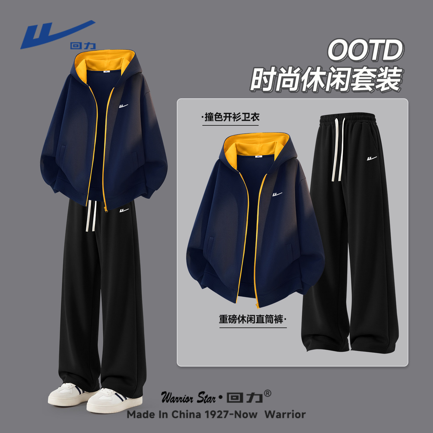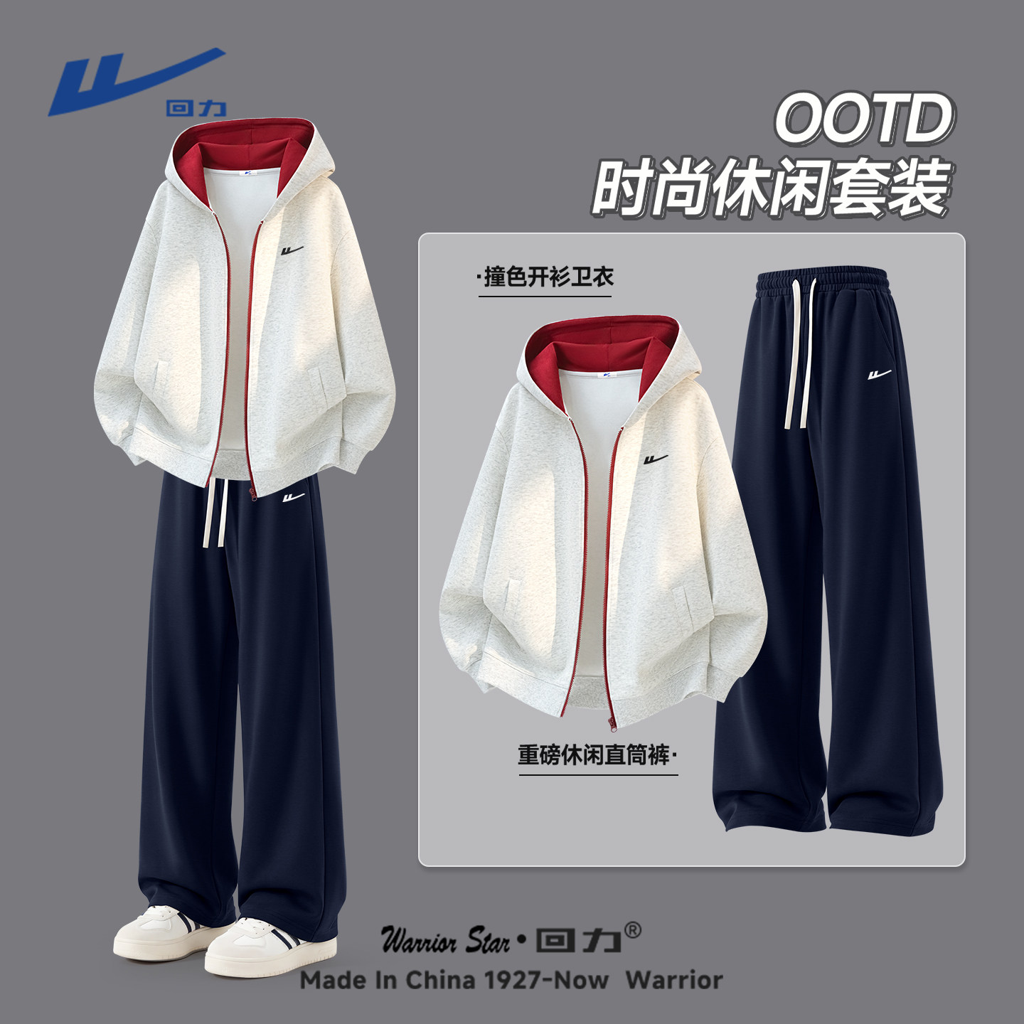 回力休闲套装男春季青少年帅气学生潮流运动卫衣卫裤搭配一整套Y