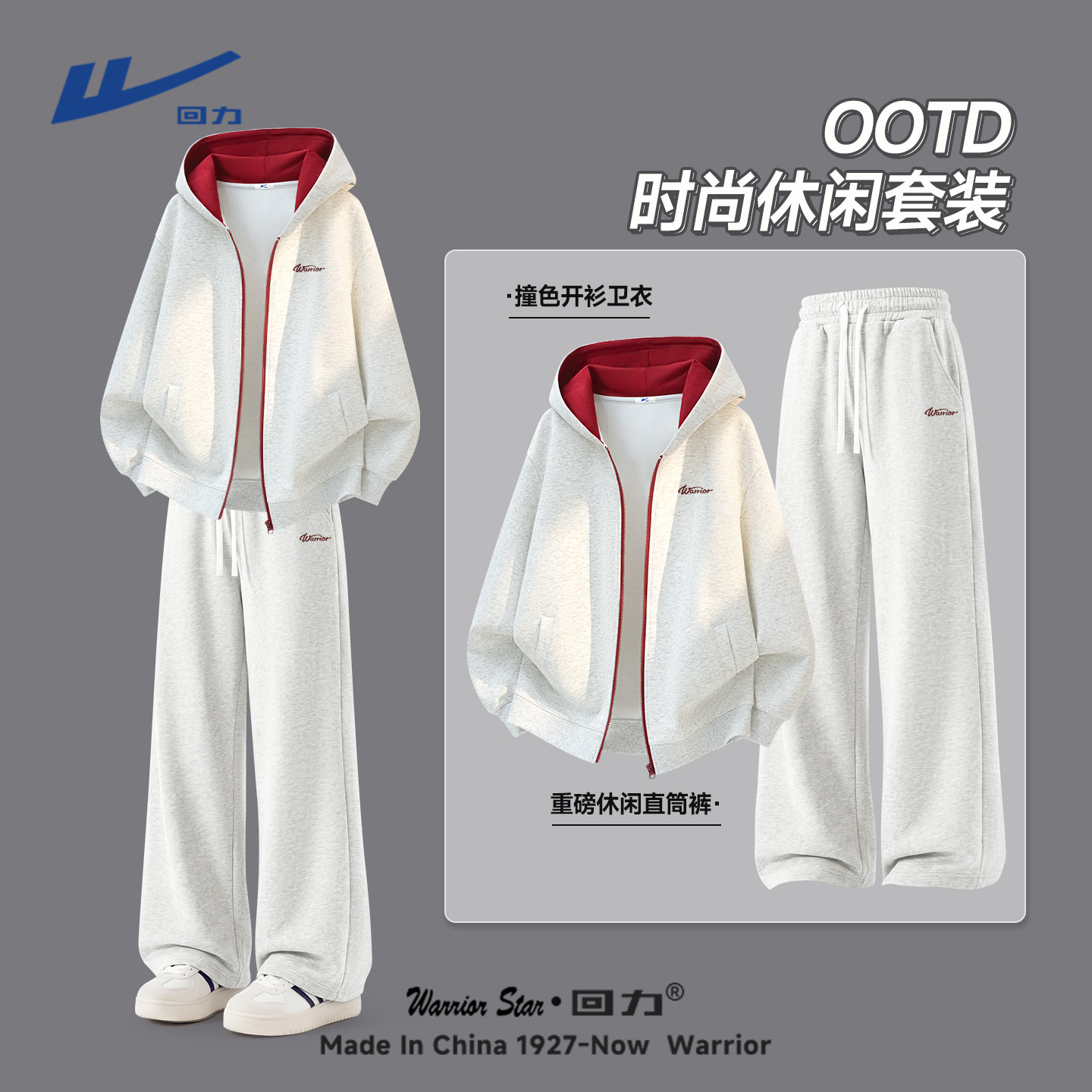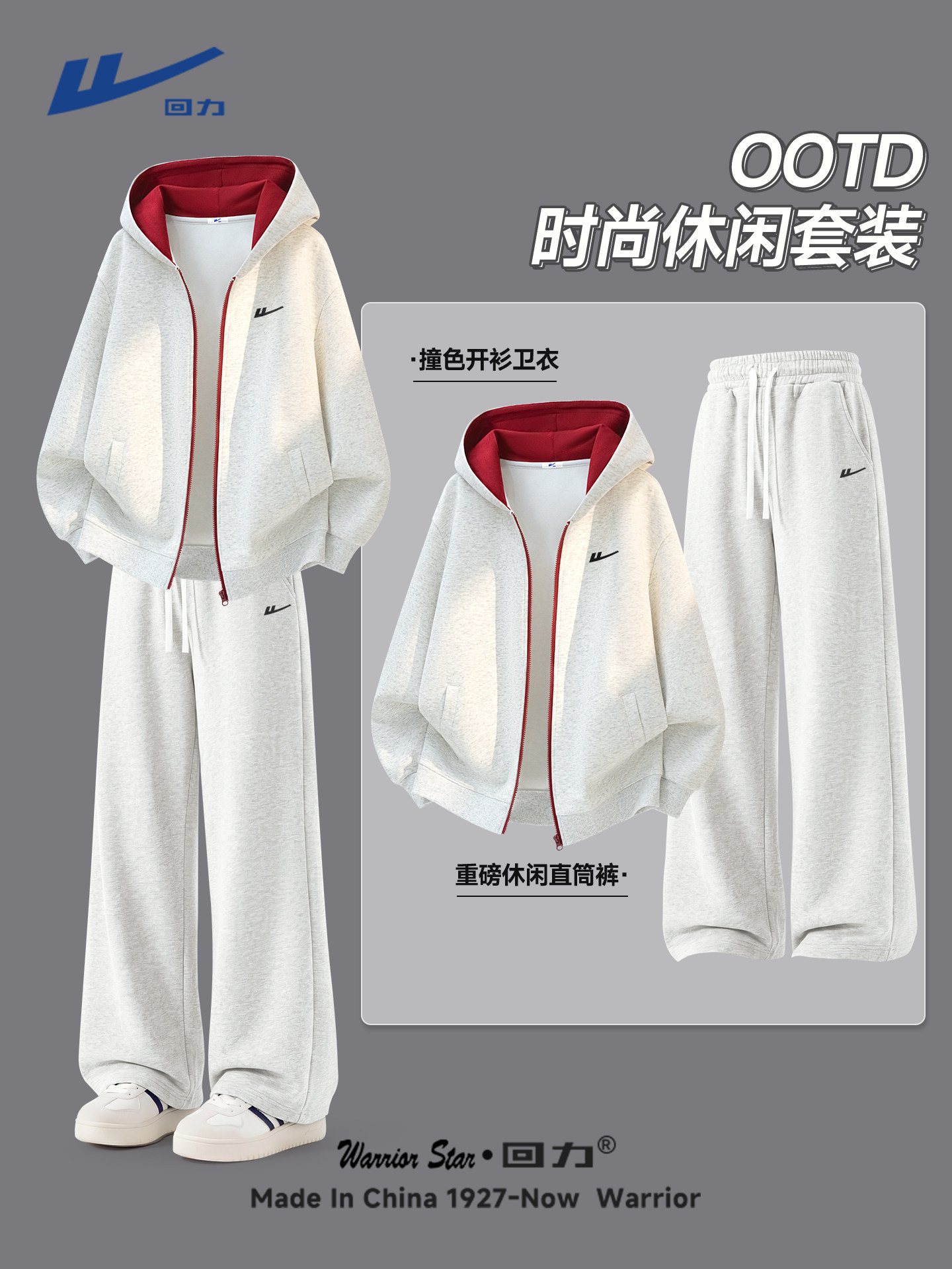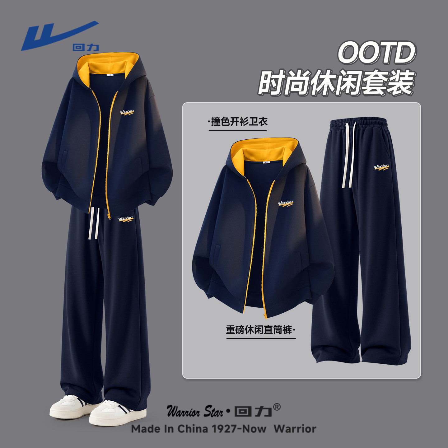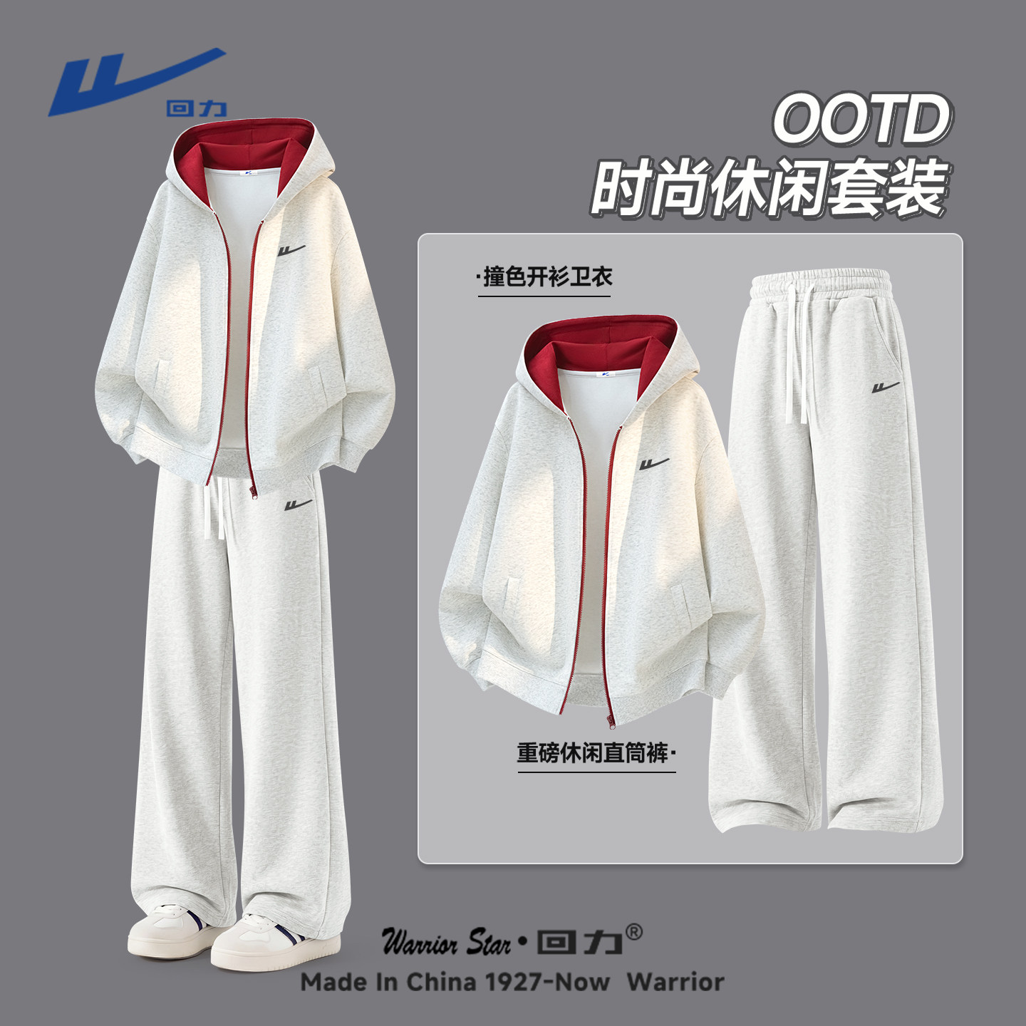回力休闲套装男春季青少年帅气学生潮流运动卫衣卫裤搭配一整套Y