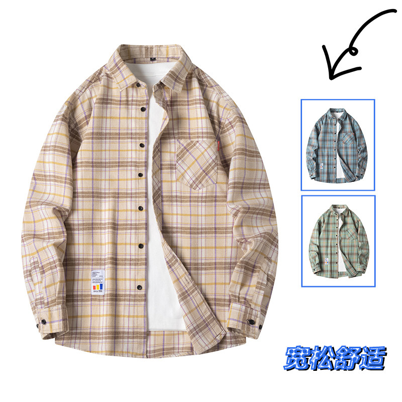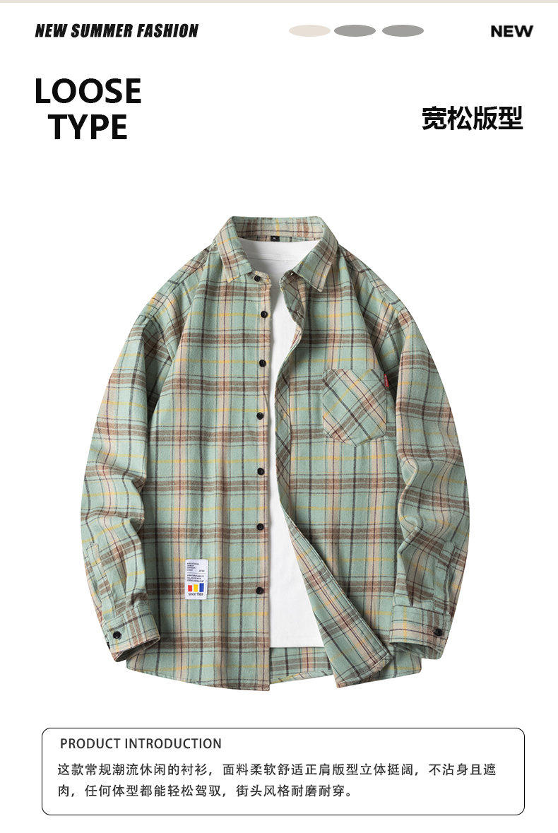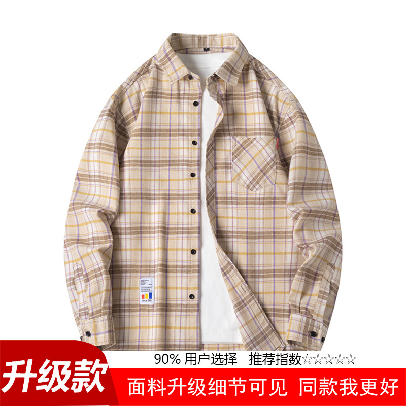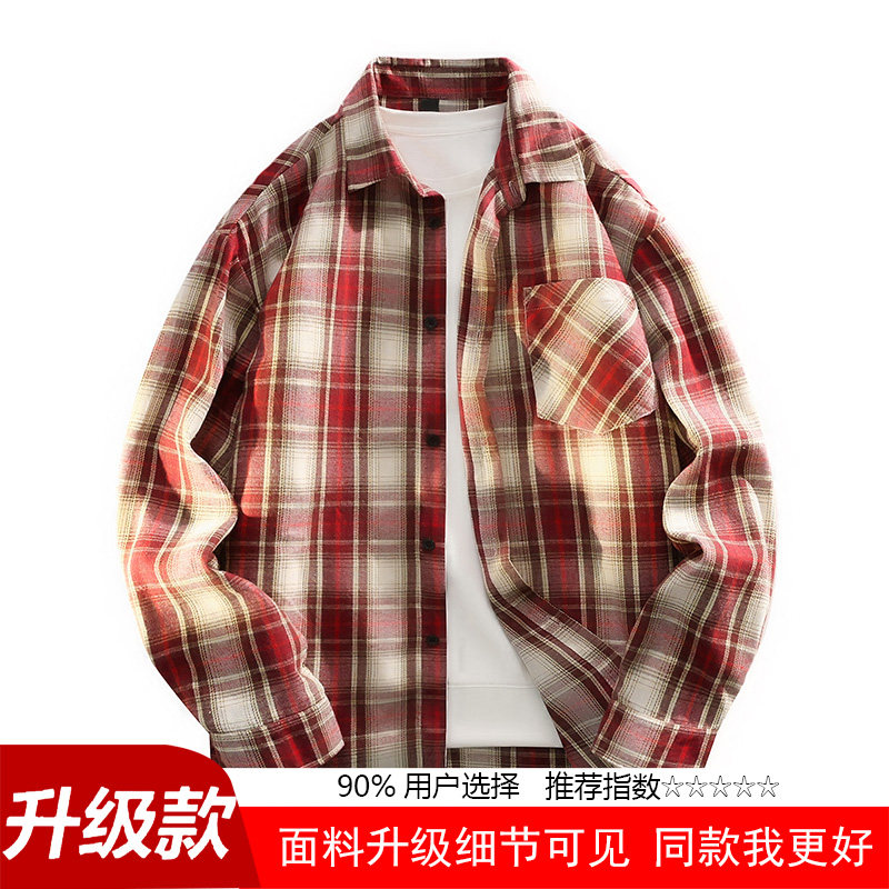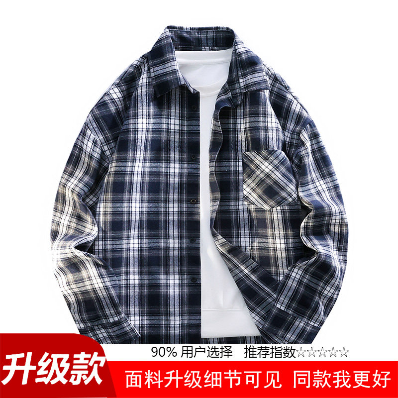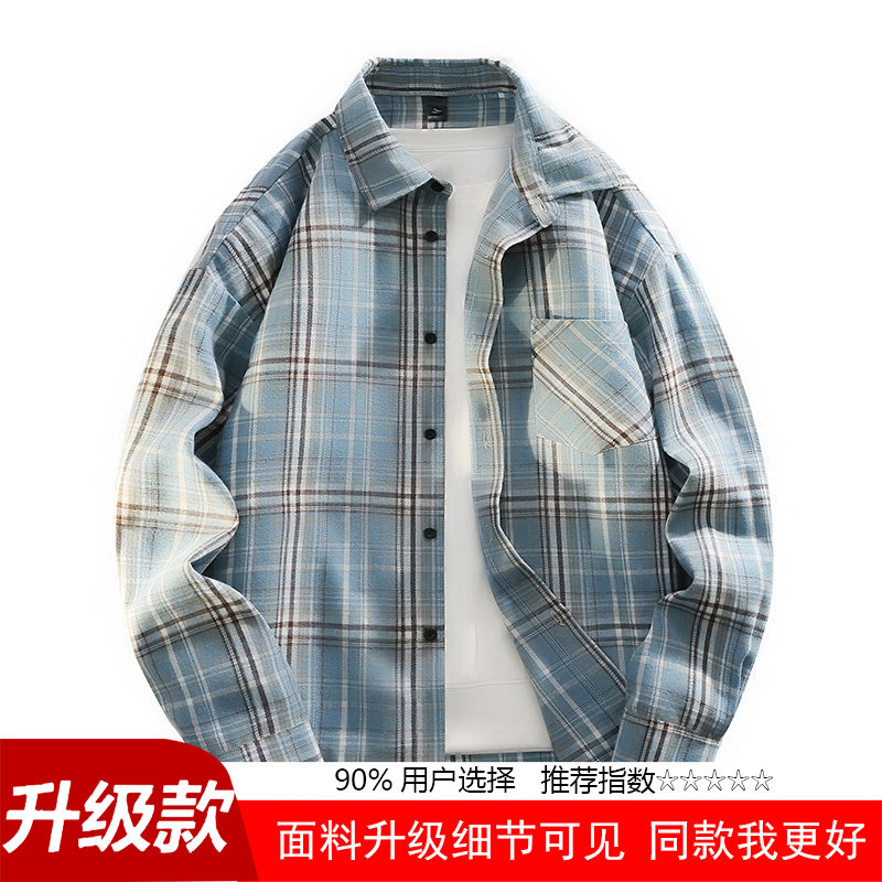 春秋季2026新款格子长袖衬衫男式宽松休闲工装衬衣外套春装上衣服
