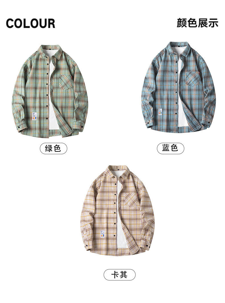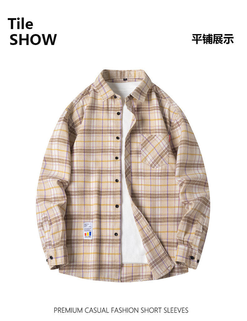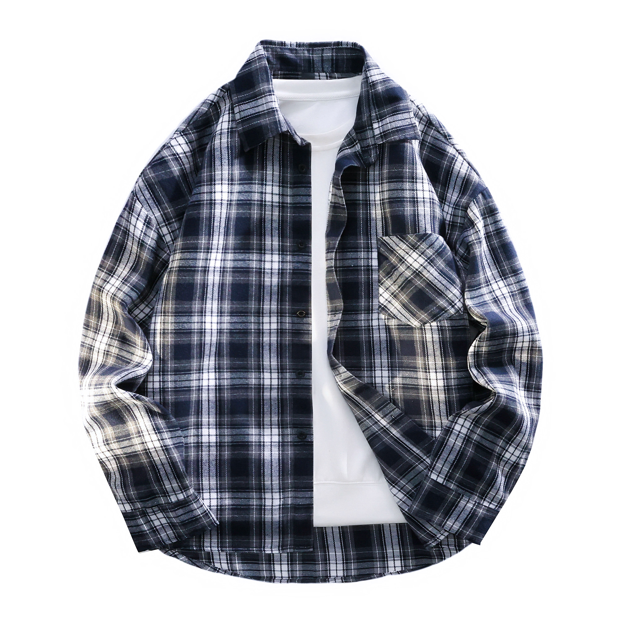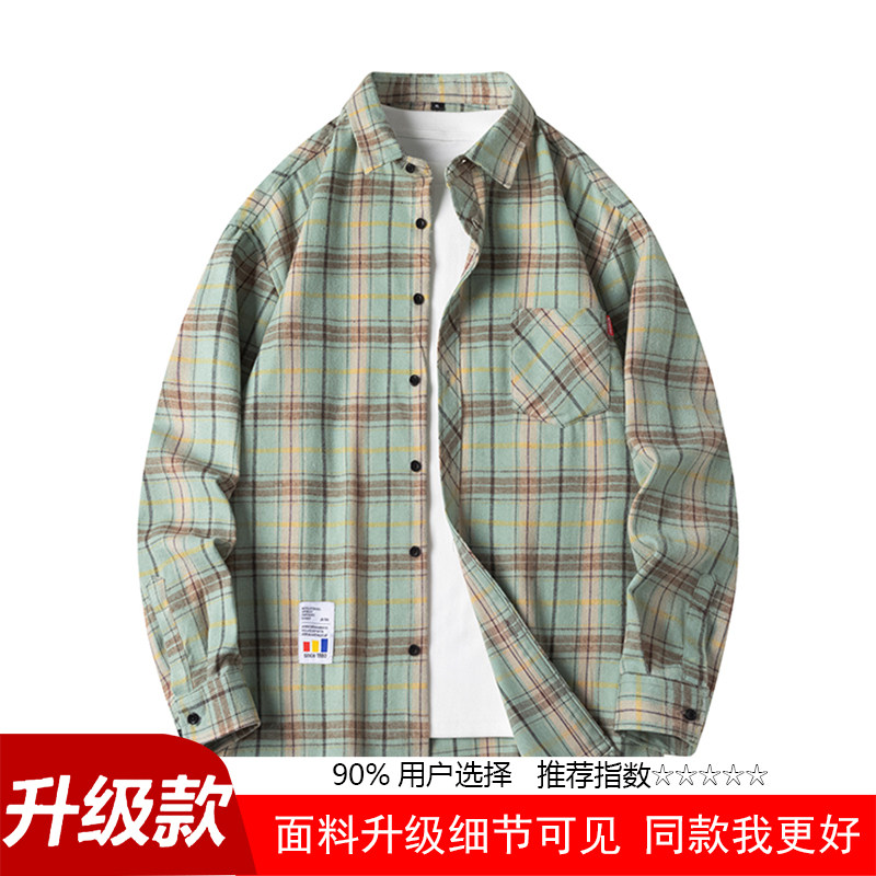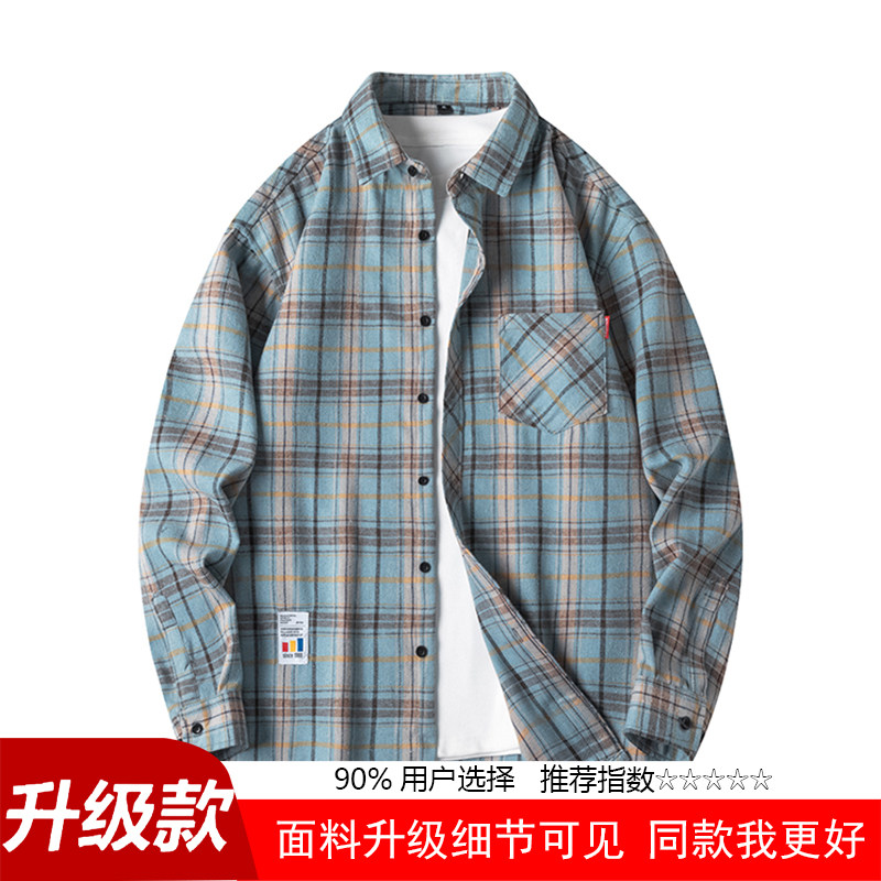 春秋季2026新款格子长袖衬衫男式宽松休闲工装衬衣外套春装上衣服