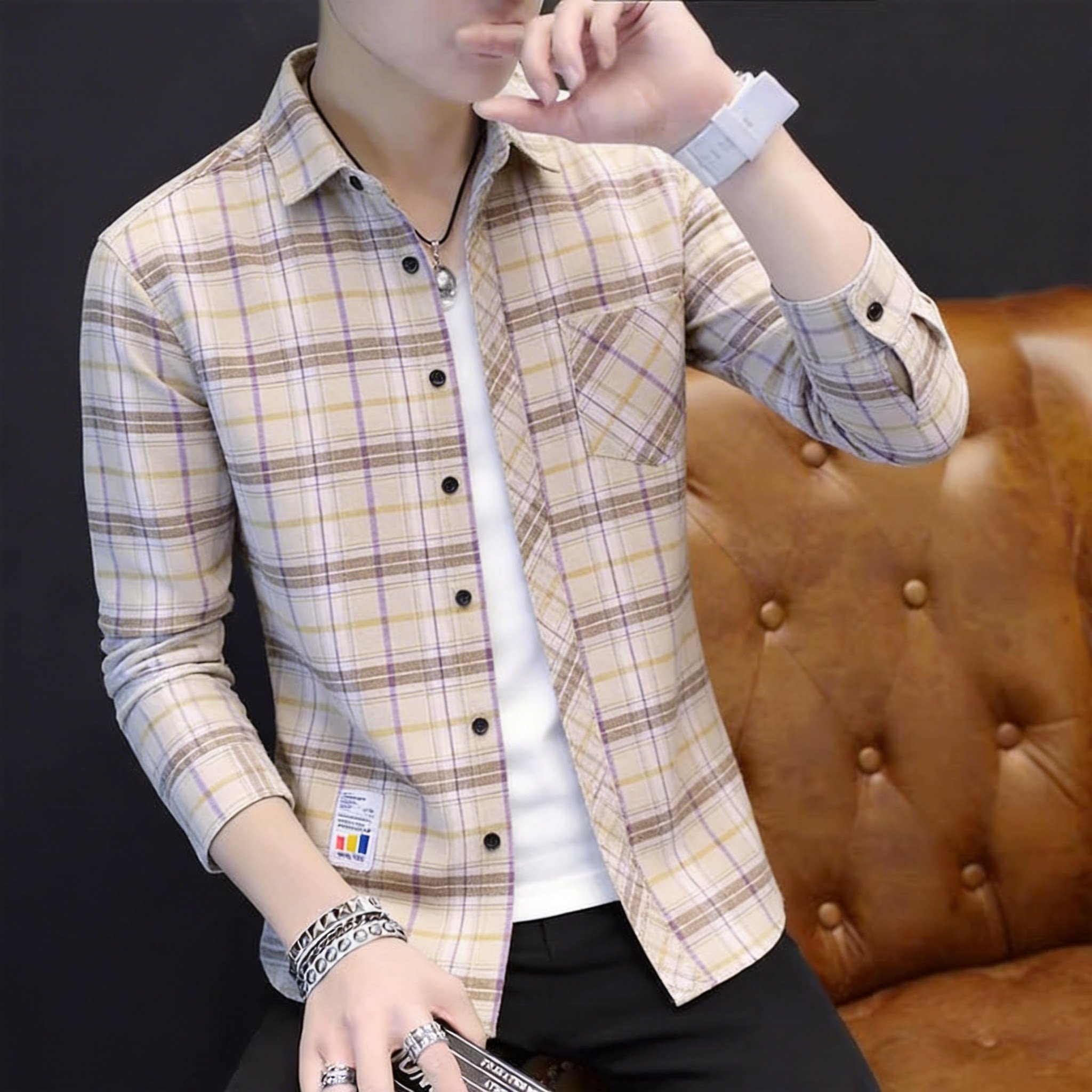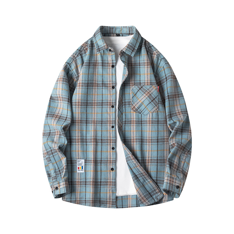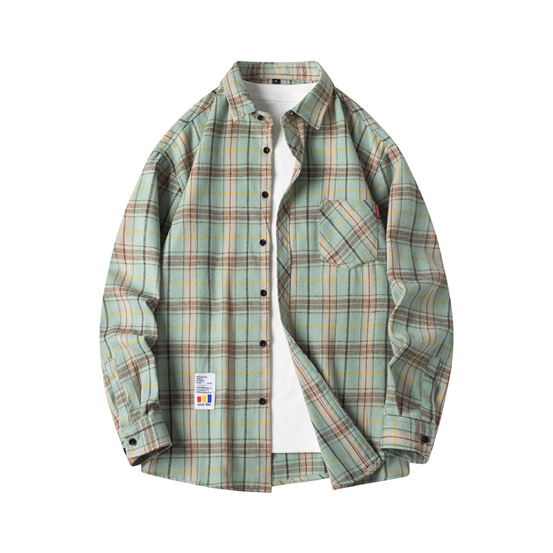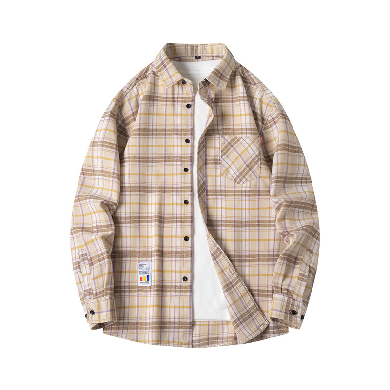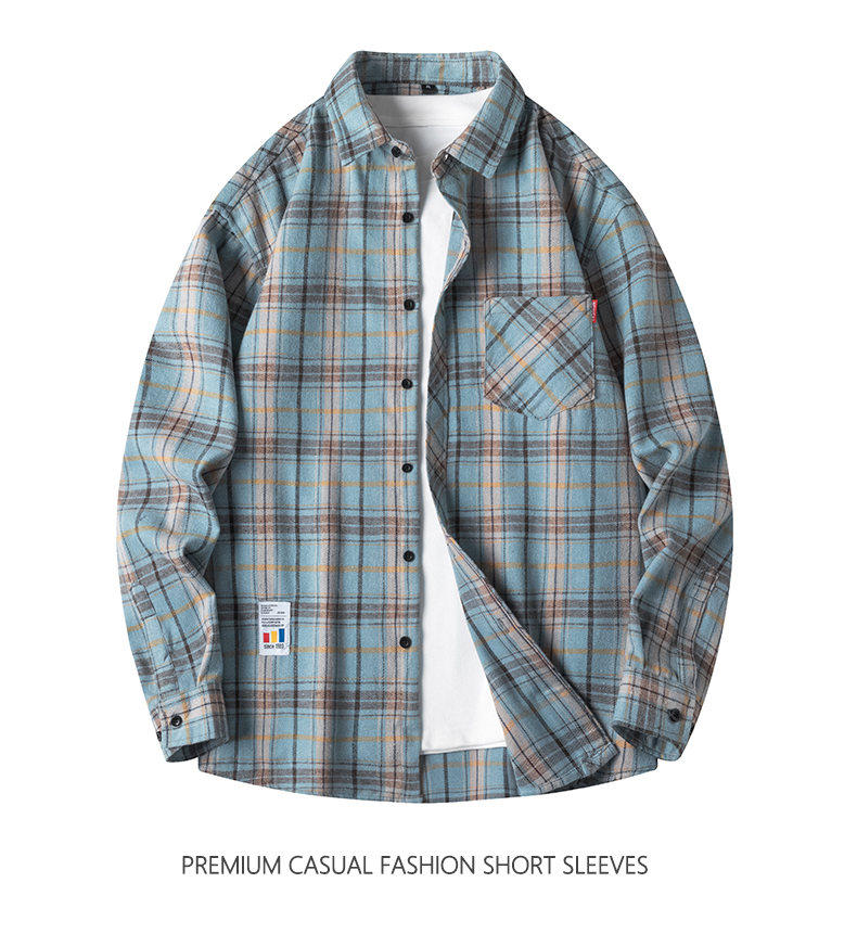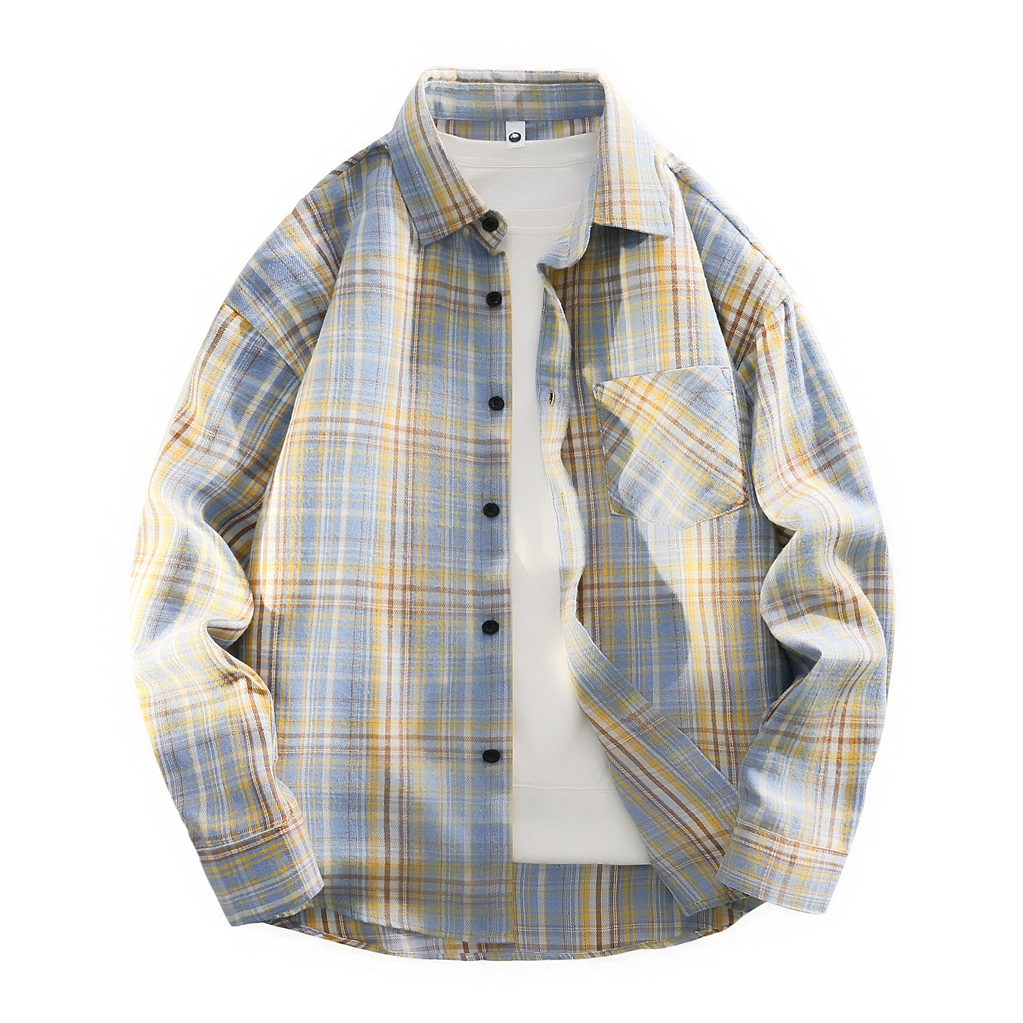 春秋季2026新款格子长袖衬衫男式宽松休闲工装衬衣外套春装上衣服