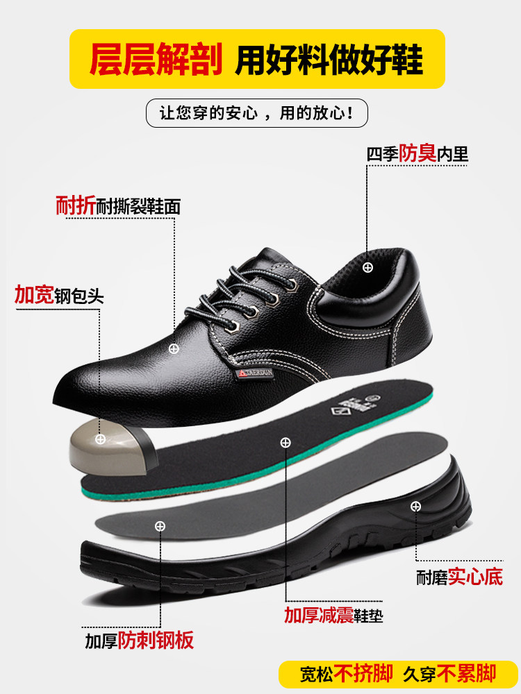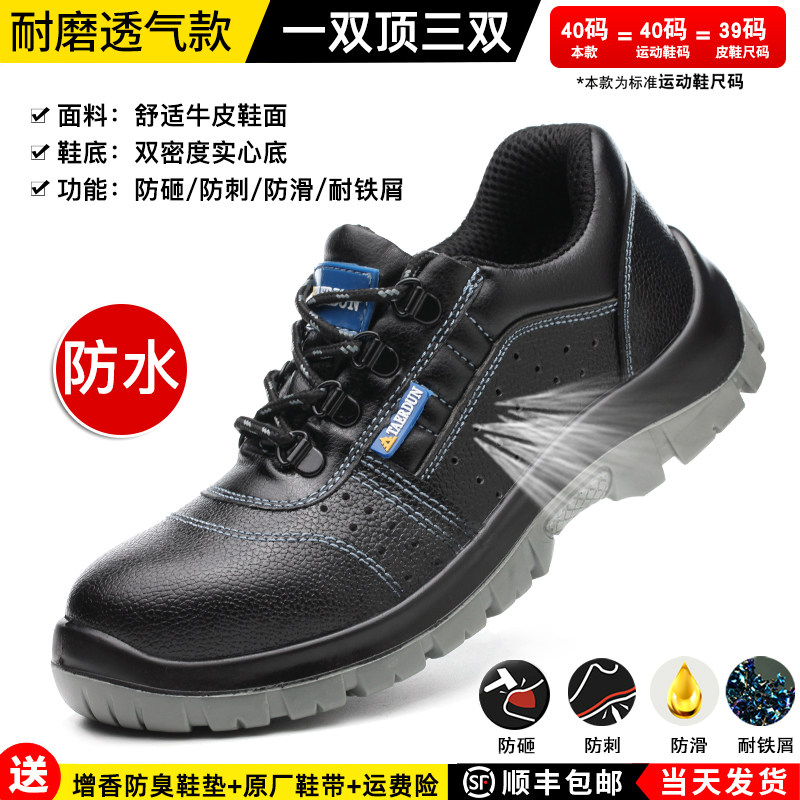 劳保鞋男士防砸防刺穿男款轻便夏季透气耐磨钢头钢板老保工地工作