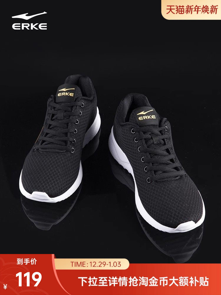 鸿星尔克运动鞋冬季新款男鞋跑步鞋软底跑鞋爸爸休闲鞋中年黑鞋子