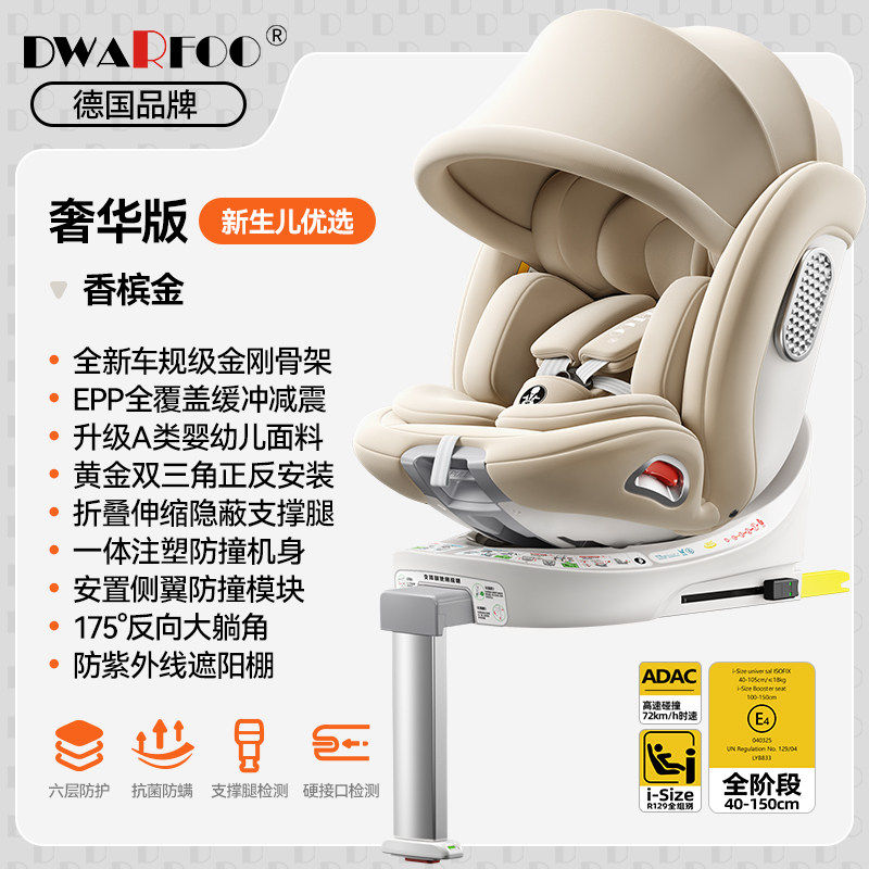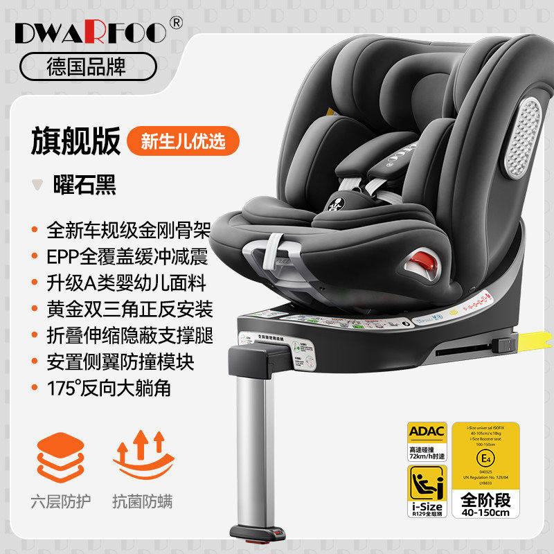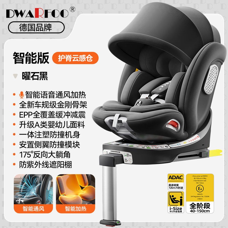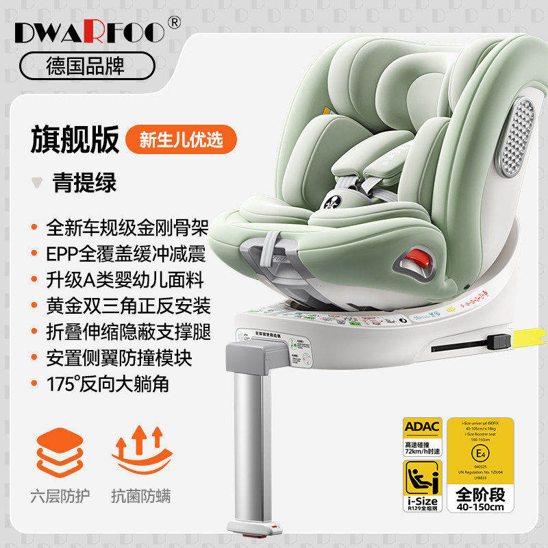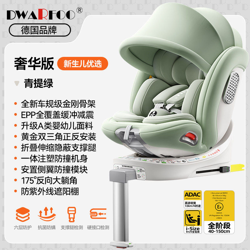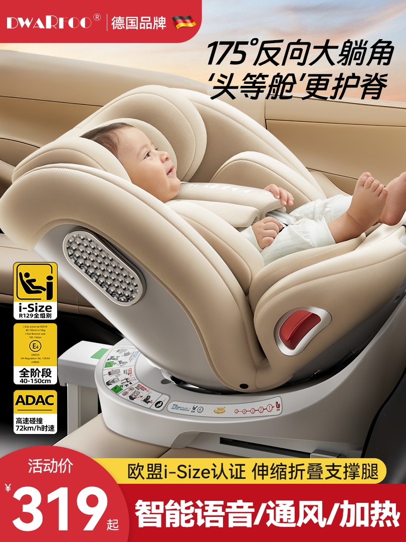 德国DWARFOO儿童安全座椅汽车用婴儿宝宝车载0到12岁便携式坐椅躺