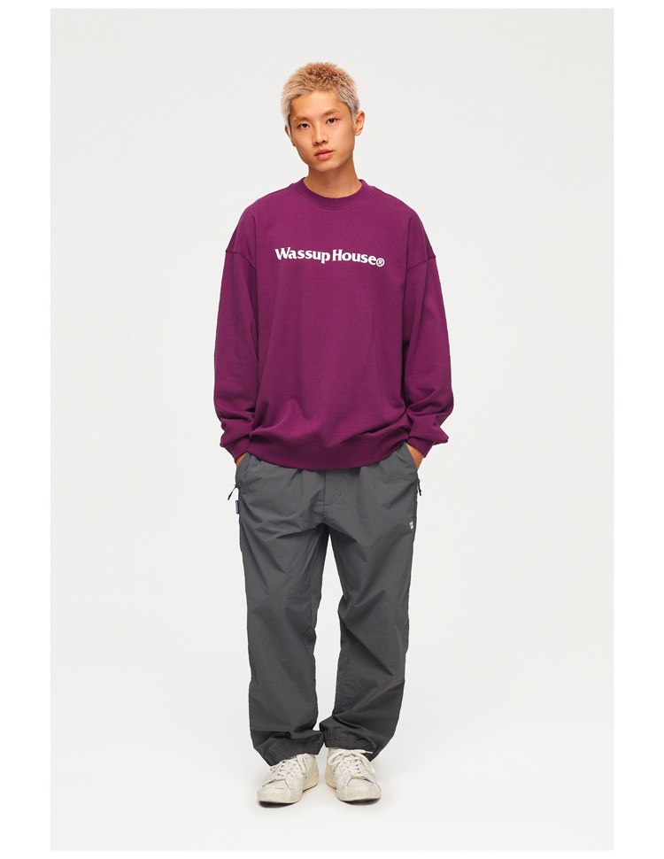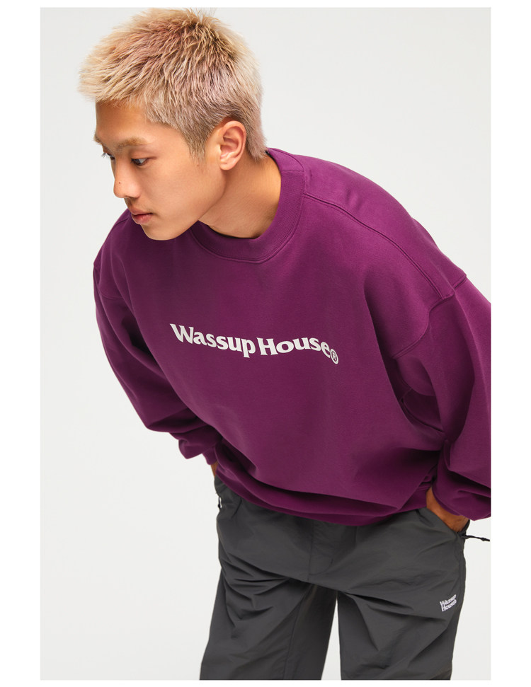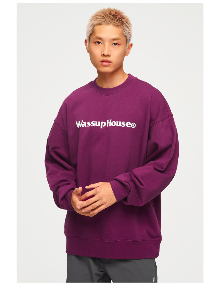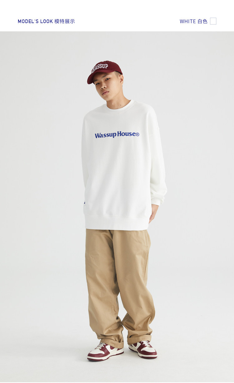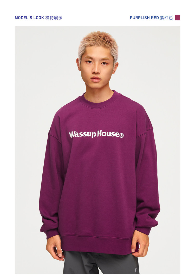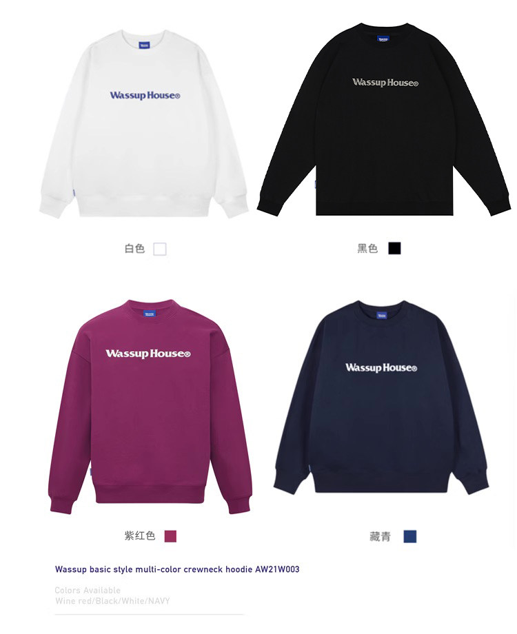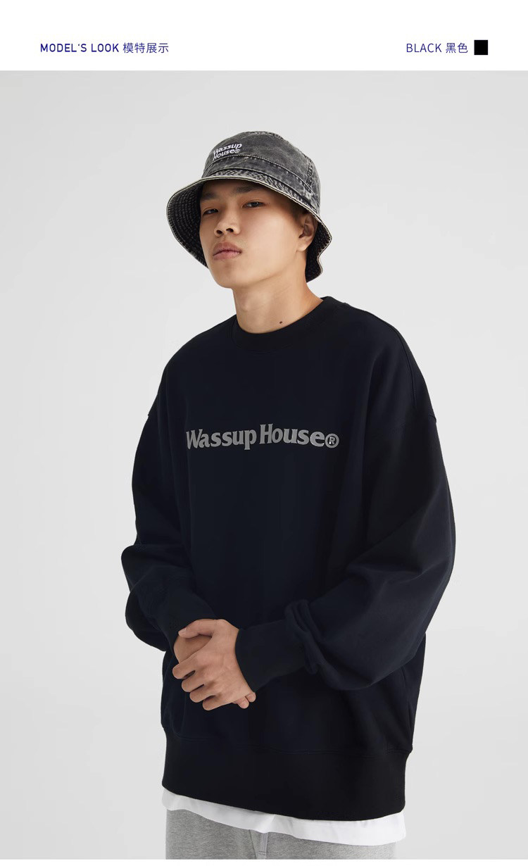 wassuphouse秋季新款卫衣男基础印花抓绒加厚重磅情侣长袖上衣潮