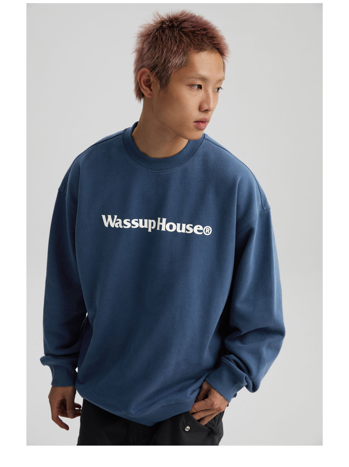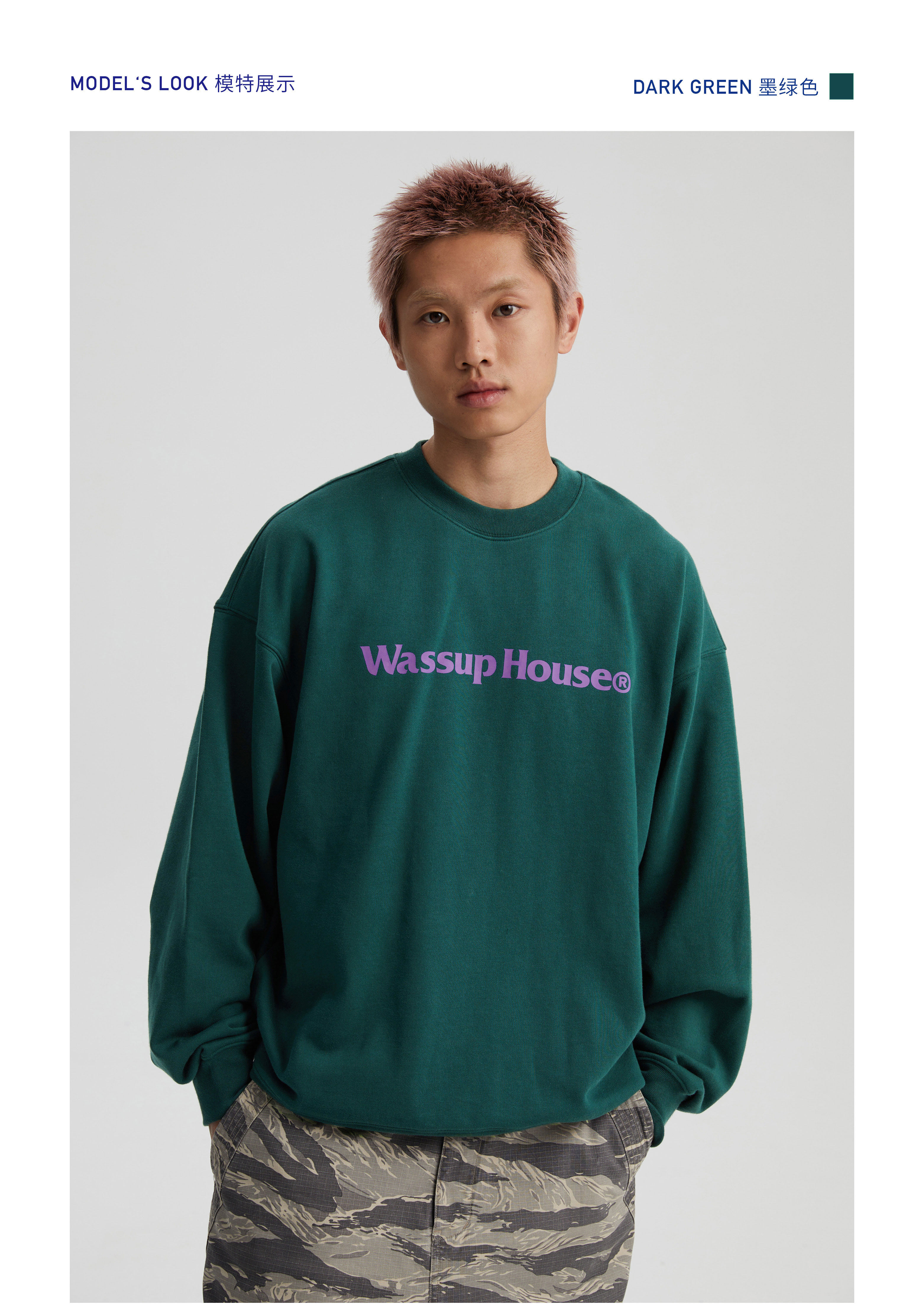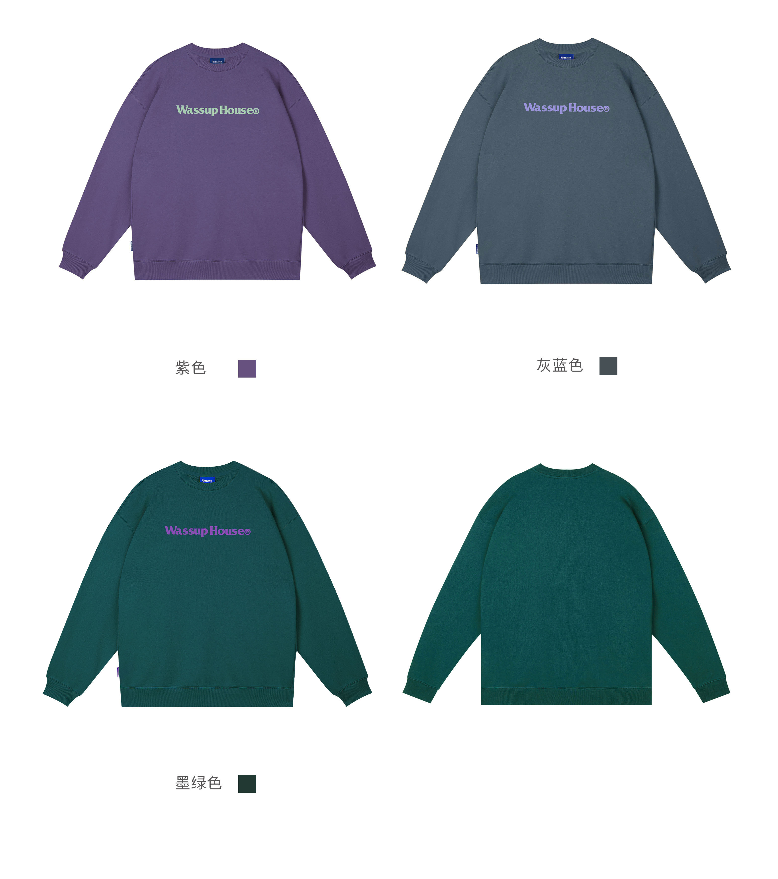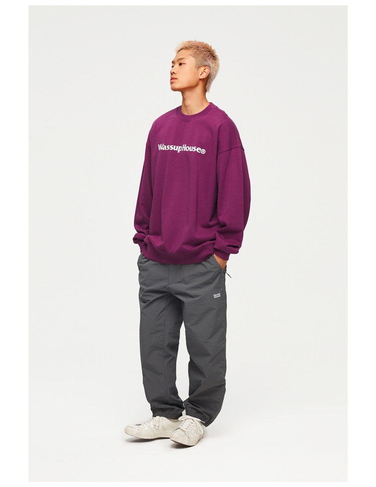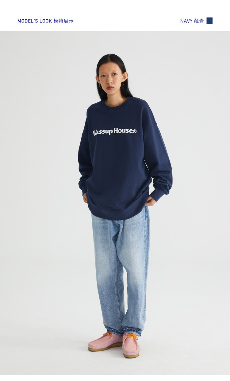 wassuphouse秋季新款卫衣男基础印花抓绒加厚重磅情侣长袖上衣潮