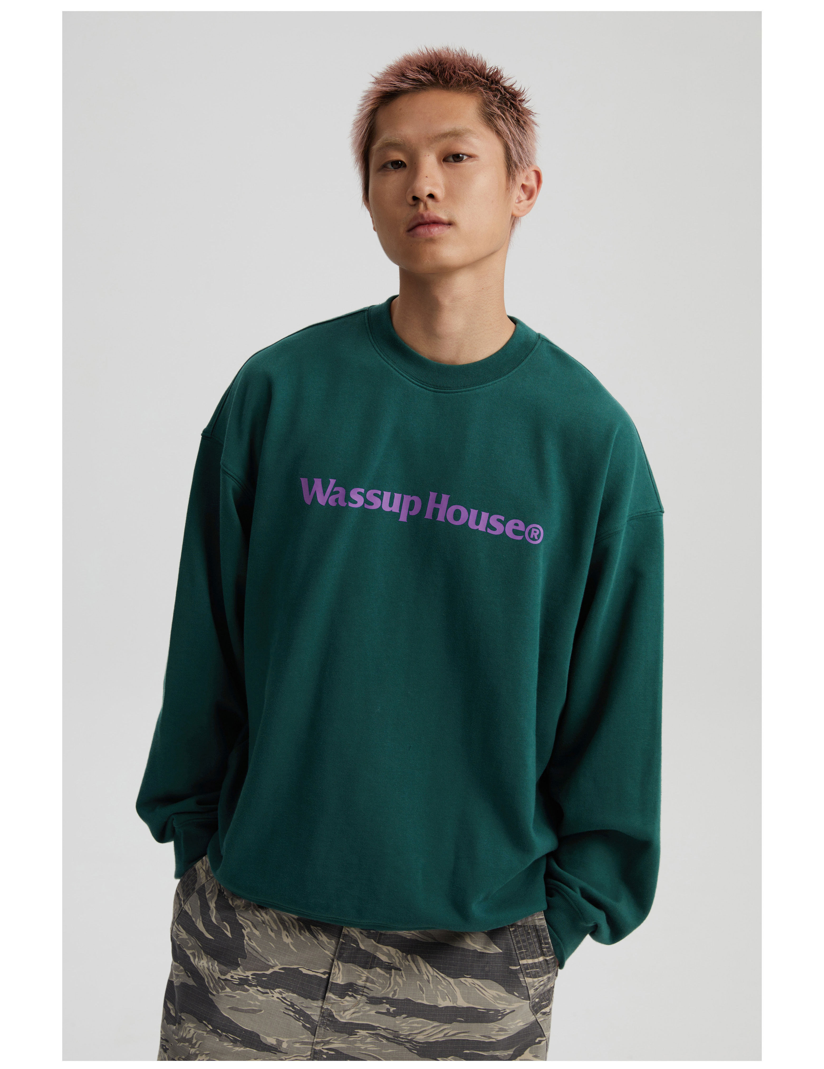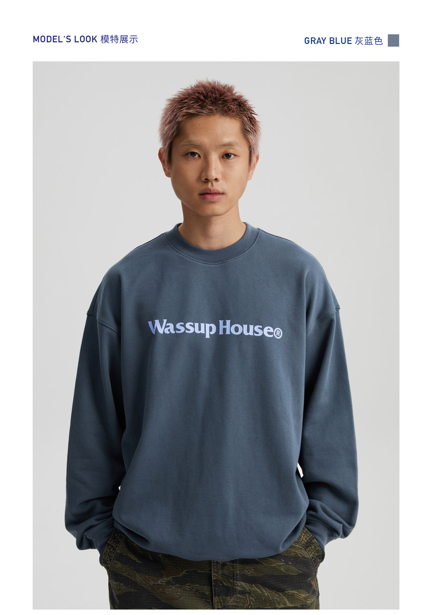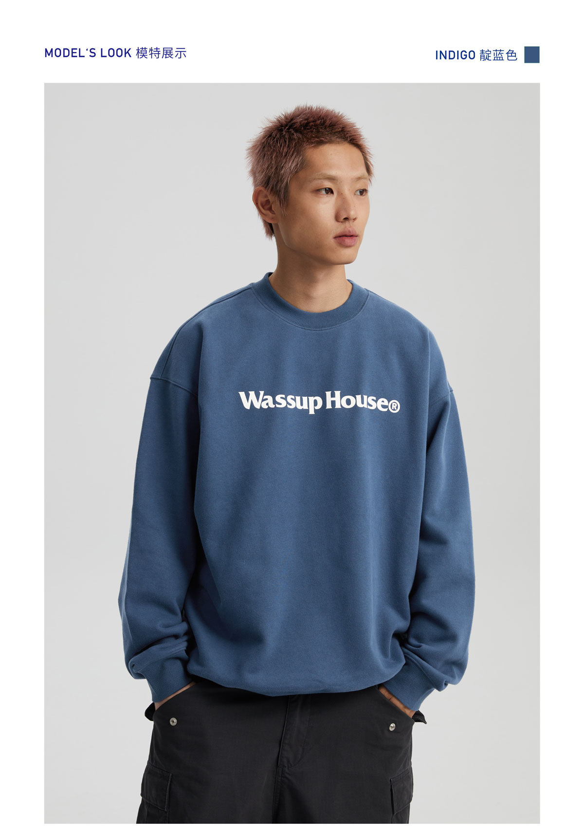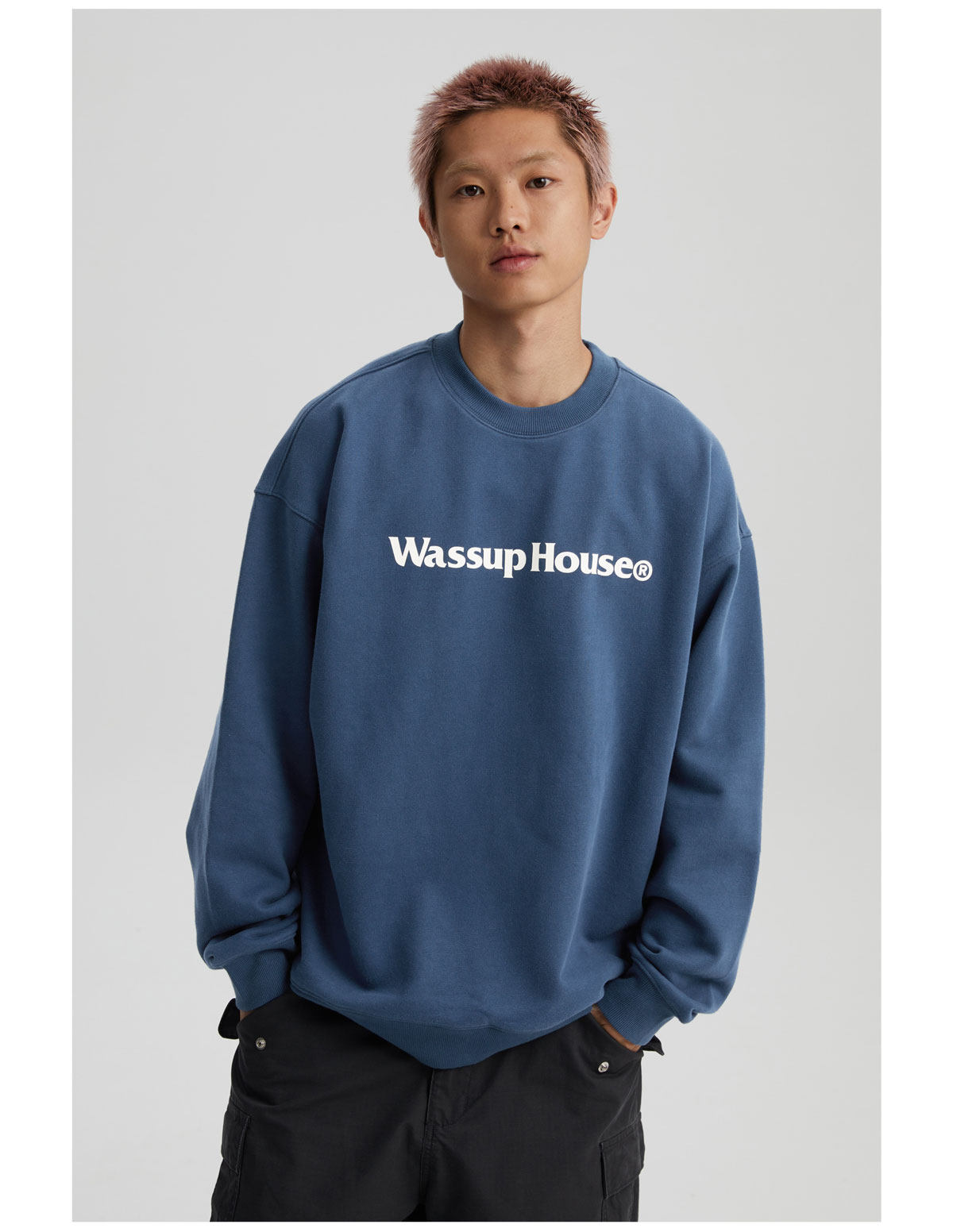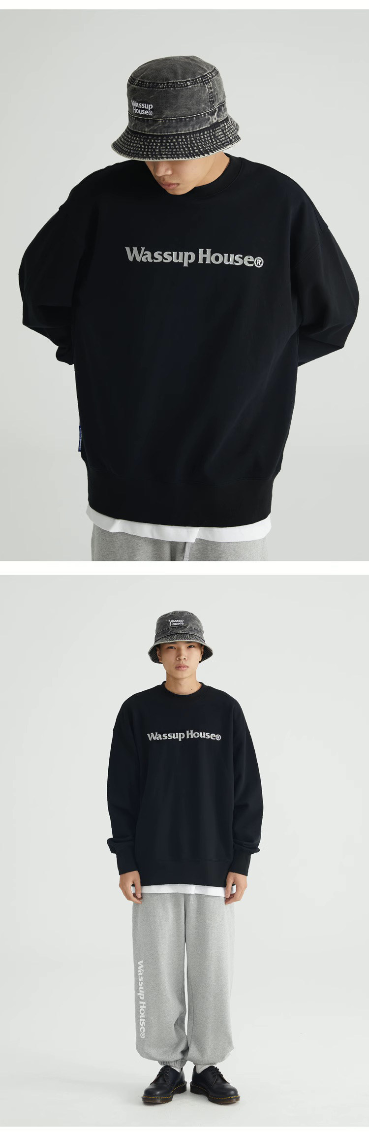 wassuphouse秋季新款卫衣男基础印花抓绒加厚重磅情侣长袖上衣潮