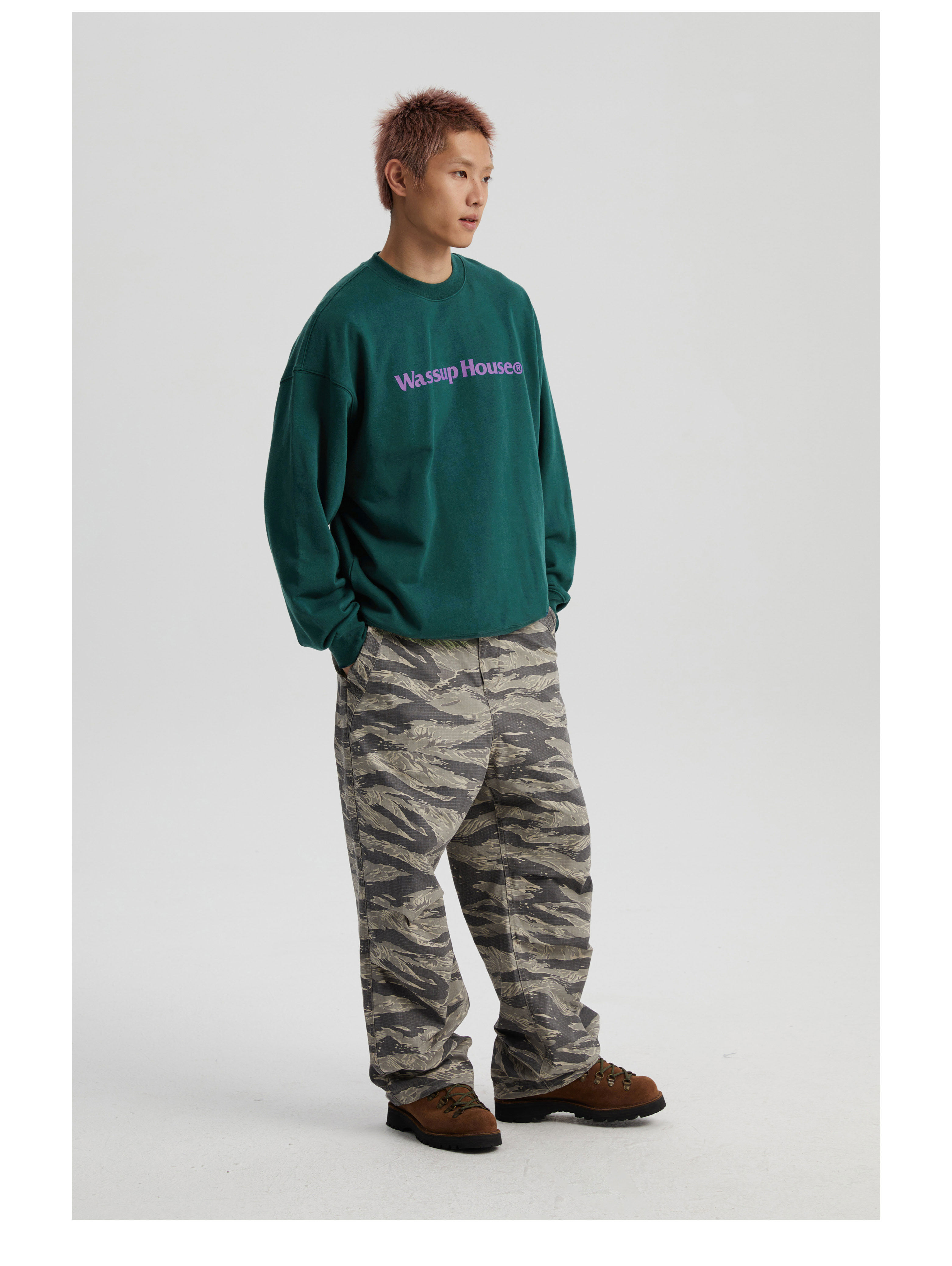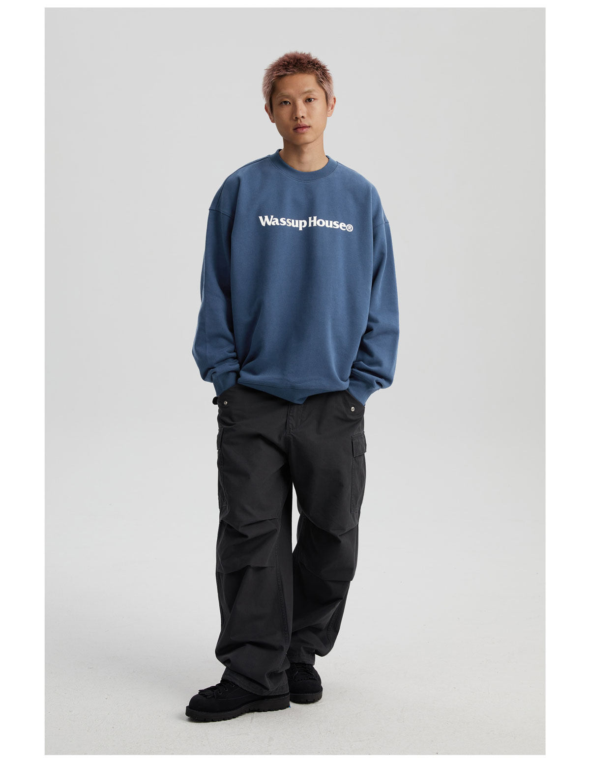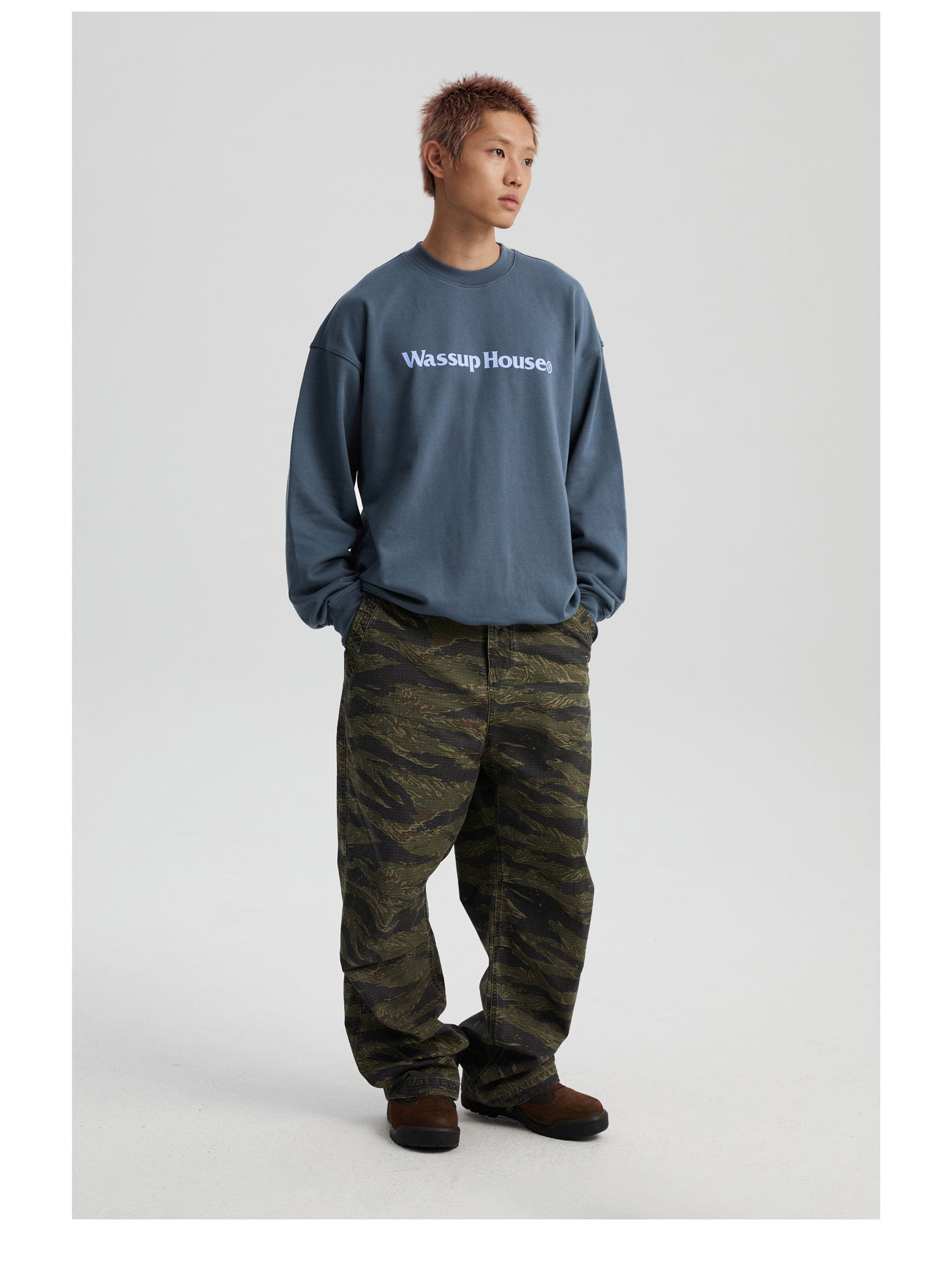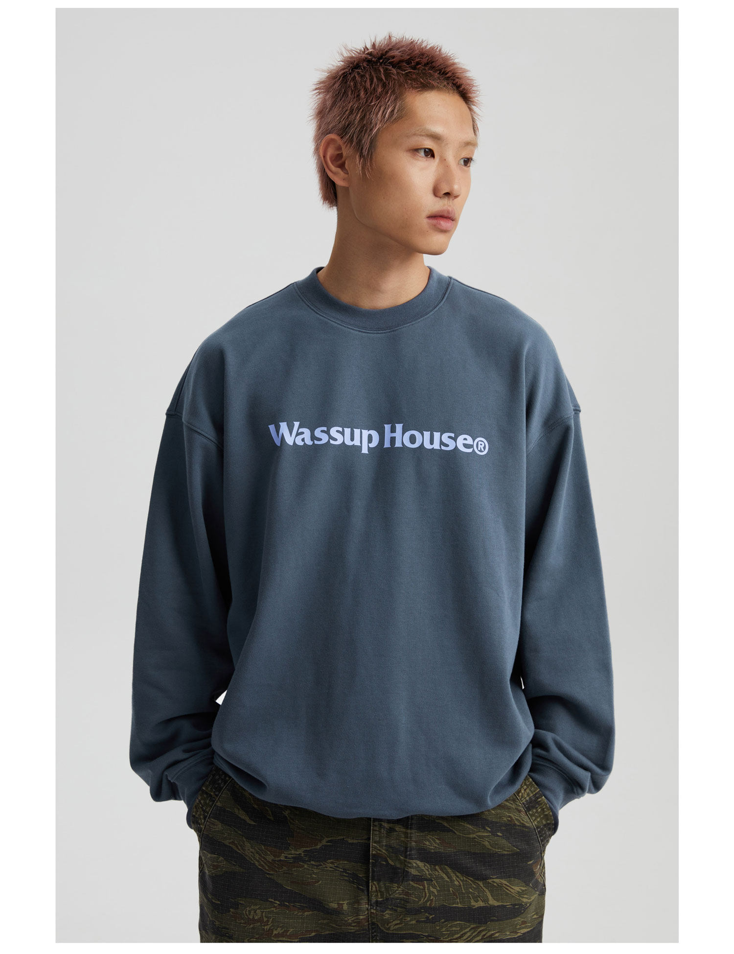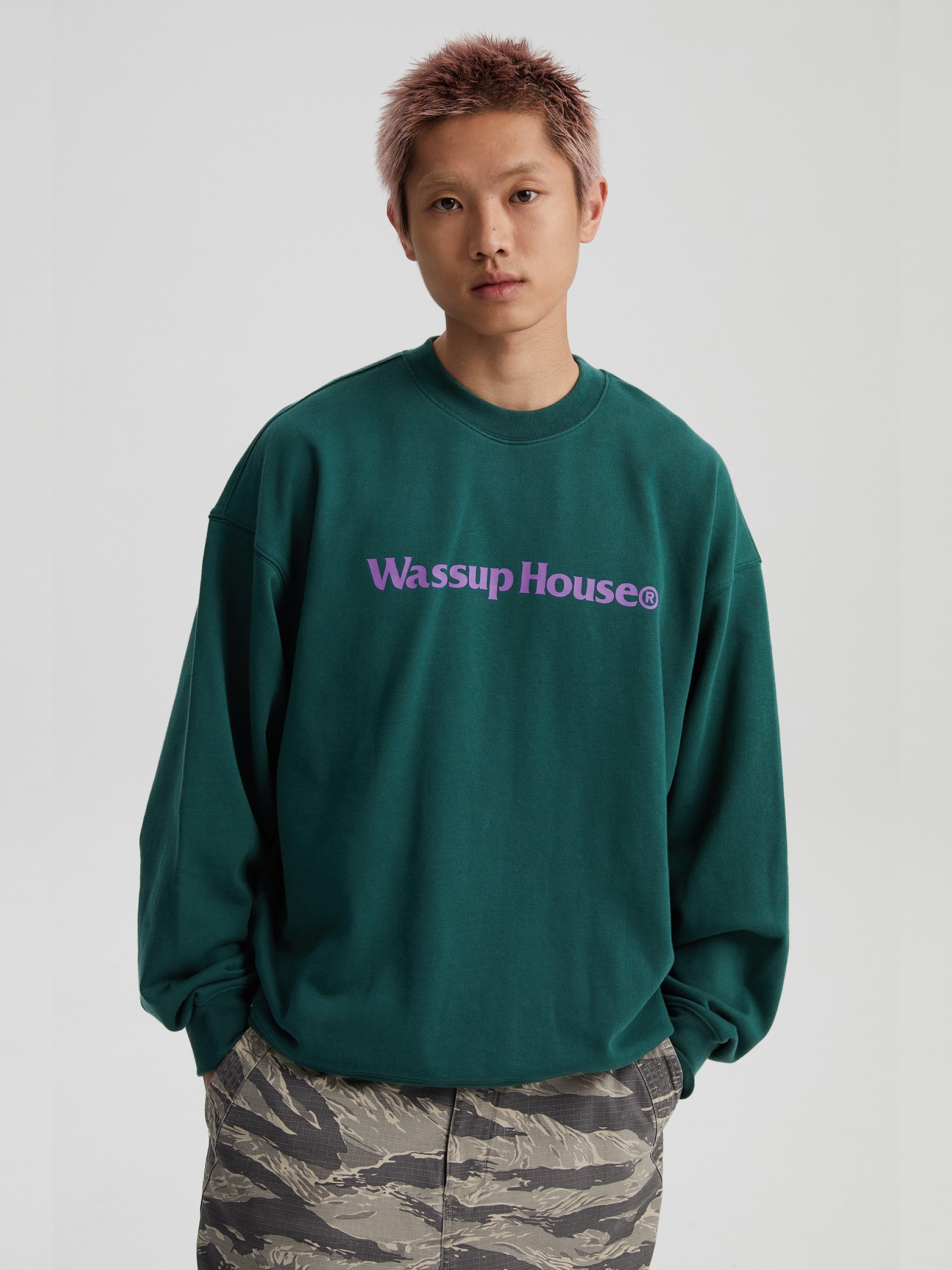 wassuphouse秋季新款卫衣男基础印花抓绒加厚重磅情侣长袖上衣潮