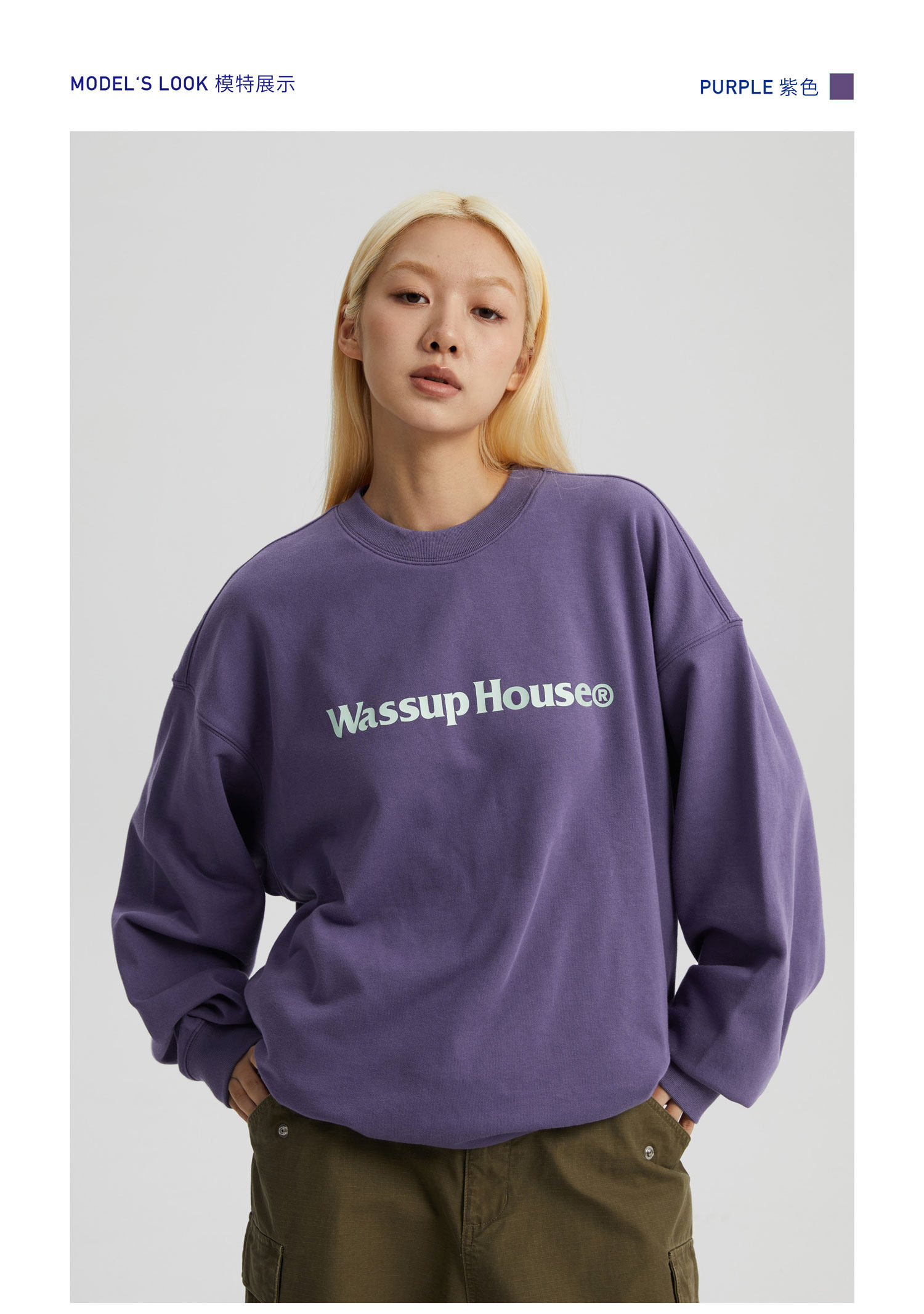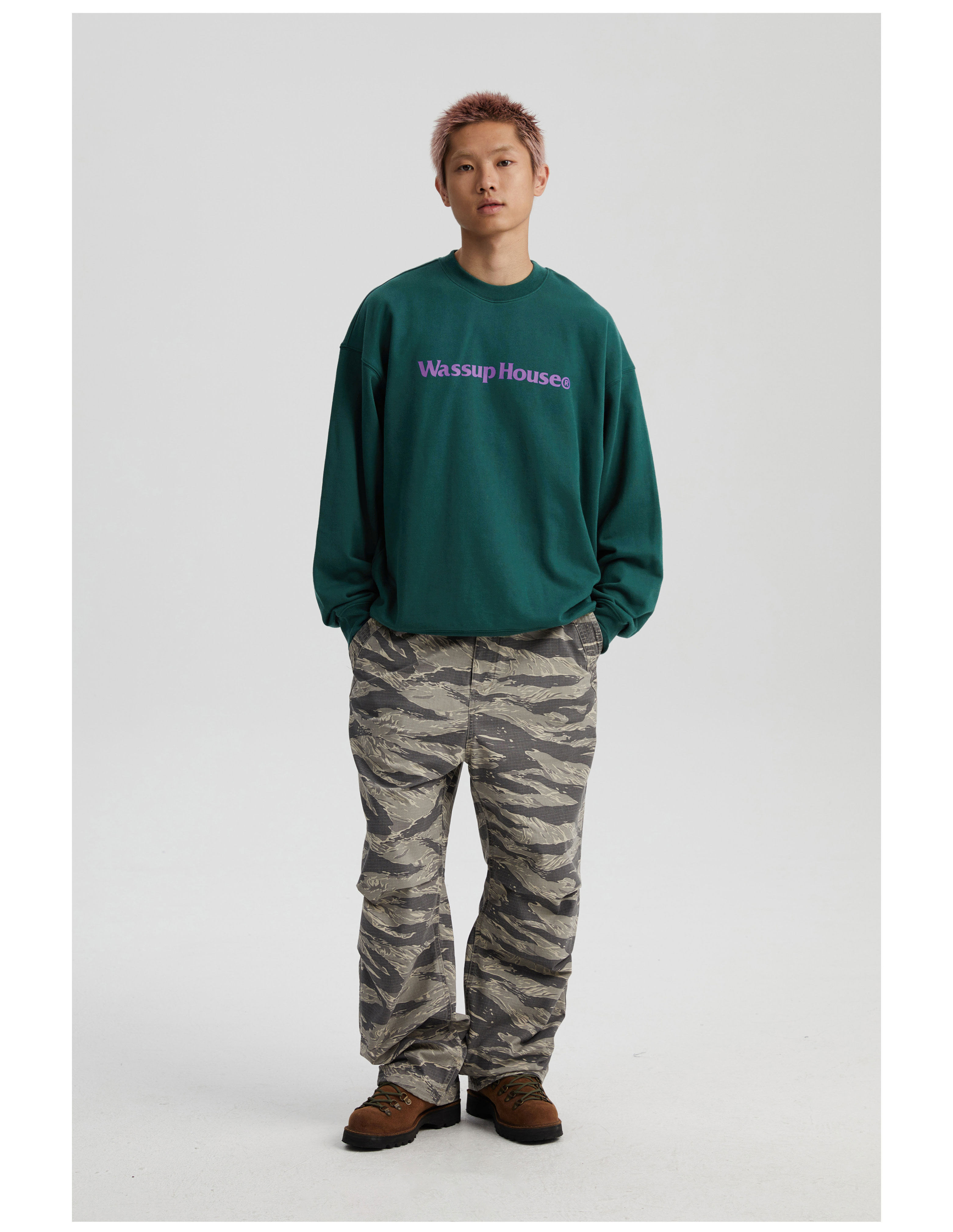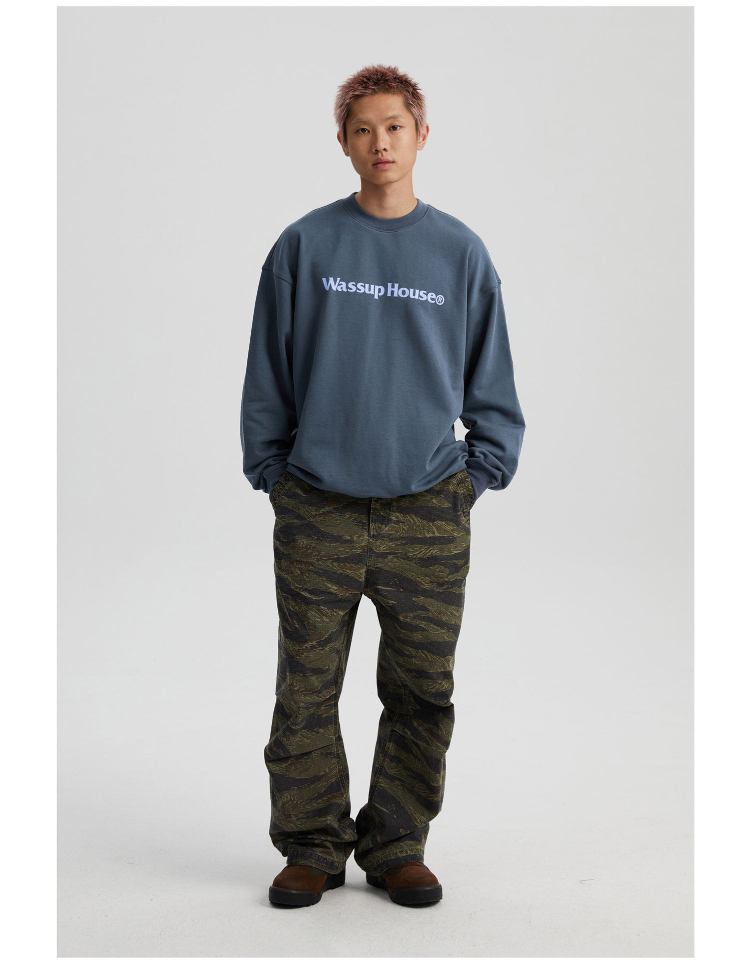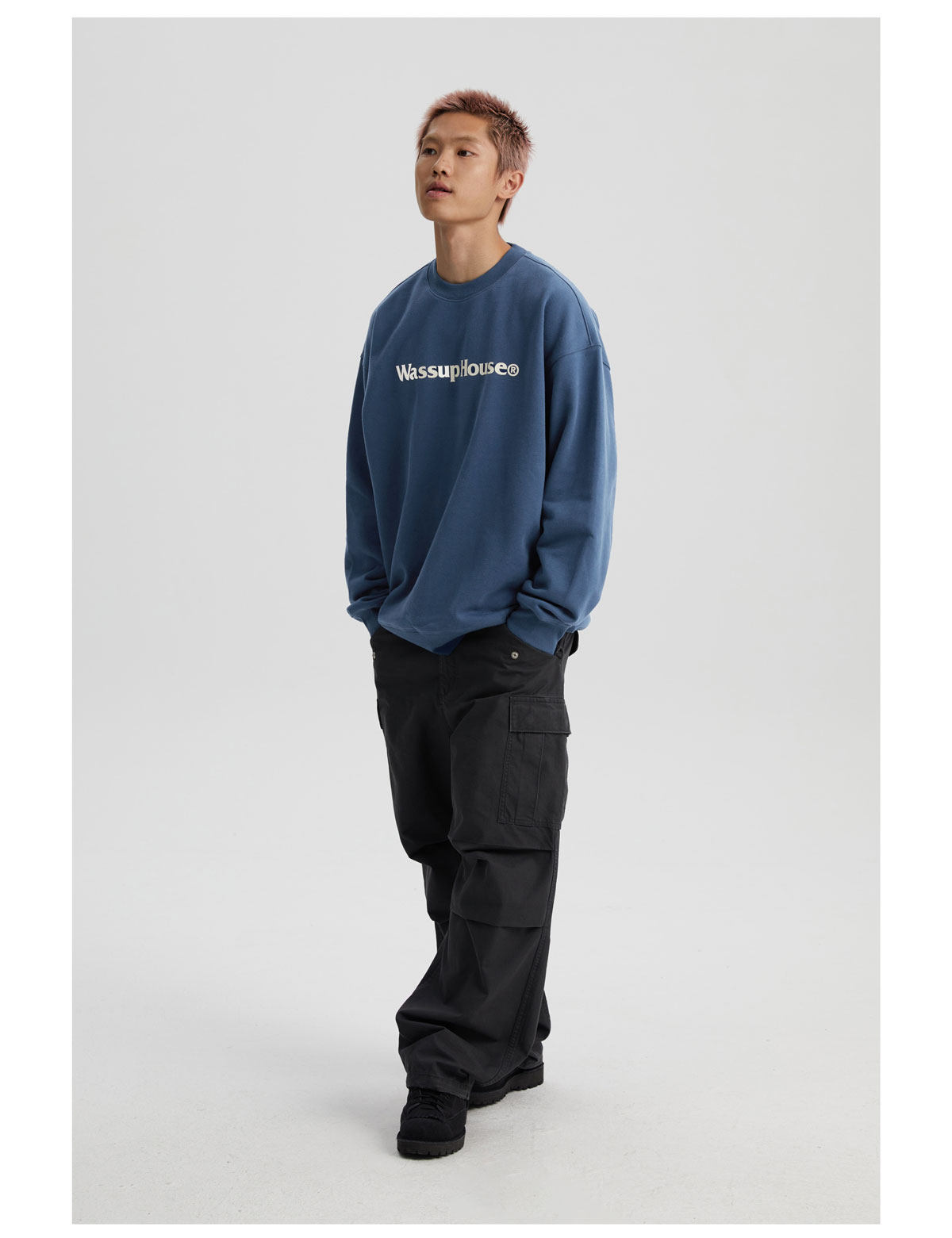 wassuphouse秋季新款卫衣男基础印花抓绒加厚重磅情侣长袖上衣潮