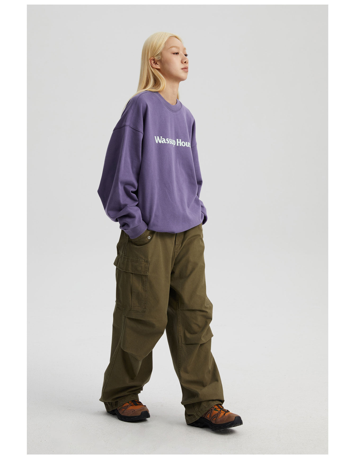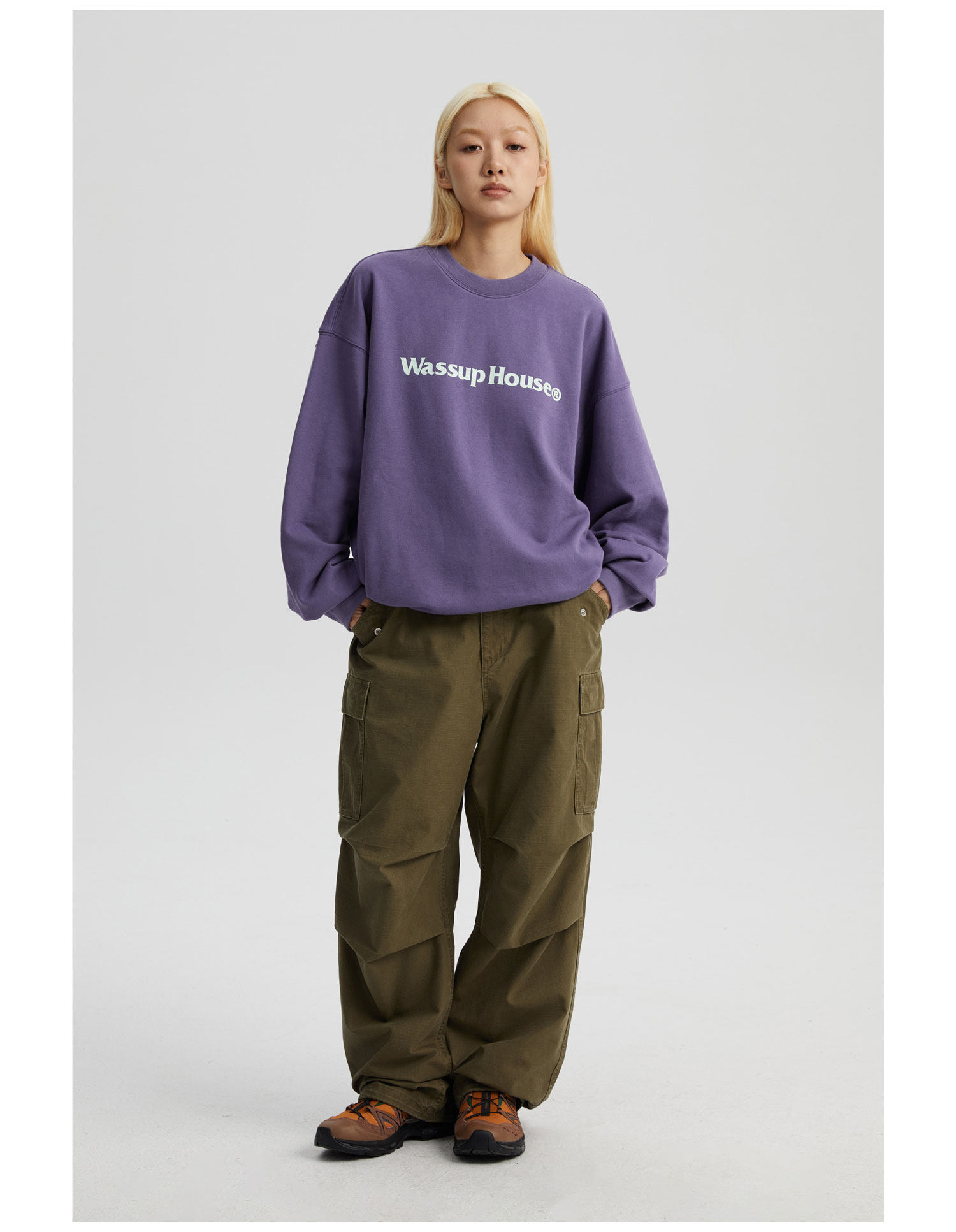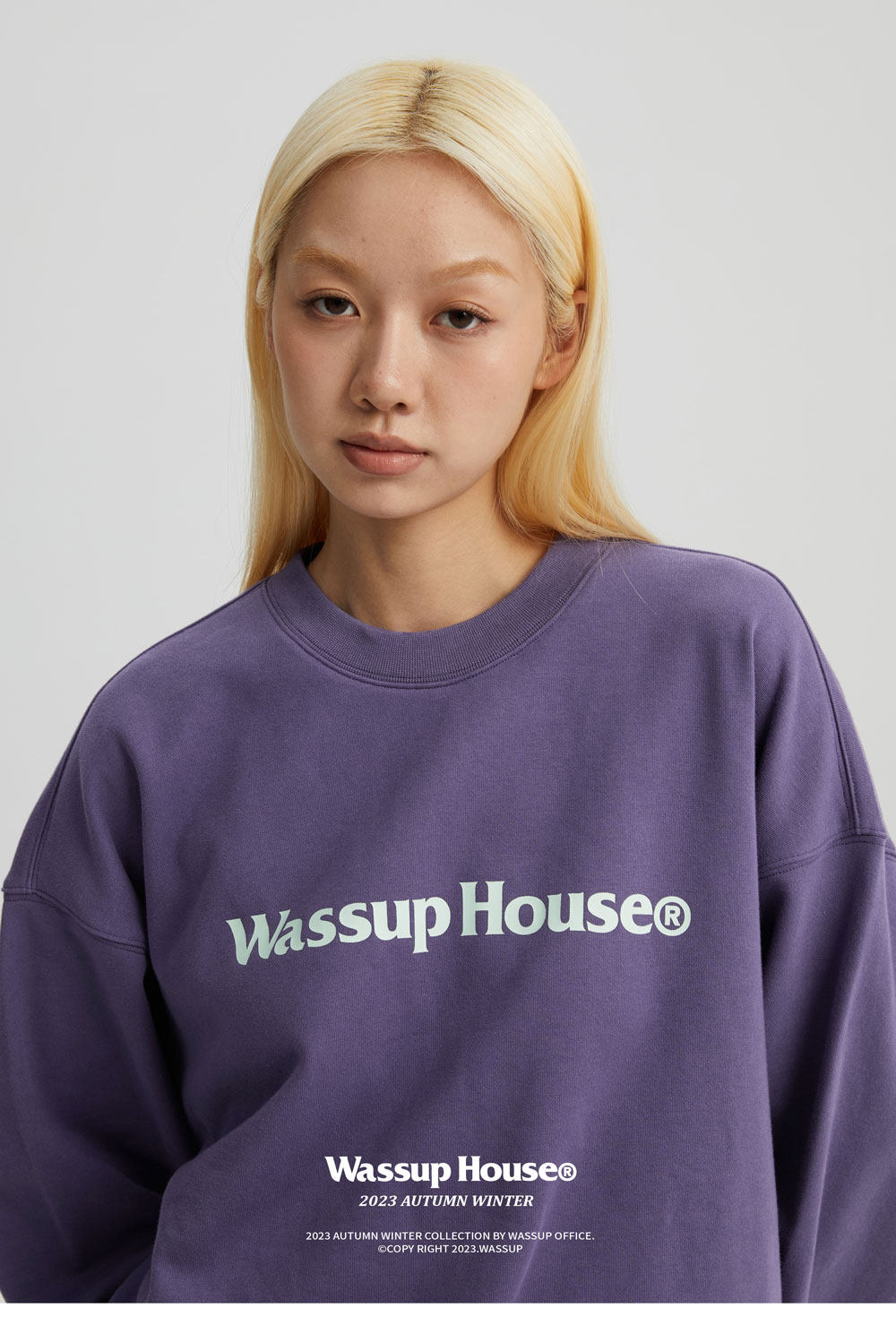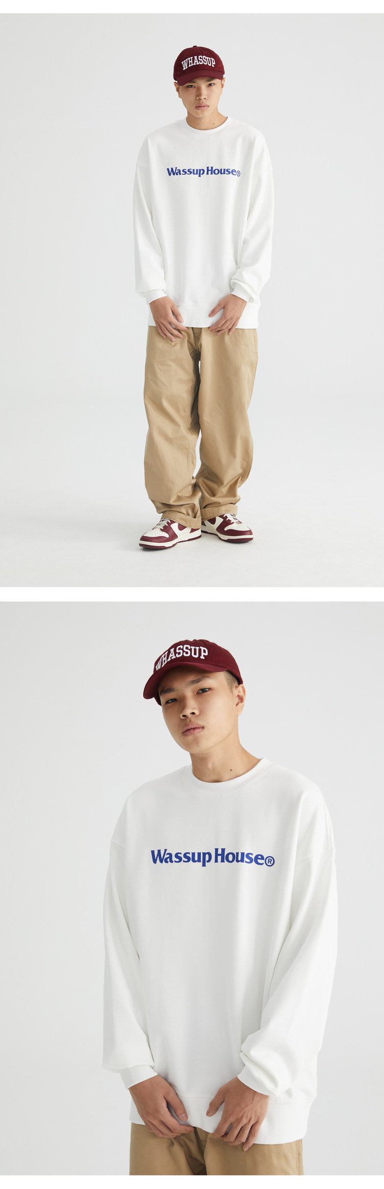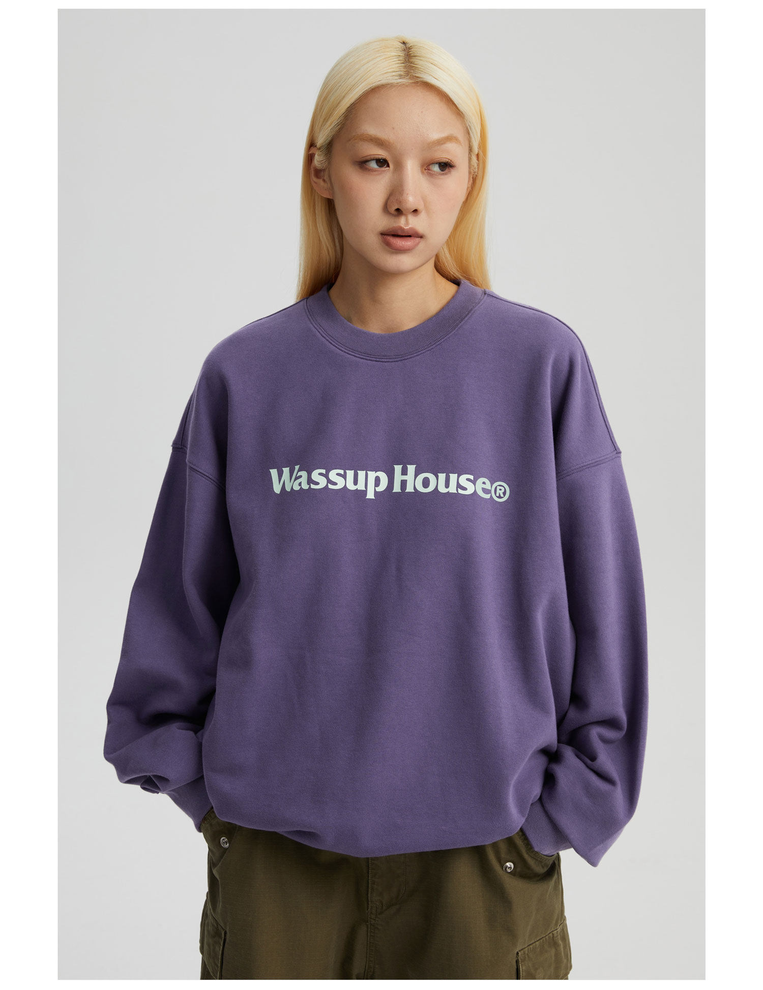 wassuphouse秋季新款卫衣男基础印花抓绒加厚重磅情侣长袖上衣潮