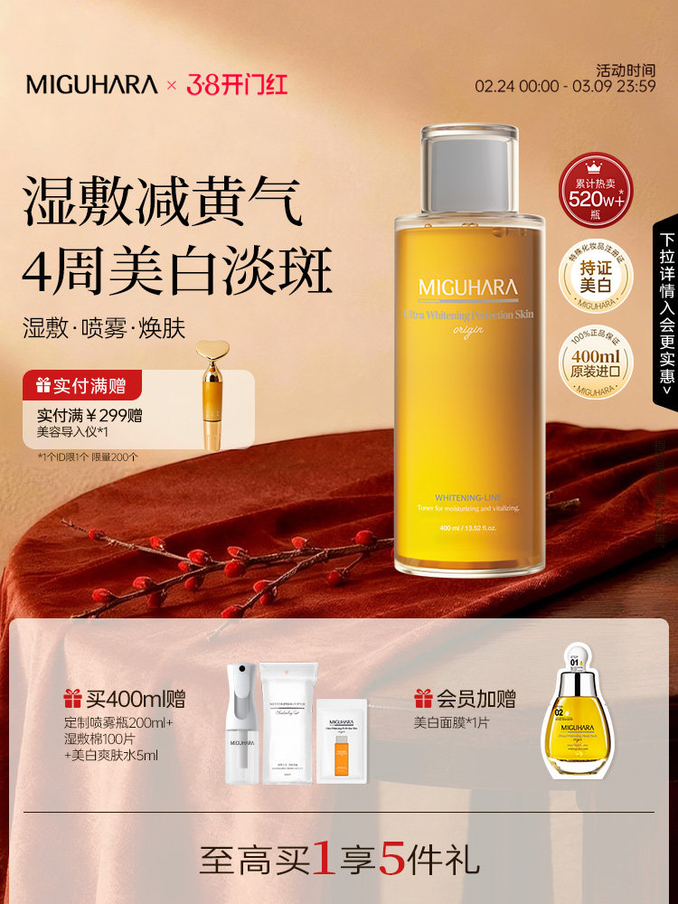 【38现货】MIGUHARA湿敷水咪咕哈啦美白淡斑爽肤水提亮保湿补水