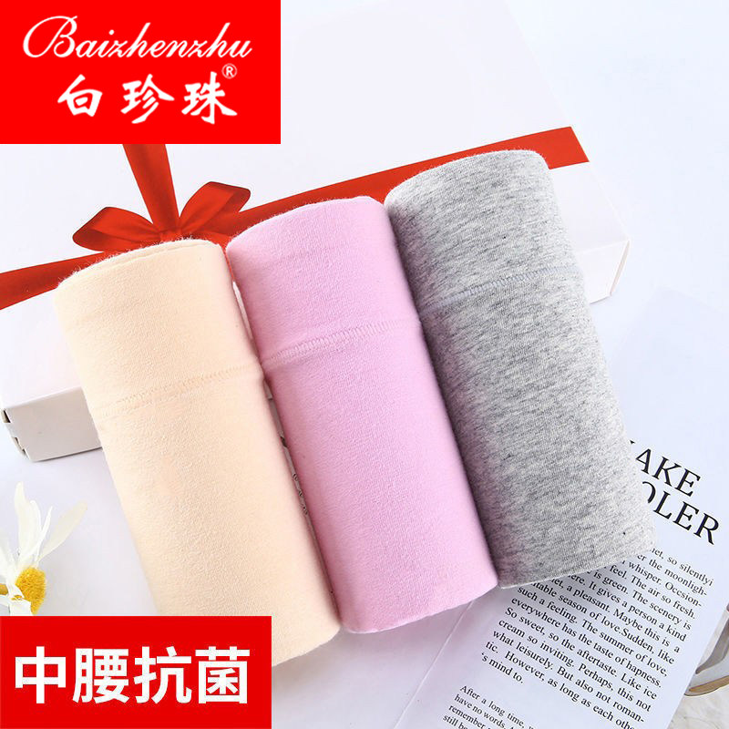 白珍珠内裤女士纯棉中高腰收腹抗菌全棉裆妈妈胖MM大码三角短裤头